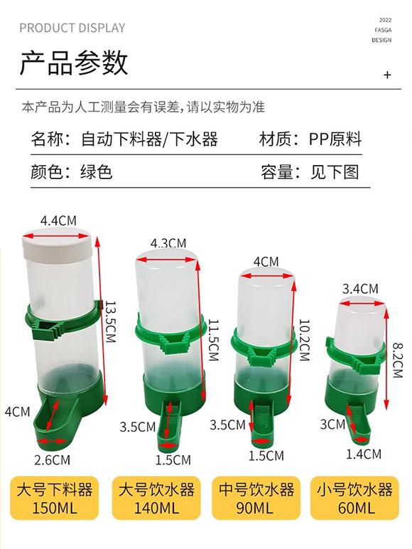 Green small drinking fountain 60ml, Green medium drinking fountain 90ml, Green large drinking fountain 140ml, ...