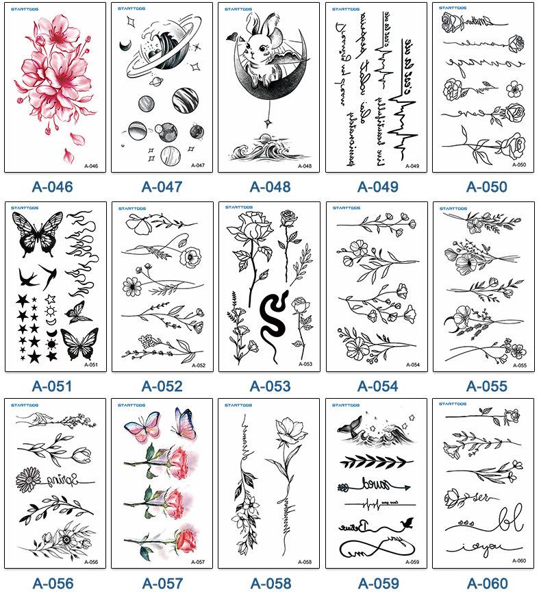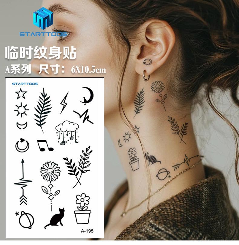 Adesivos de Tatuagem Transfronteiriços Novos Estilo Simples Preto High-End Flor e Lua Estrela Mini Padrão Pequeno Semi-Permanente Mini