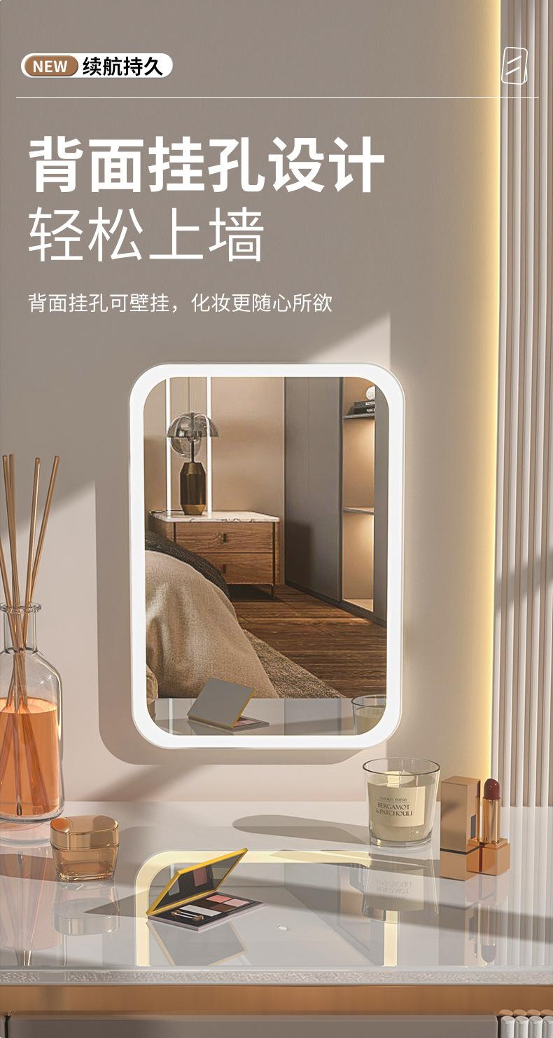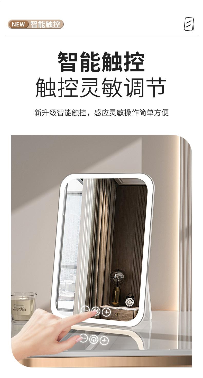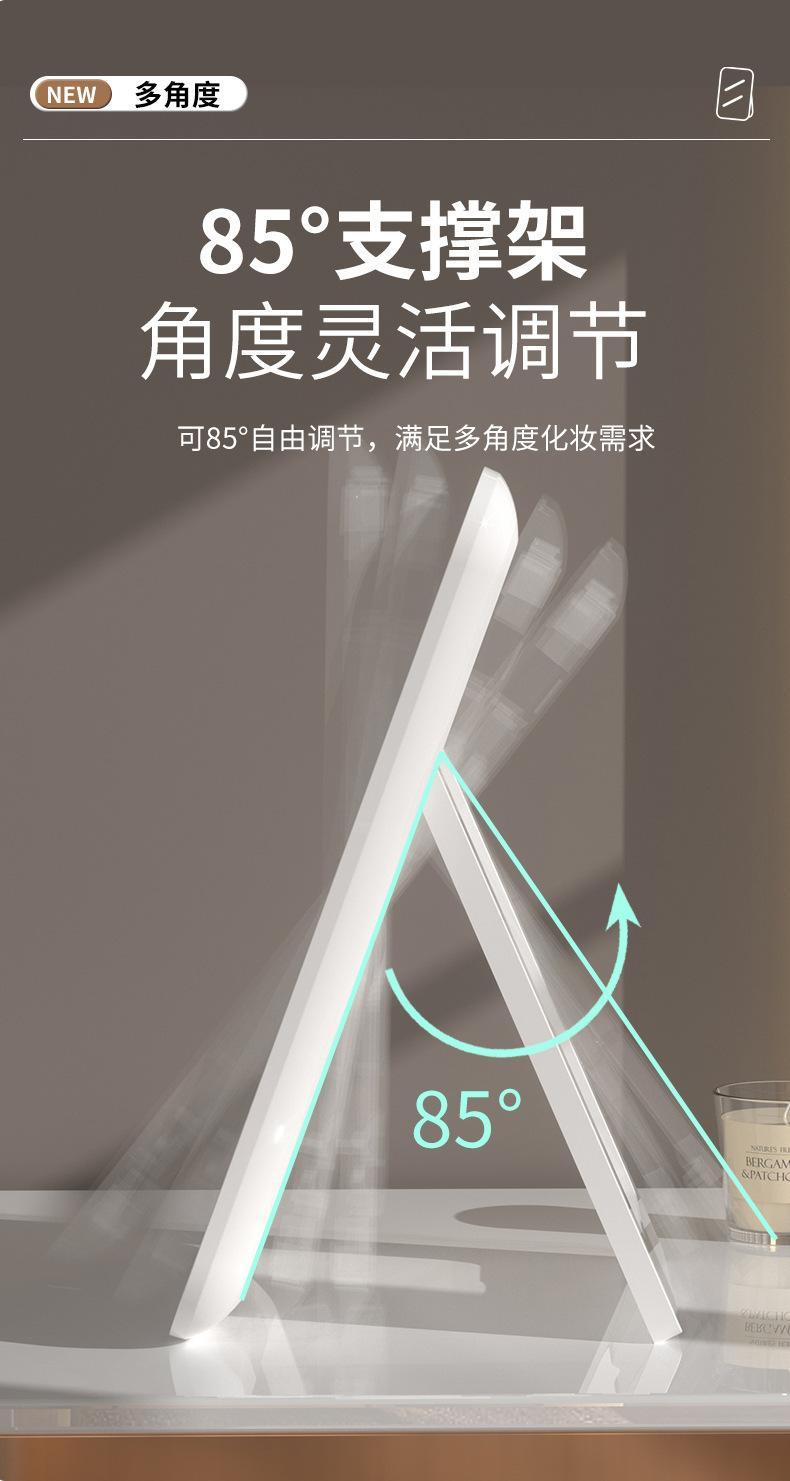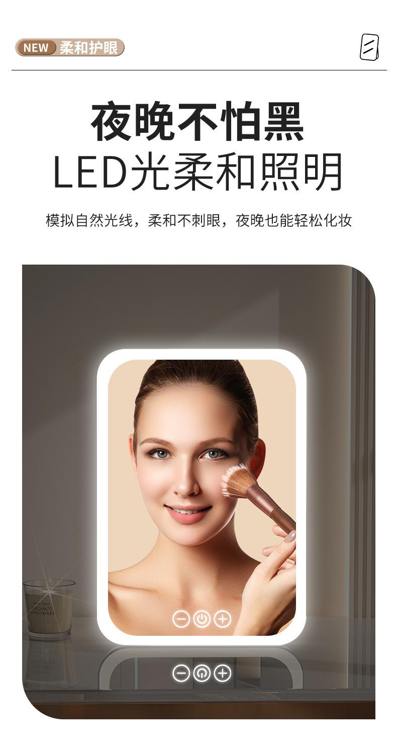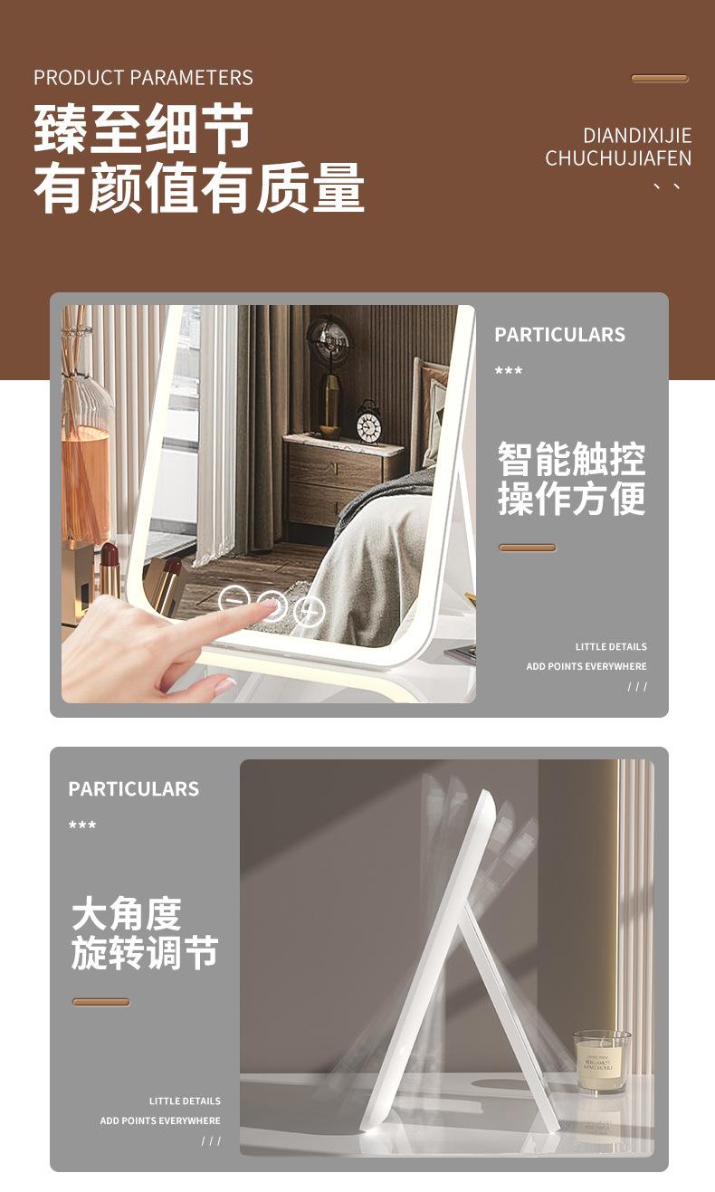 Espelho de maquiagem LED transfronteiriço portátil dobrável espelho de vestir de mesa espelho de toque recarregável com luz luz de preenchimento