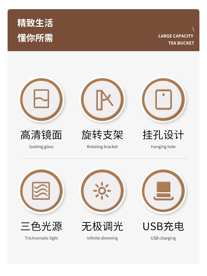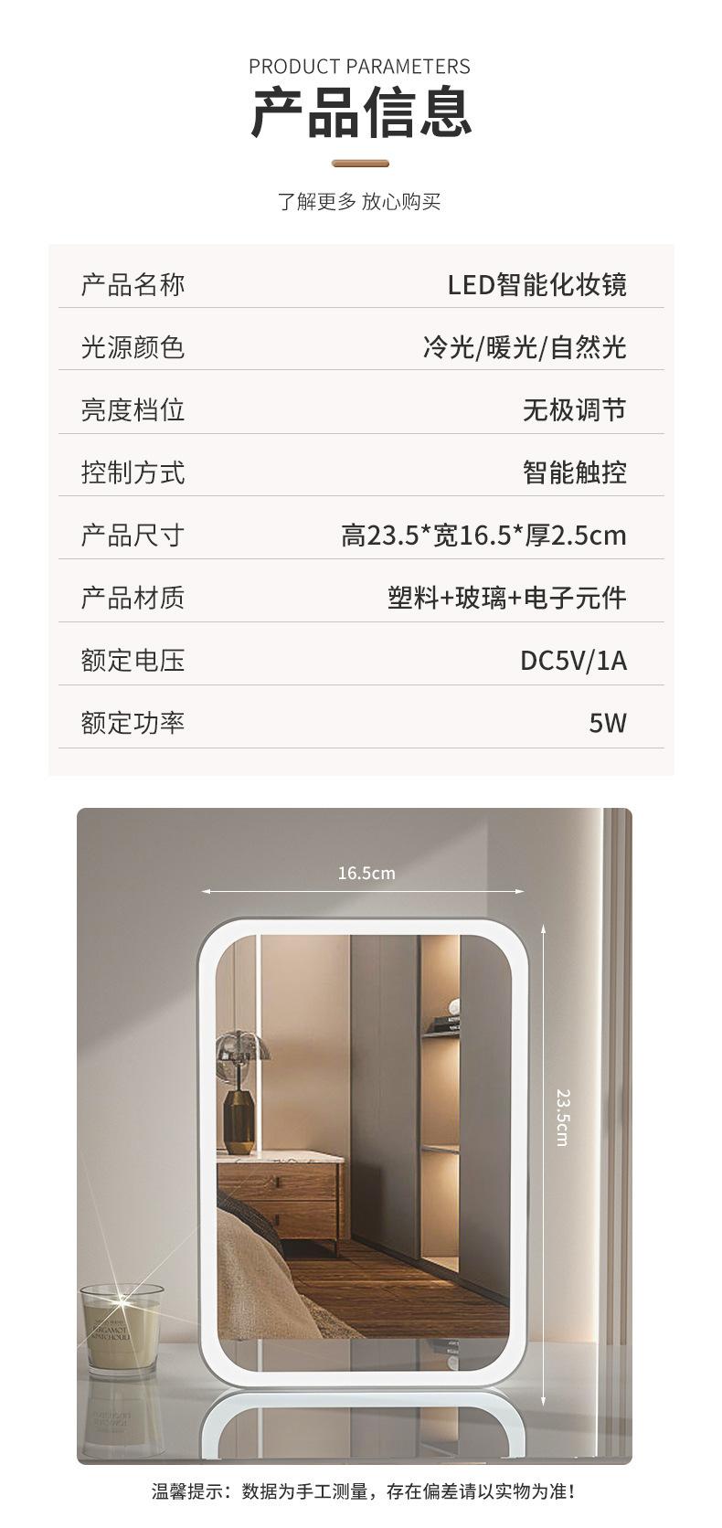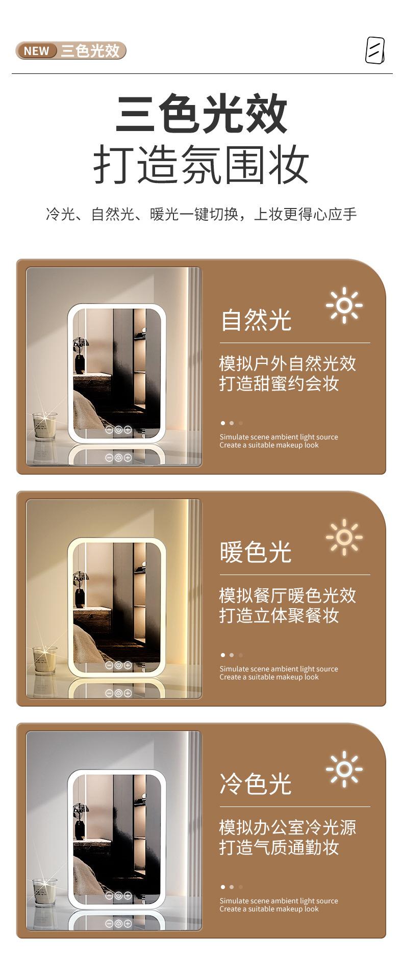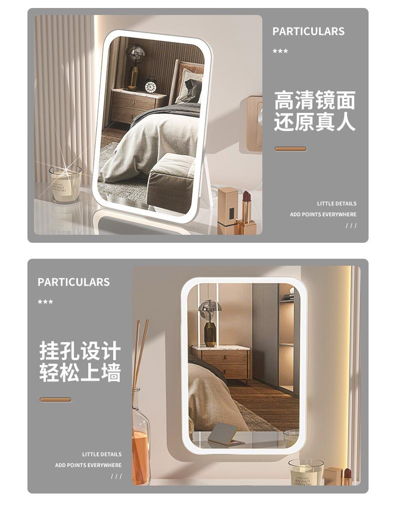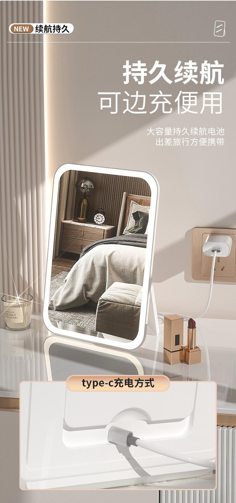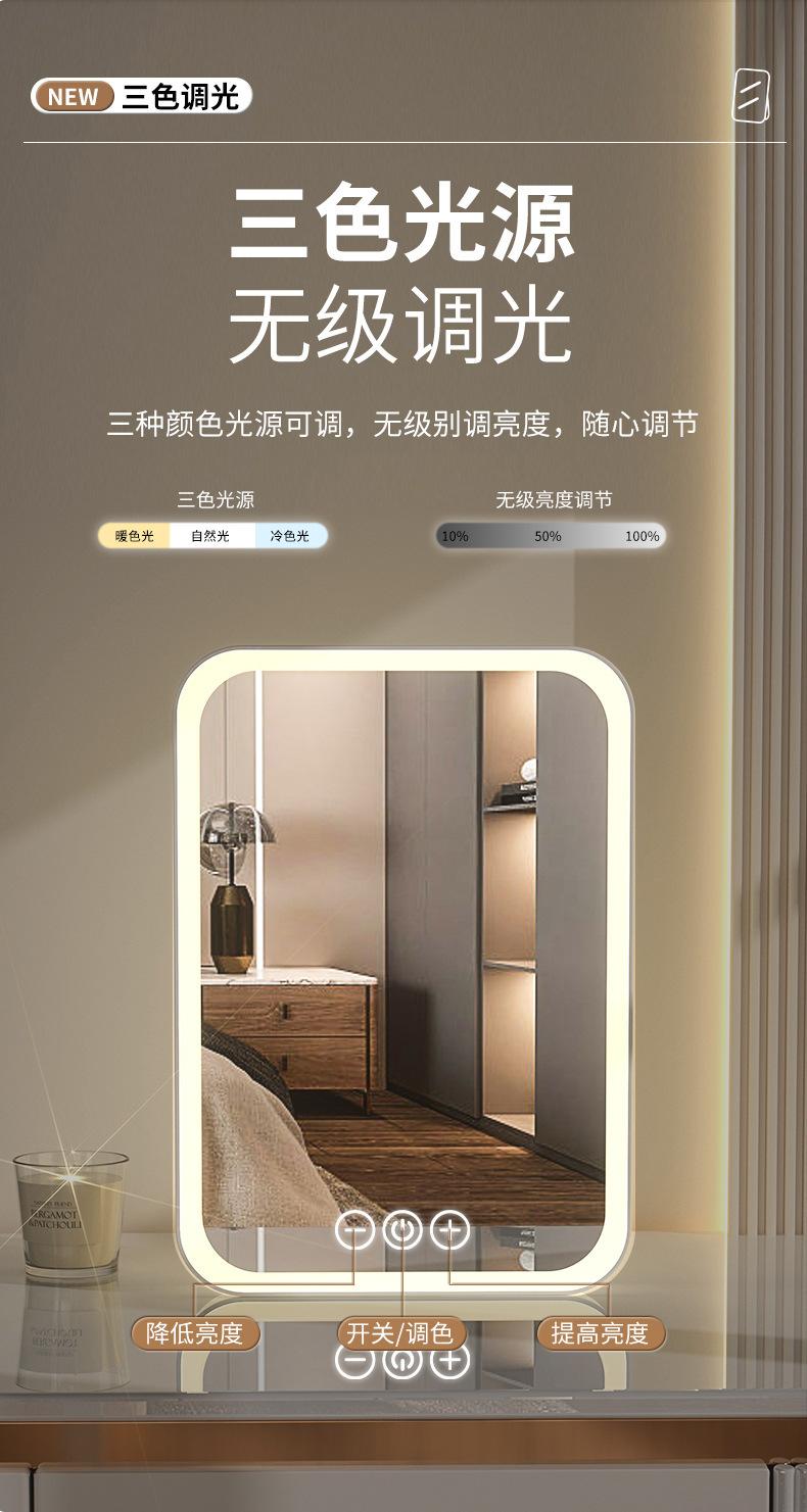 Espelho de maquiagem LED transfronteiriço portátil dobrável espelho de vestir de mesa espelho de toque recarregável com luz luz de preenchimento