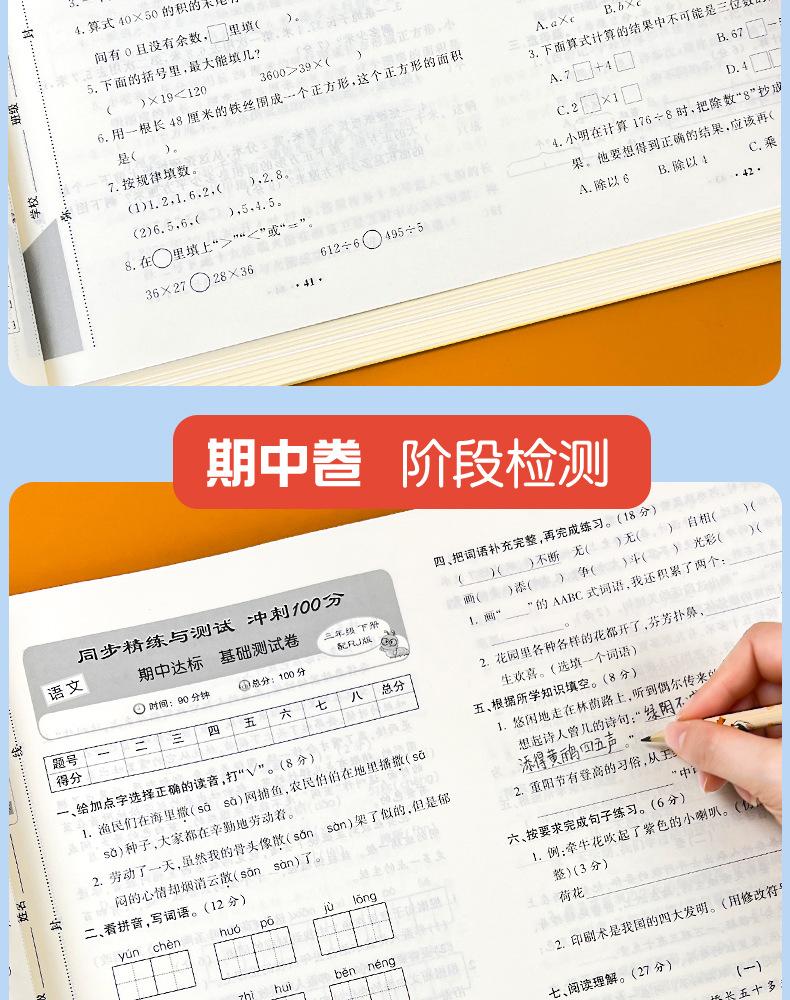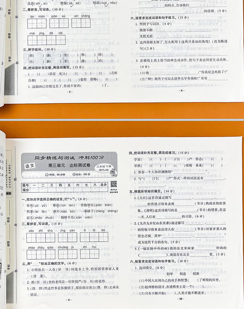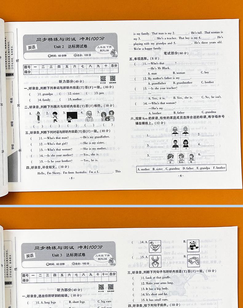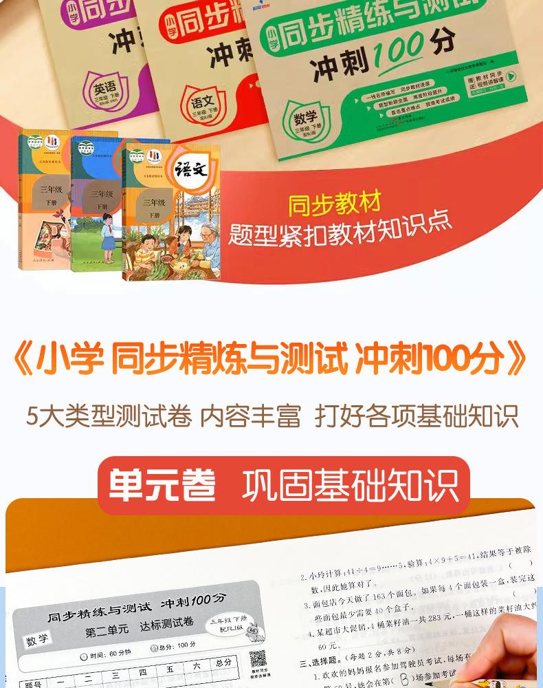Refinamento síncrono do ensino fundamental e sprint de teste 100 pontos 3º-6º ano segundo volume chinês matemática inglês prova