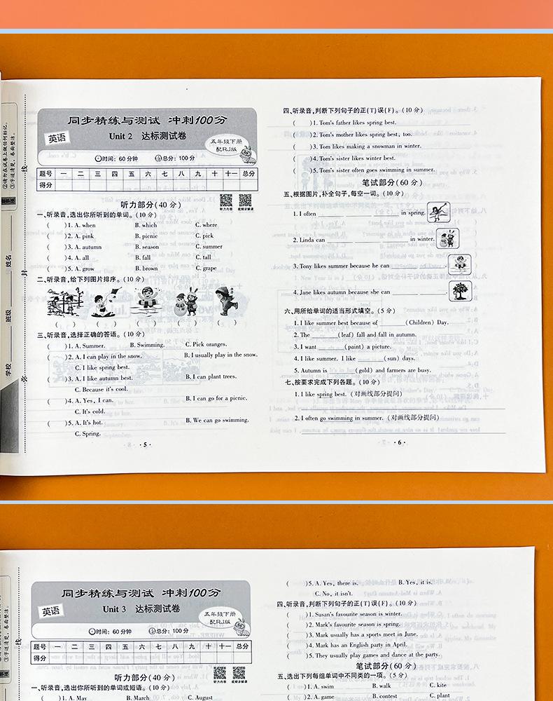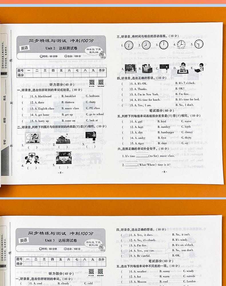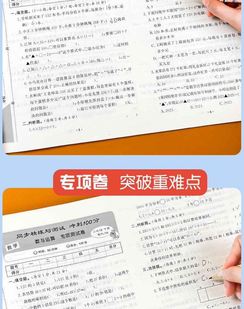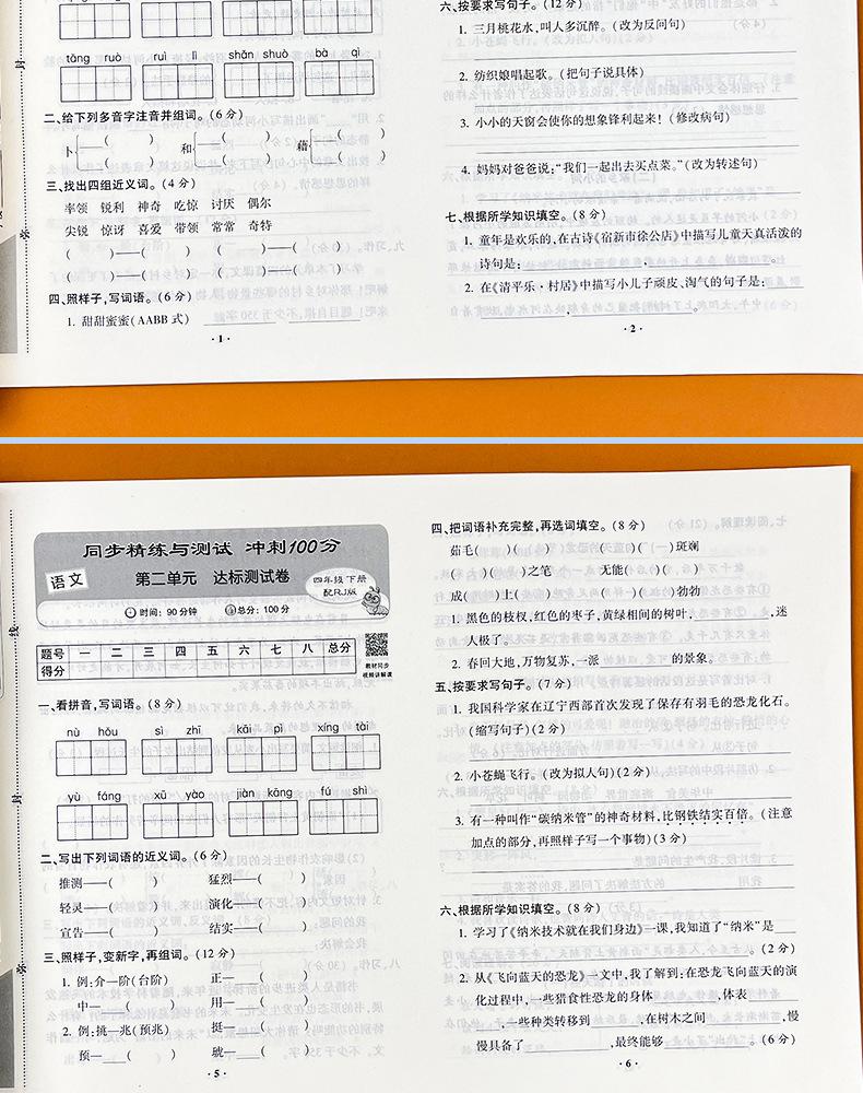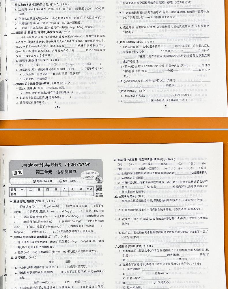 Refinamento síncrono do ensino fundamental e sprint de teste 100 pontos 3º-6º ano segundo volume chinês matemática inglês prova