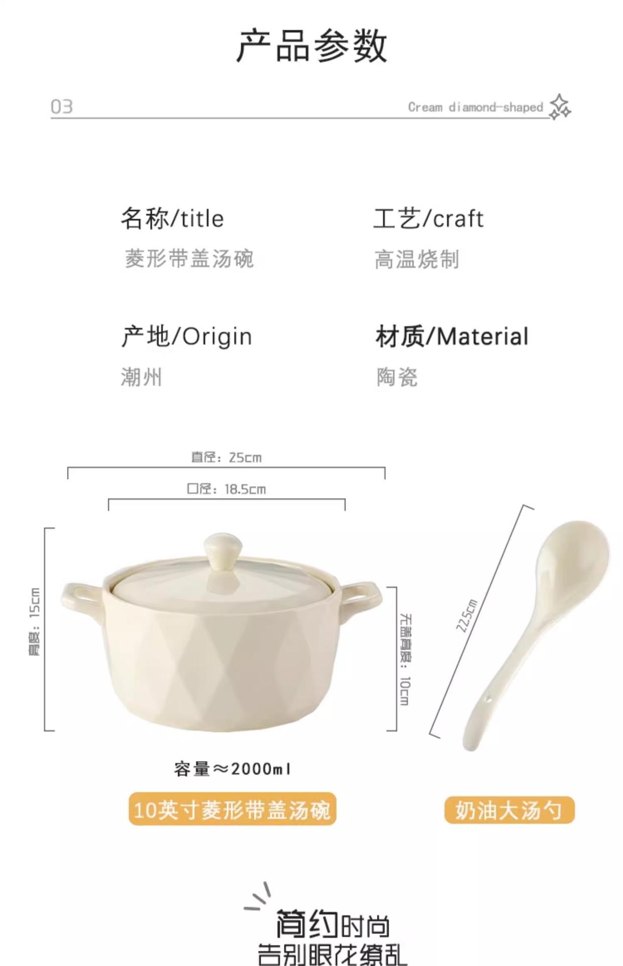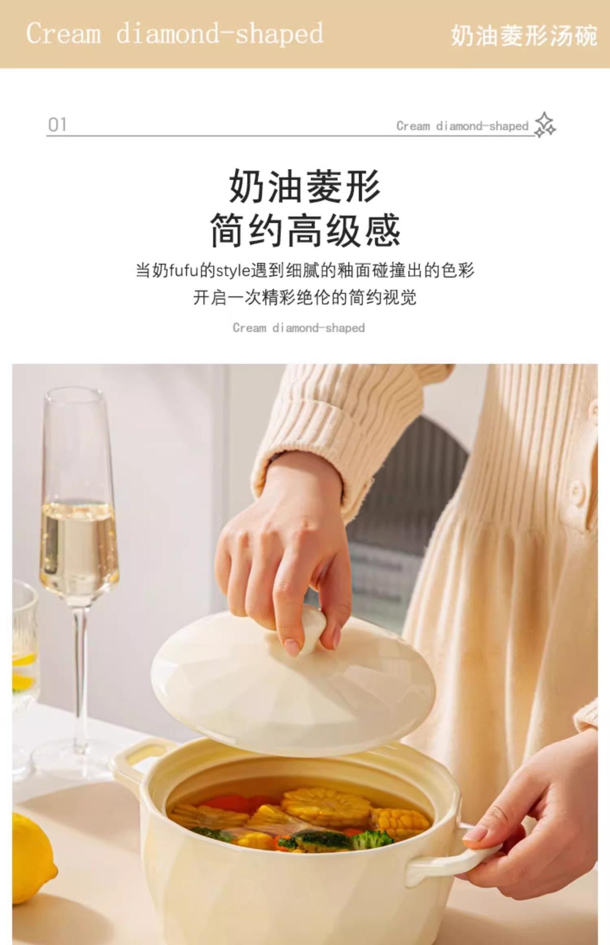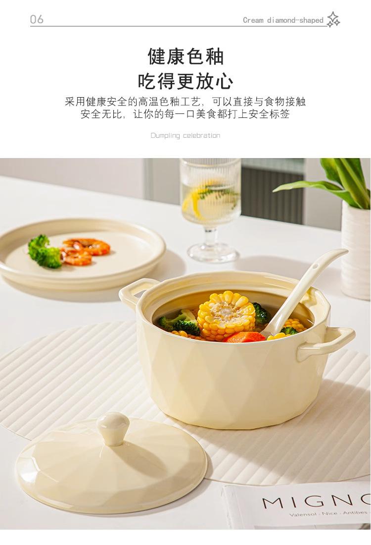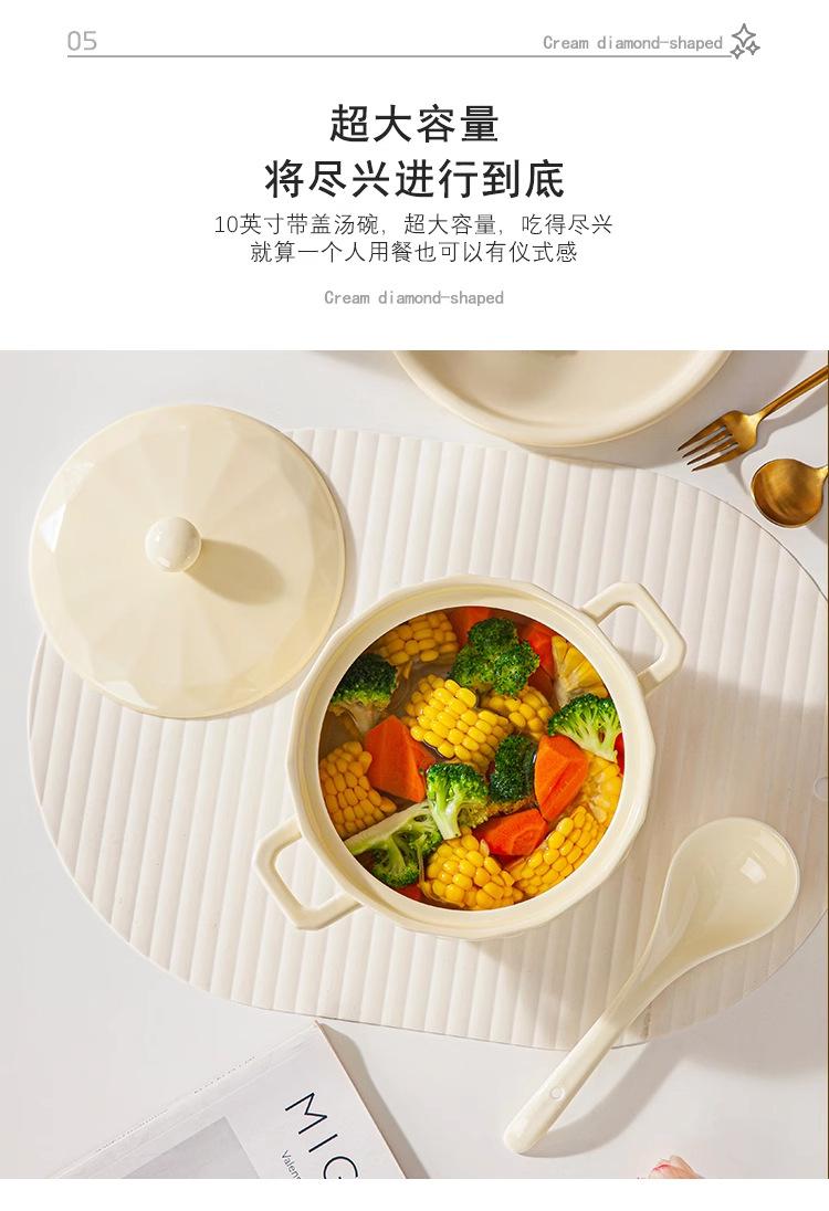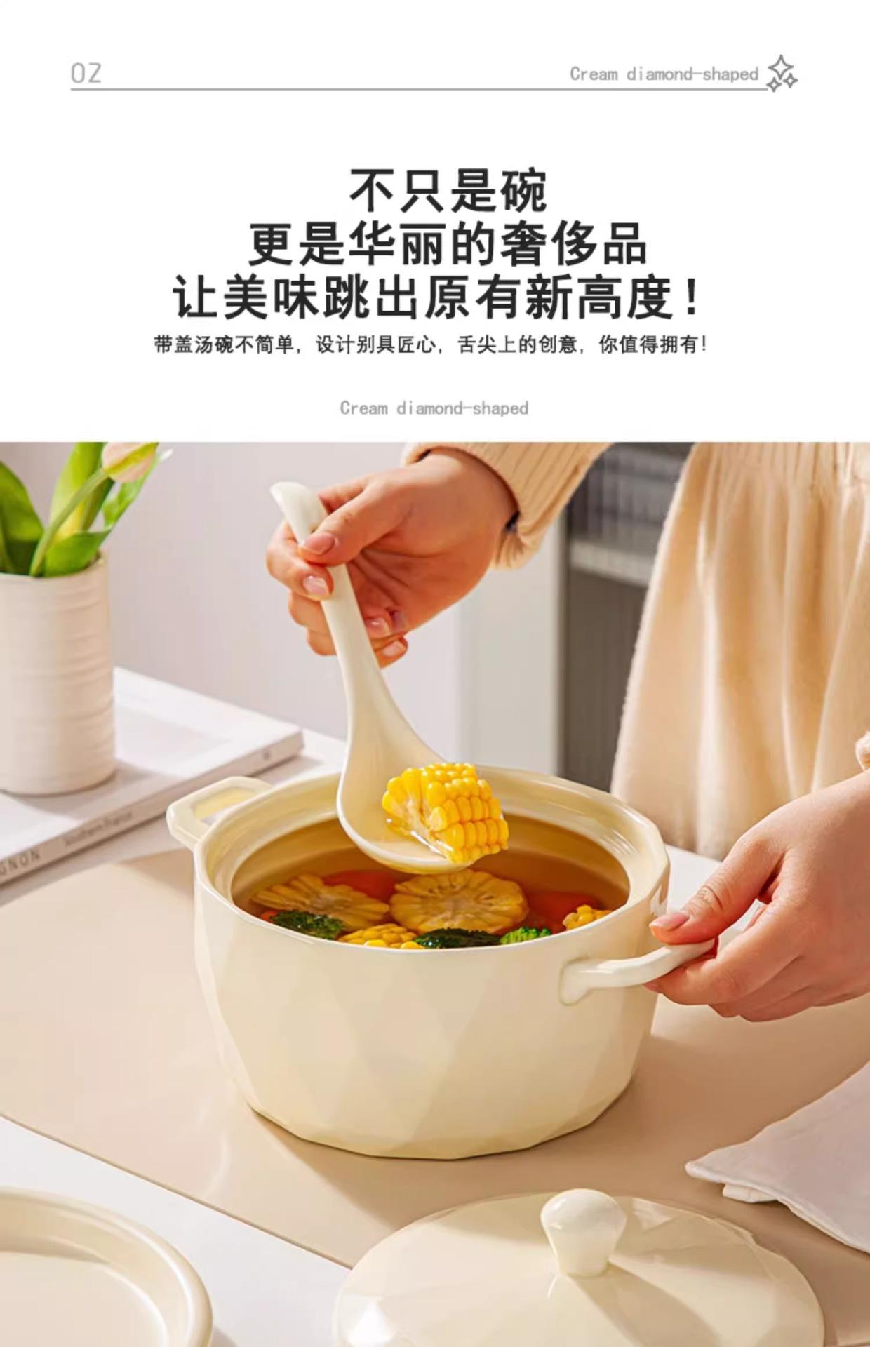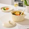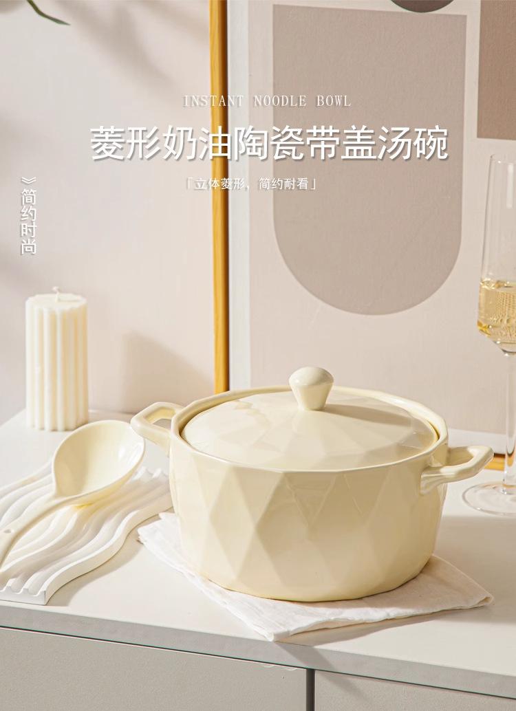 Tigela de Sopa Creme Nórdica Novo Modelo Tigela de Sopa Doméstica Redonda Grande Cerâmica Tigela de Macarrão Instantâneo Caracol Macarrão de Arroz com Tampa Simples