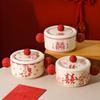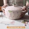 10-inch Double-Ear Soup Bowl with Lid - Strawberry Color (Not for Open Flame)
