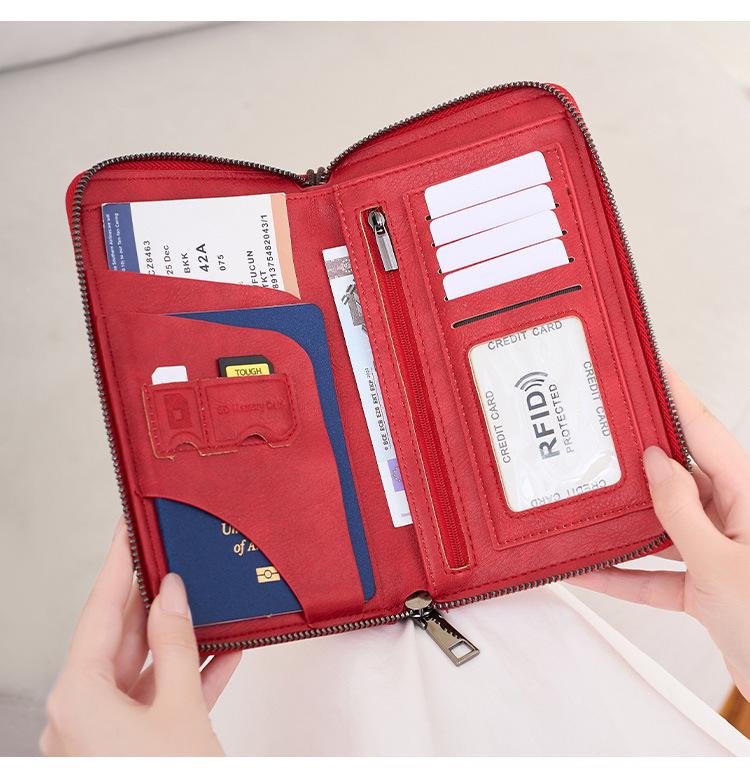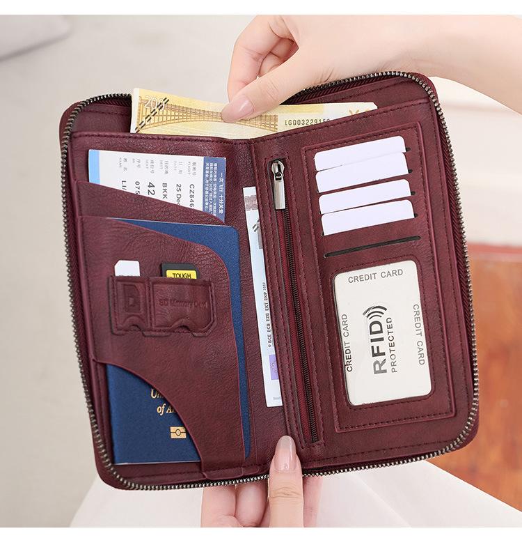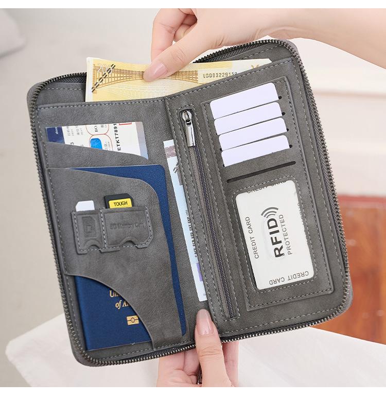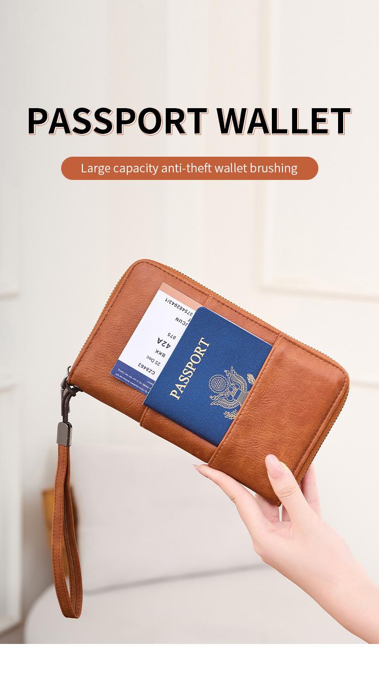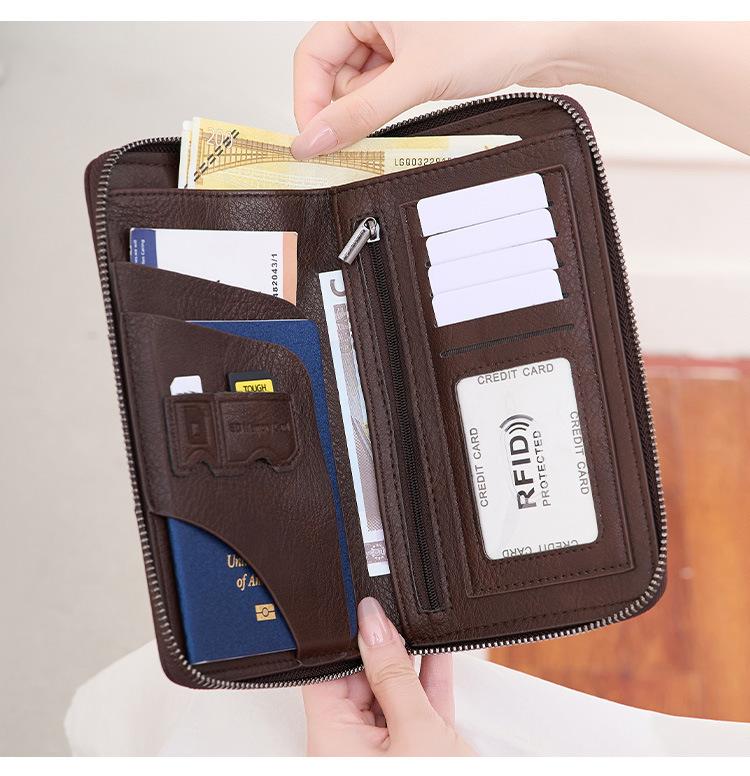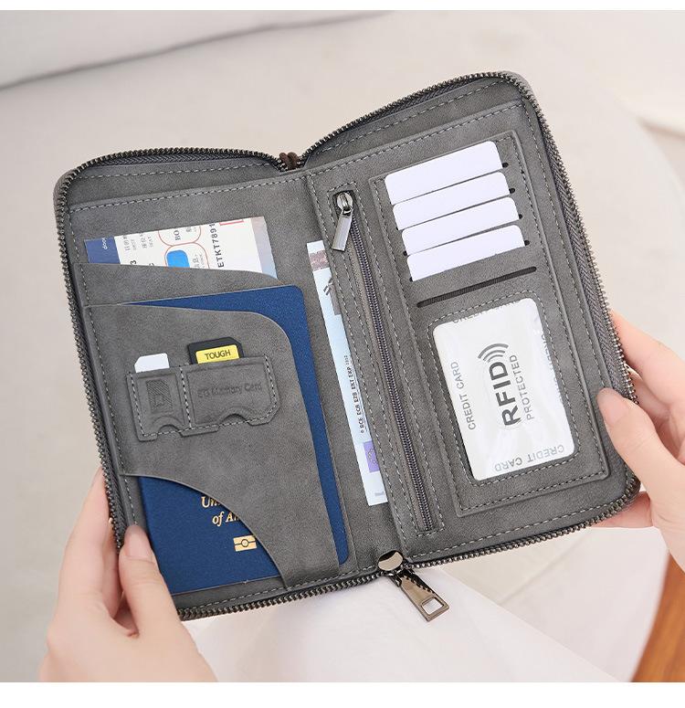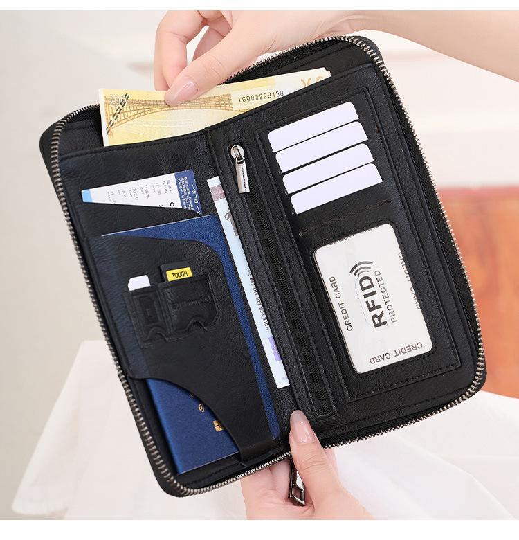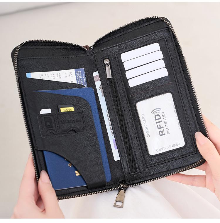 Nova Bolsa Passaporte RFID Transfronteiriça Grande Capacidade Zíper Longo Carteira Passaporte Multifuncional Armazenamento de Viagem Bolsa para Documentos