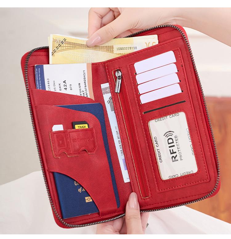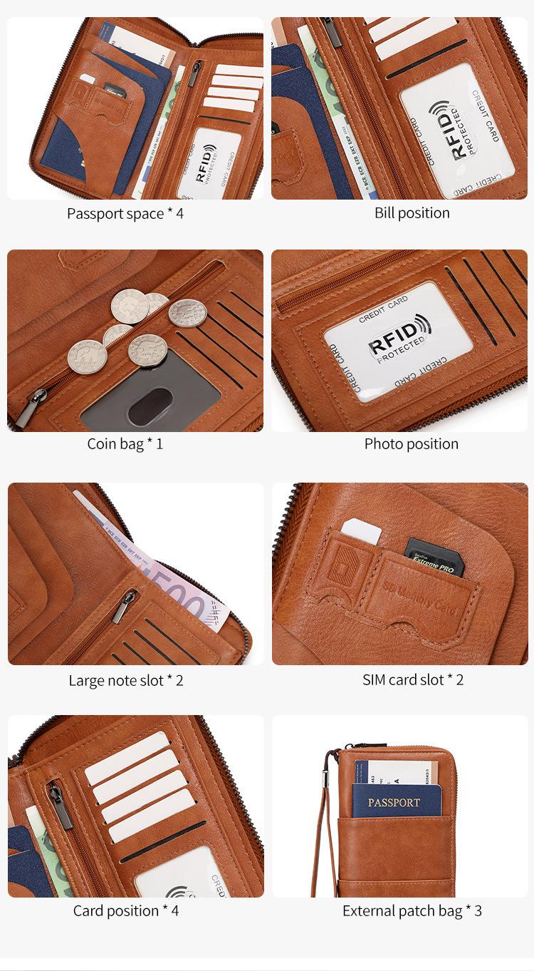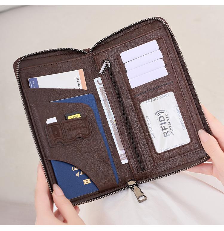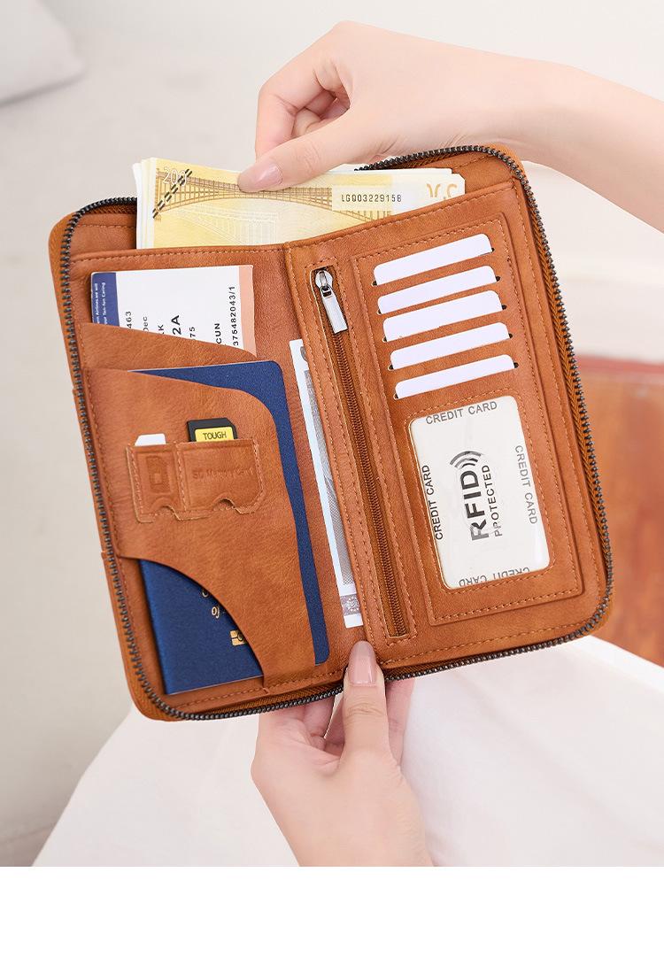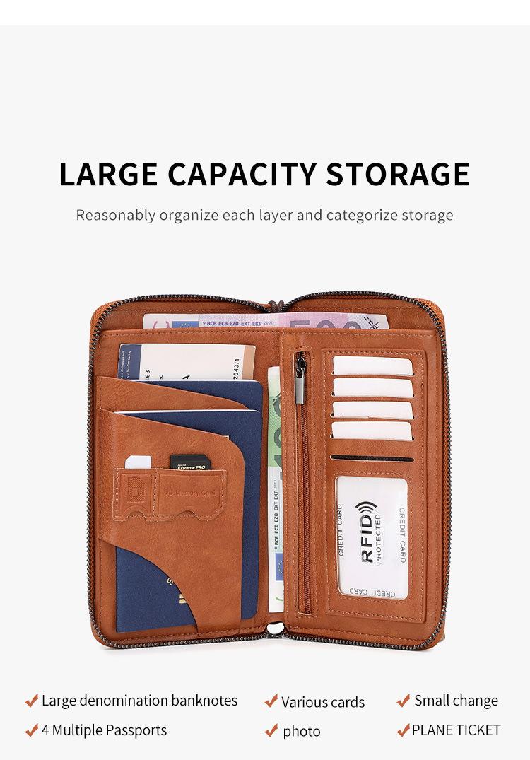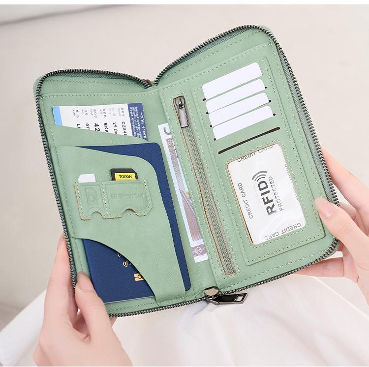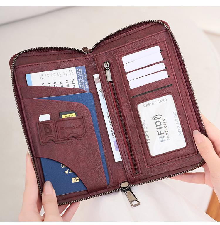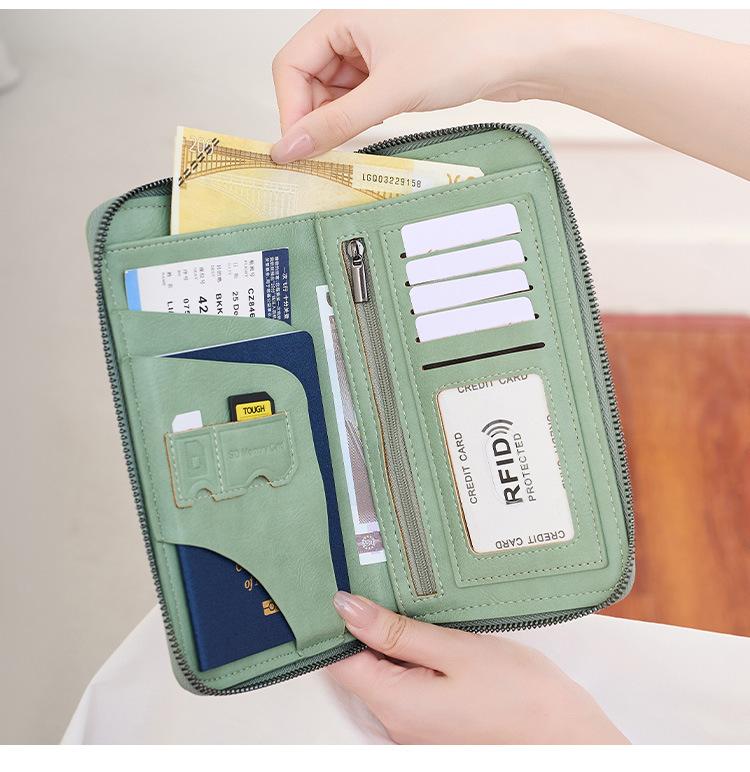 Nova Bolsa Passaporte RFID Transfronteiriça Grande Capacidade Zíper Longo Carteira Passaporte Multifuncional Armazenamento de Viagem Bolsa para Documentos