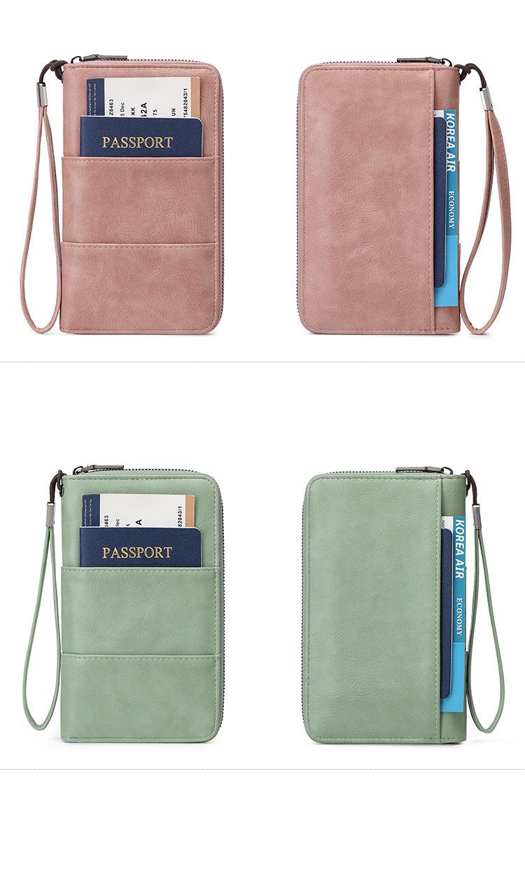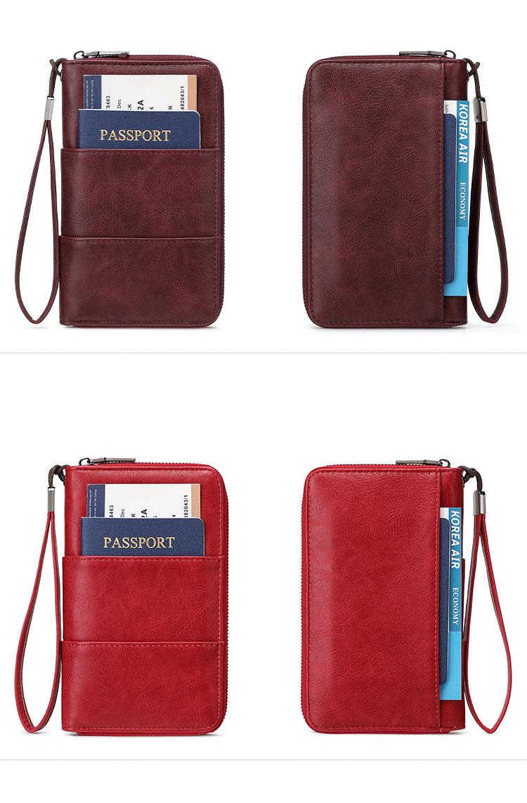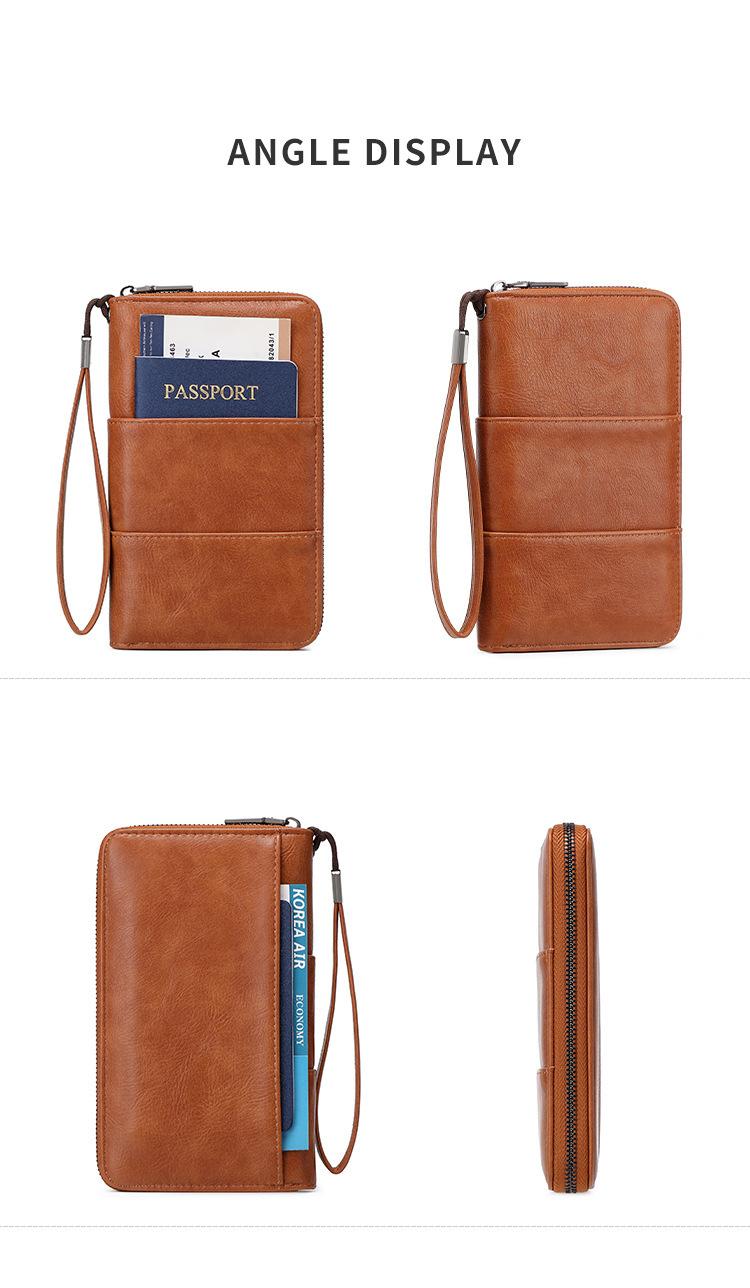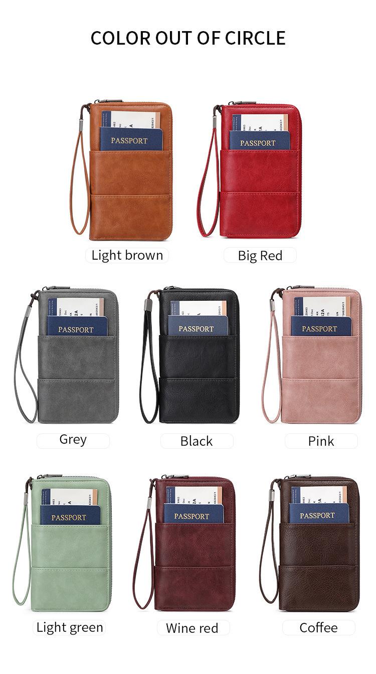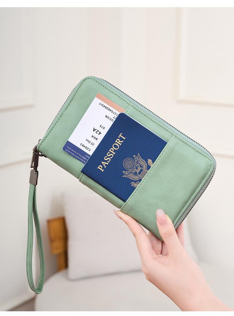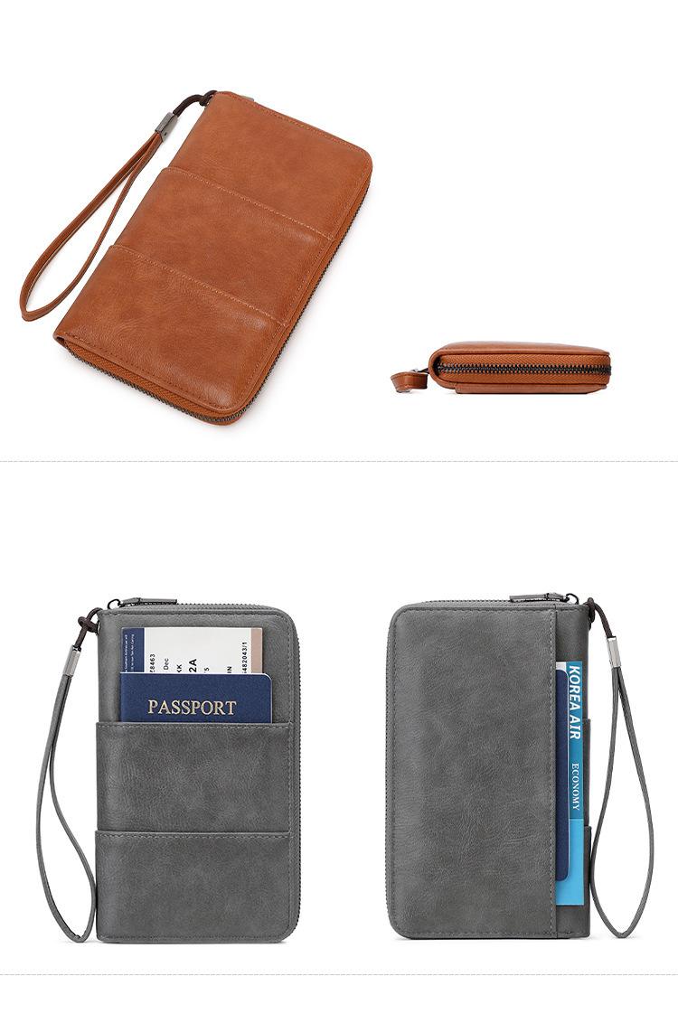 Nova Bolsa Passaporte RFID Transfronteiriça Grande Capacidade Zíper Longo Carteira Passaporte Multifuncional Armazenamento de Viagem Bolsa para Documentos