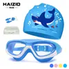 Touca de Natação Infantil Novo Desenho Animado Menino Tubarãozinho Silicone Alta Elasticidade À Prova d'Água Antiderrapante Proteção de Orelha Touca de Natação Pronta para Venda