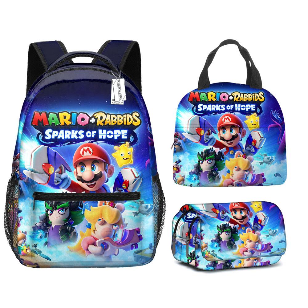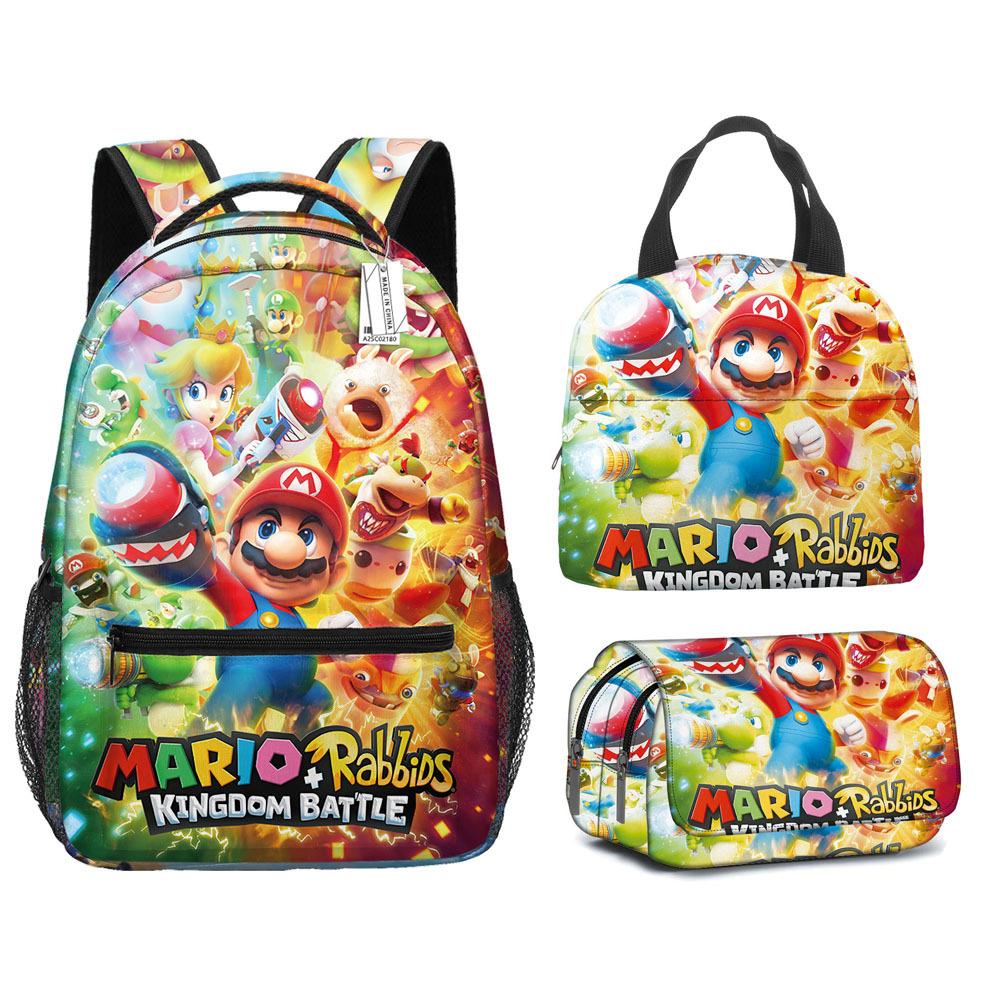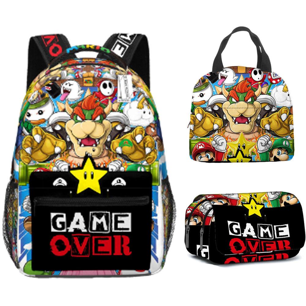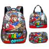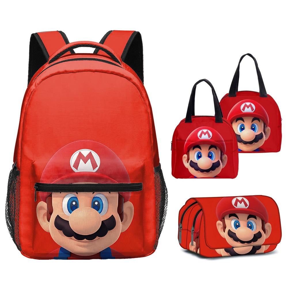 Mochila Escolar para Novos Alunos 2025 Grande Capacidade Mochila Mario Estampa Total Lancheira Estojo Conjunto de Três Peças