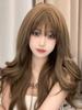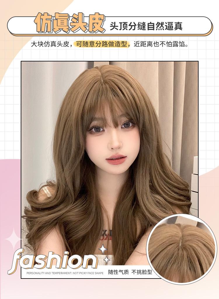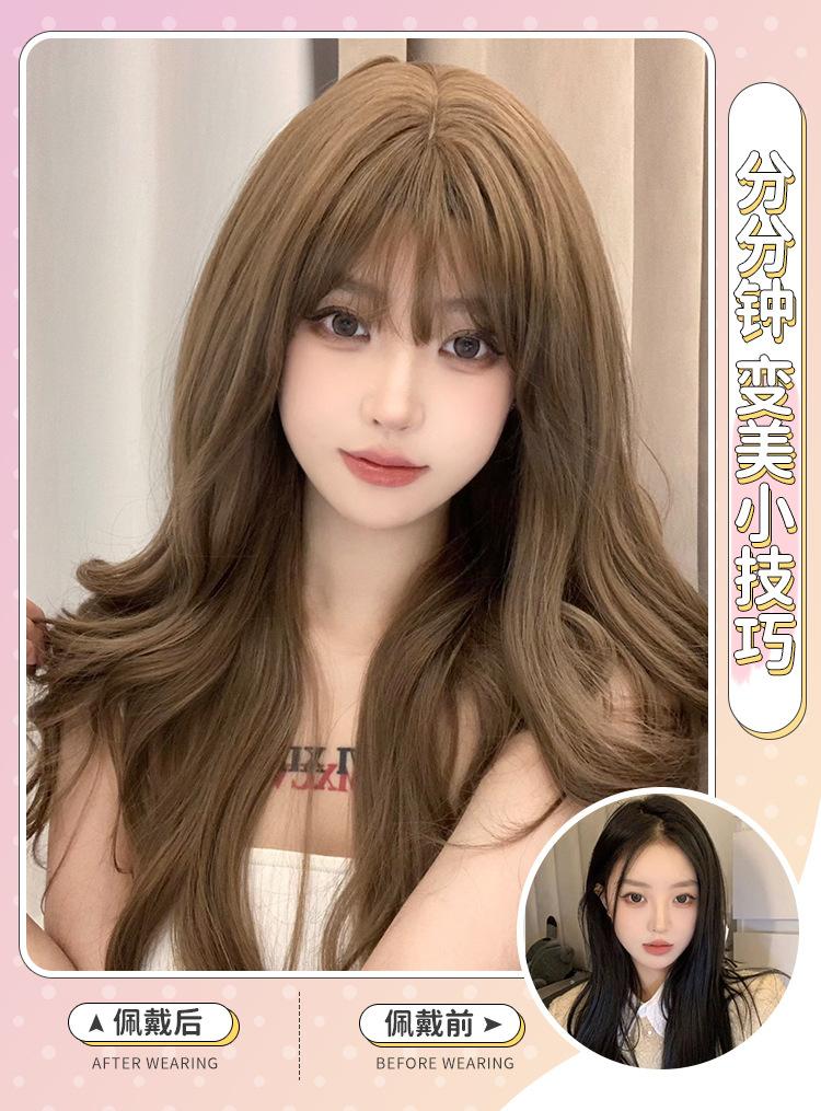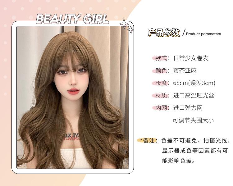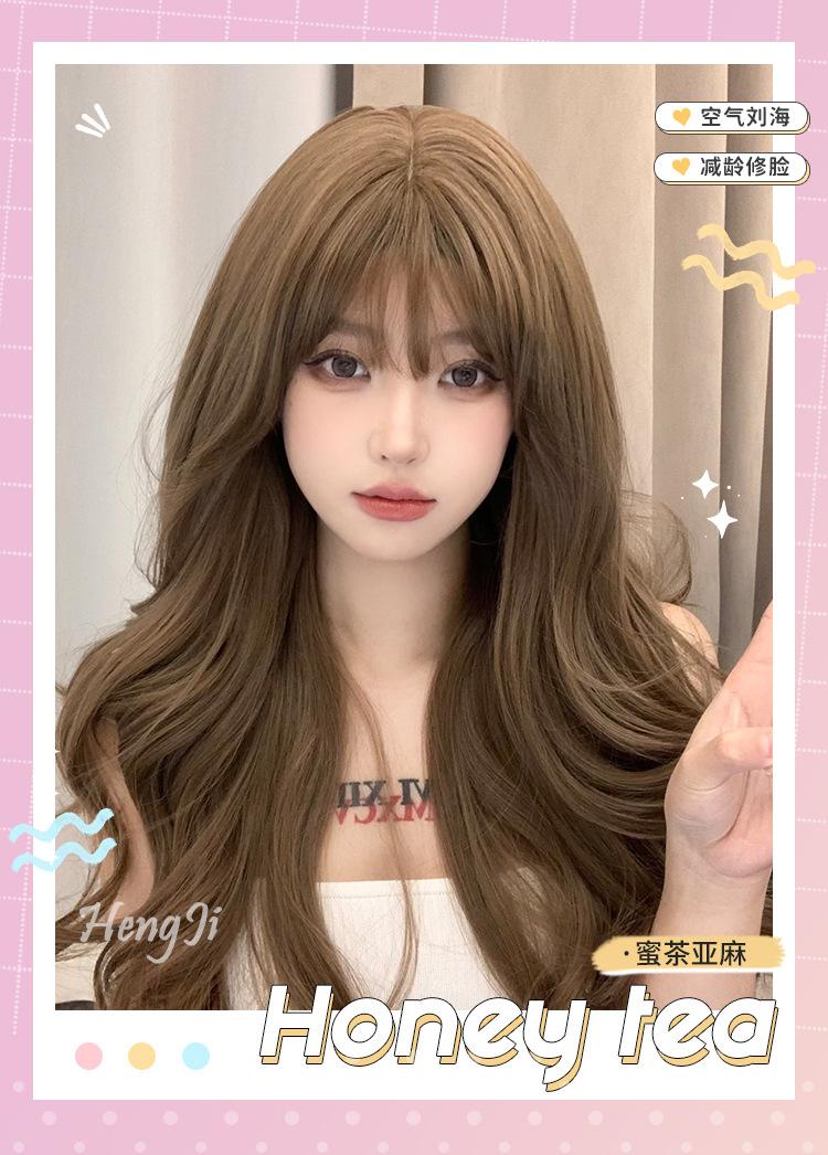 Peruca feminina transfronteiriça por atacado cabelo longo cobertura total cabelo longo cacheado preguiçoso simulação mel chá linho peruca