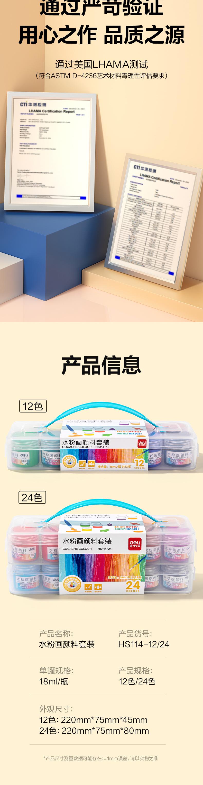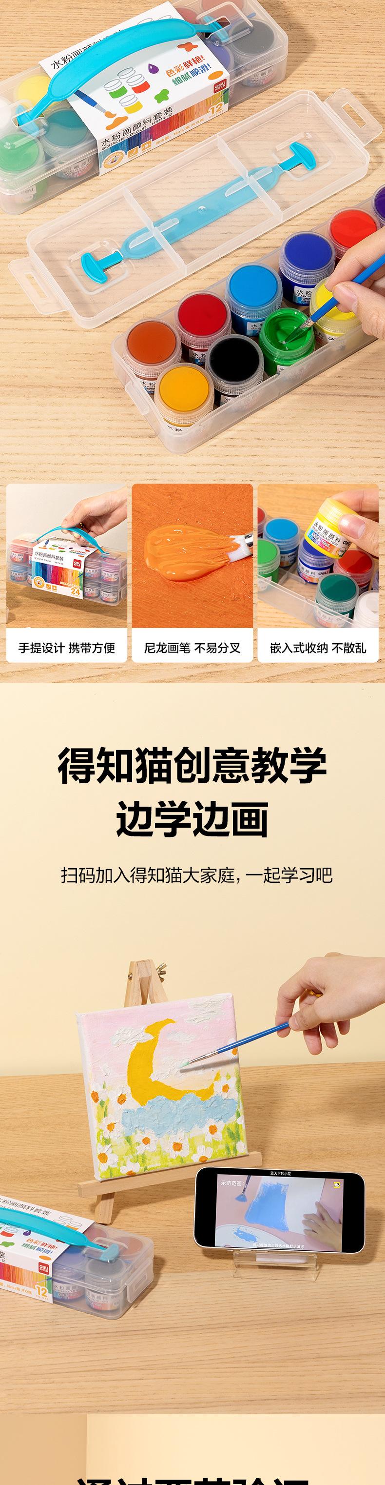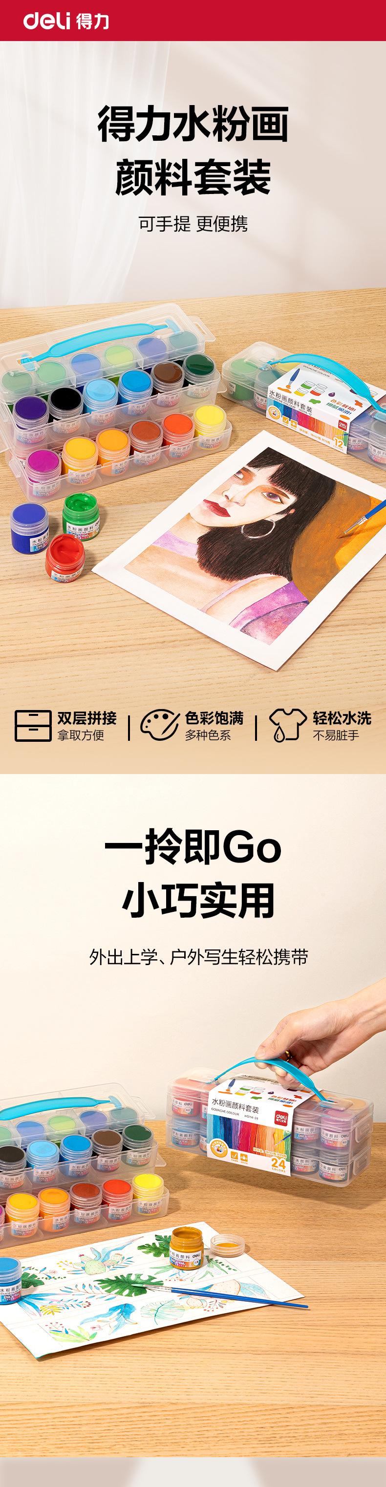Conjunto de Tinta Guache Deli para Alunos do Ensino Fundamental Pintores Iniciantes 24 Cores Materiais de Pintura para Crianças Tinta Artística Lavável