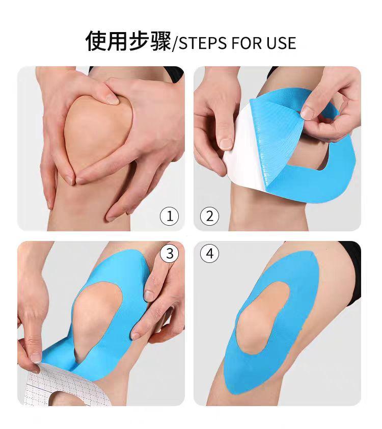 Adesivo elástico pré-cortado para suporte do joelho, suporte fixo, antifricção, bandagem esportiva, fita de cinesiologia