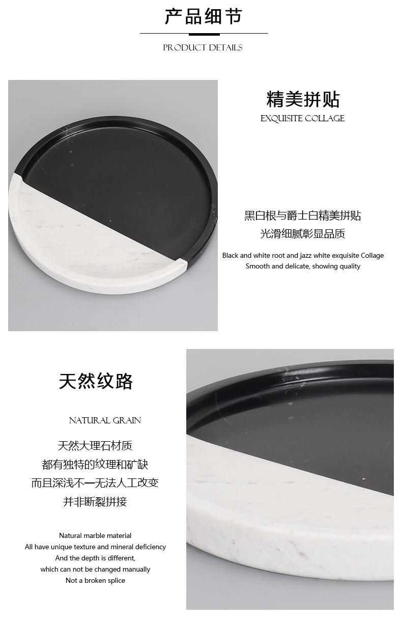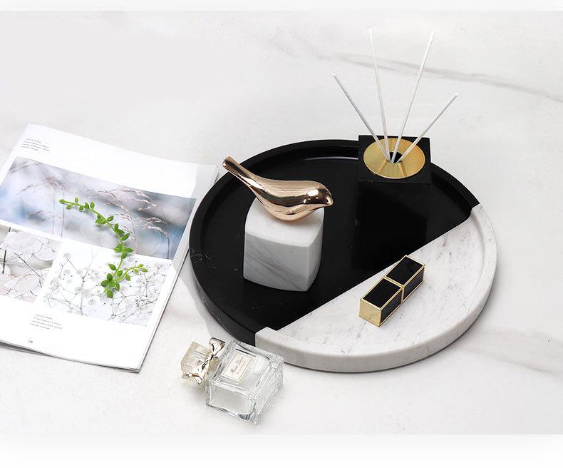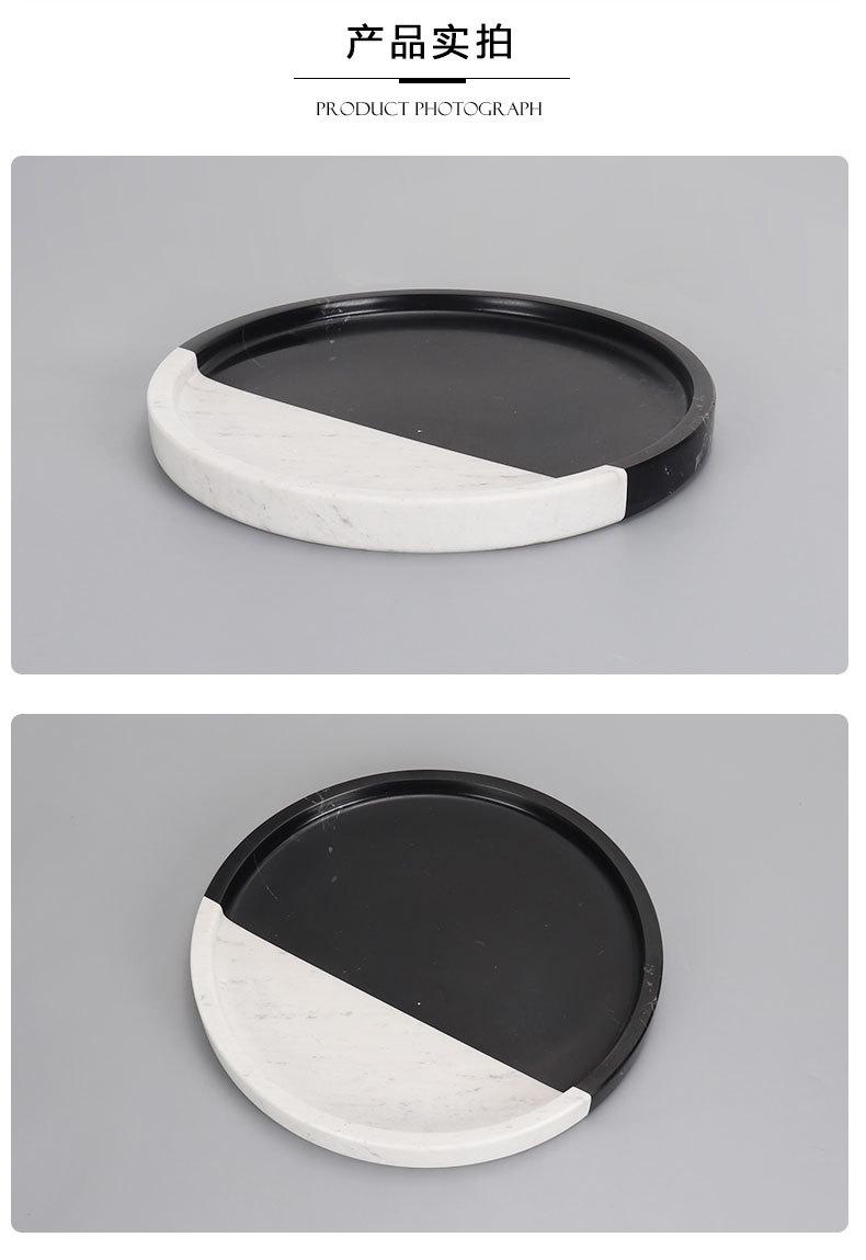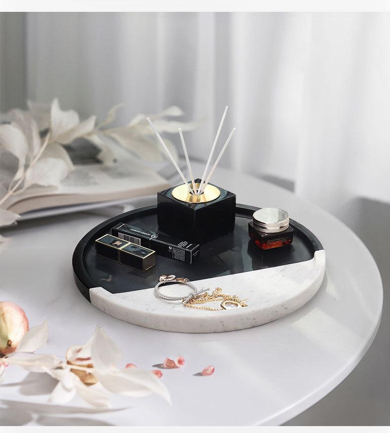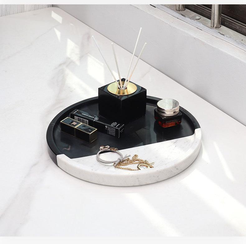 Bandeja redonda de mármore com combinação de cores preto e branco, modelo para quarto modelo, casa, hotel, cosméticos, mesa de lavabo, bandeja para guardar joias