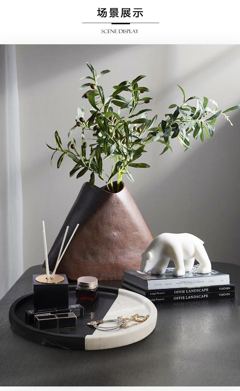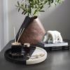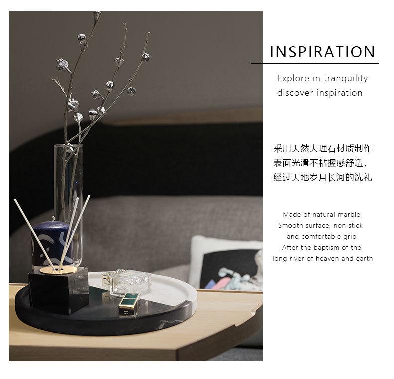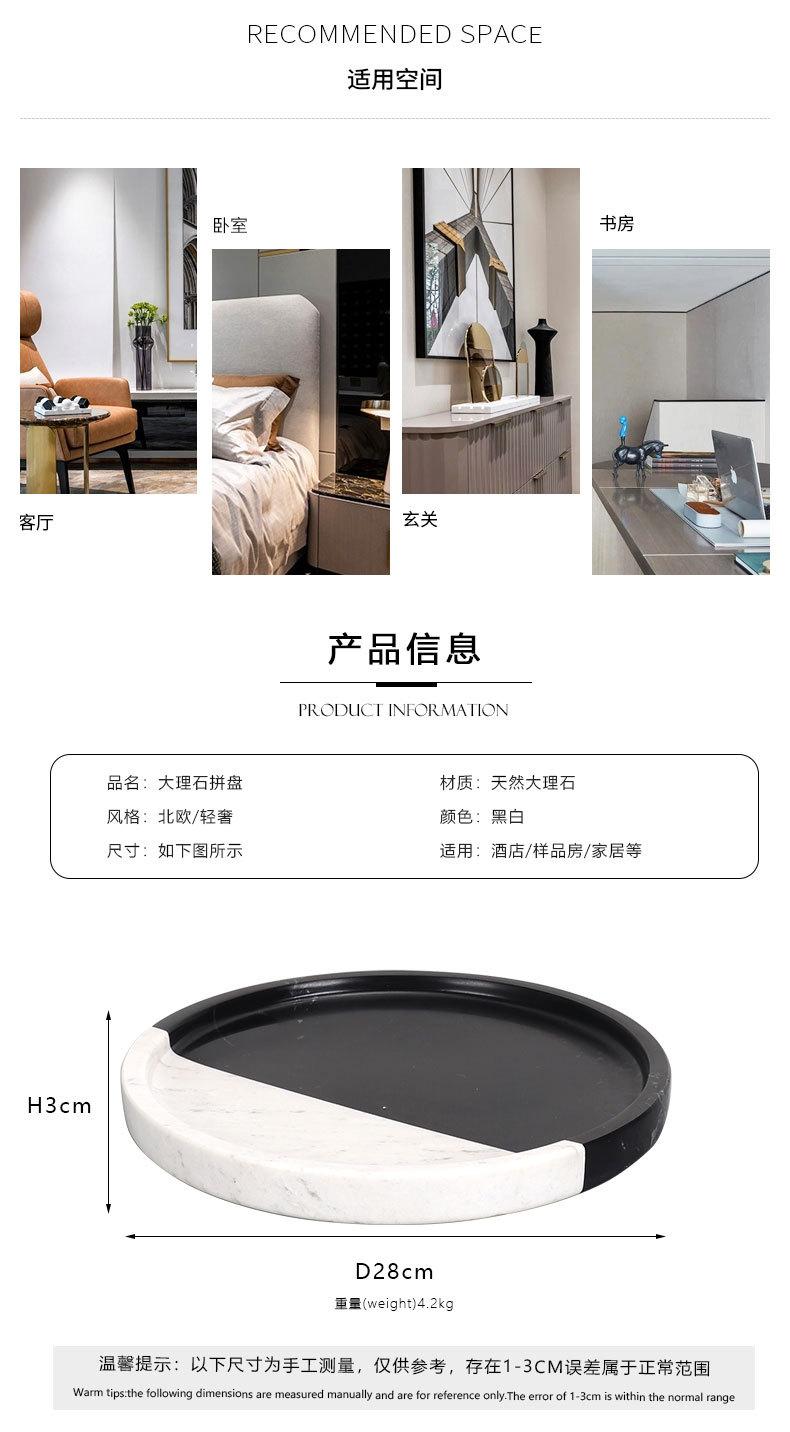 Bandeja redonda de mármore com combinação de cores preto e branco, modelo para quarto modelo, casa, hotel, cosméticos, mesa de lavabo, bandeja para guardar joias