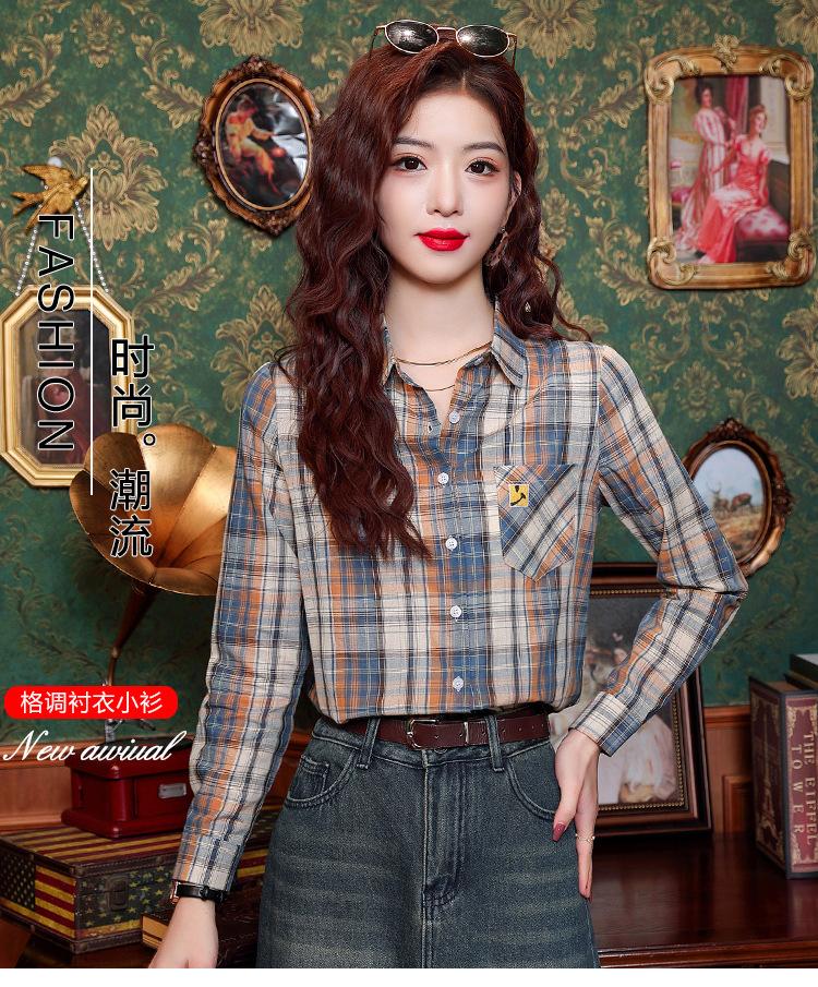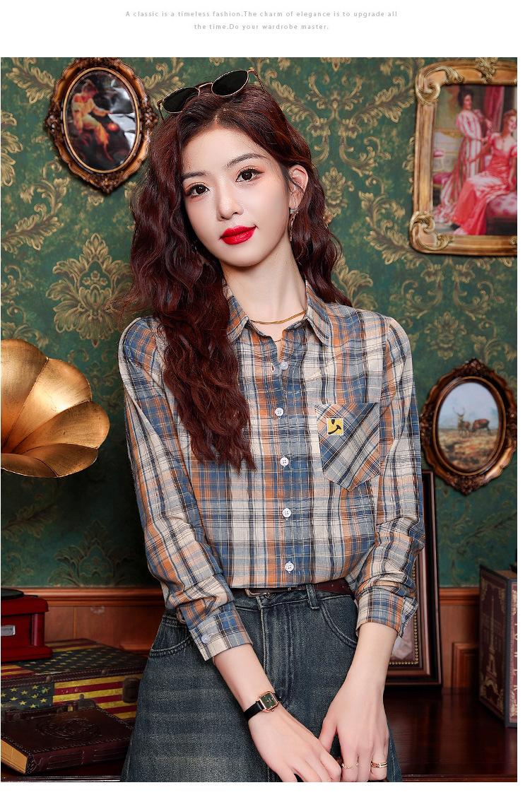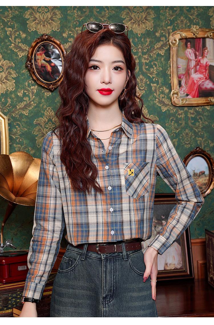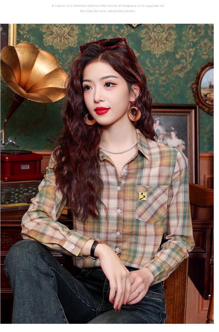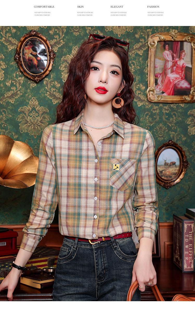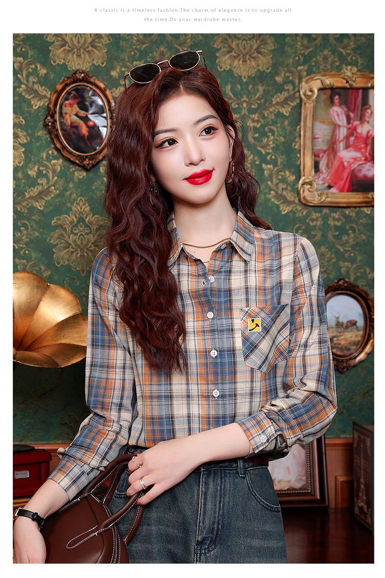 Compre Camisa Xadrez Estilo Moda Hong Kong para Mulheres Primavera & Outono 2025 Nova Camisa Básica Solta e Versátil Camisa de Manga Comprida com Gola Polo no atacado no Joom.pro