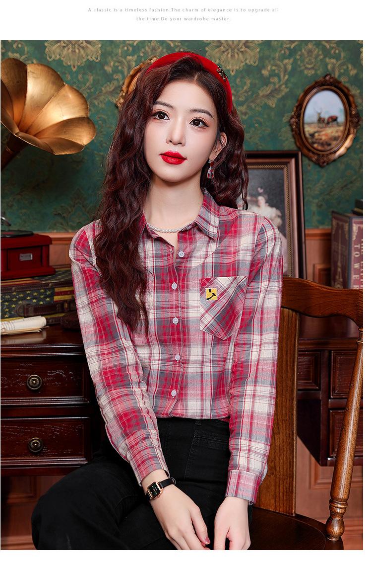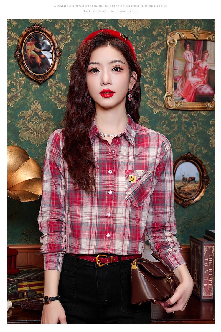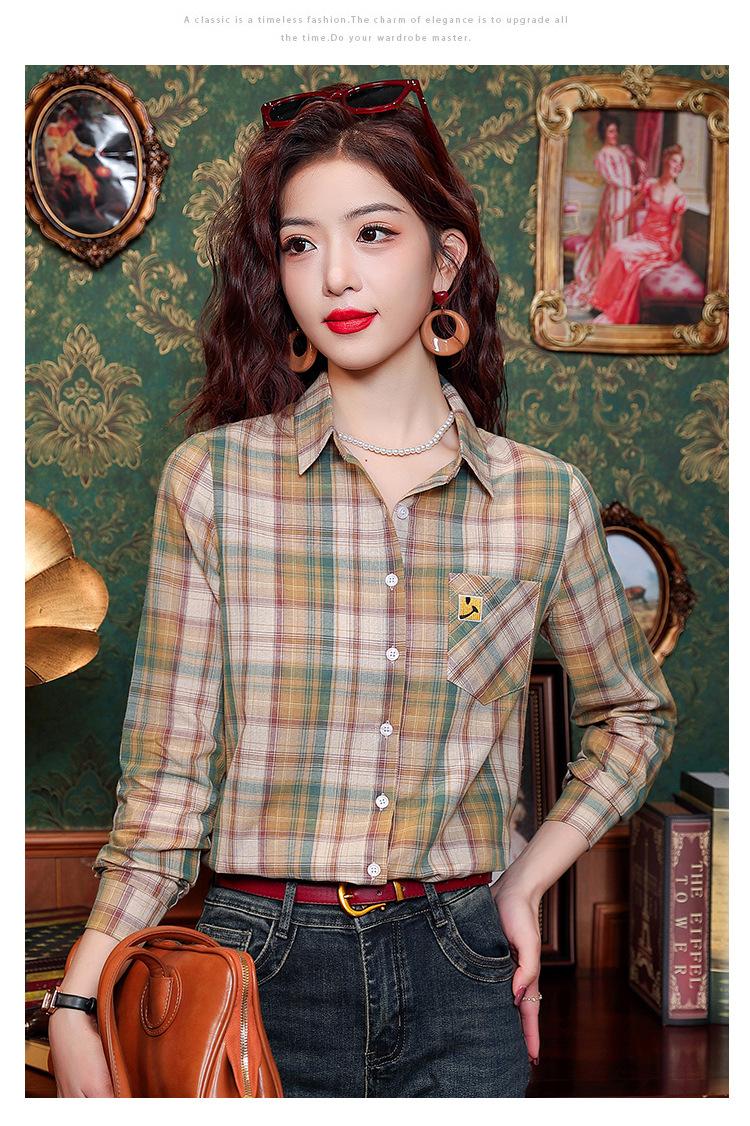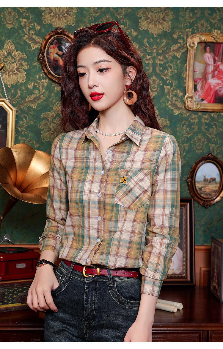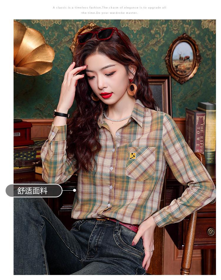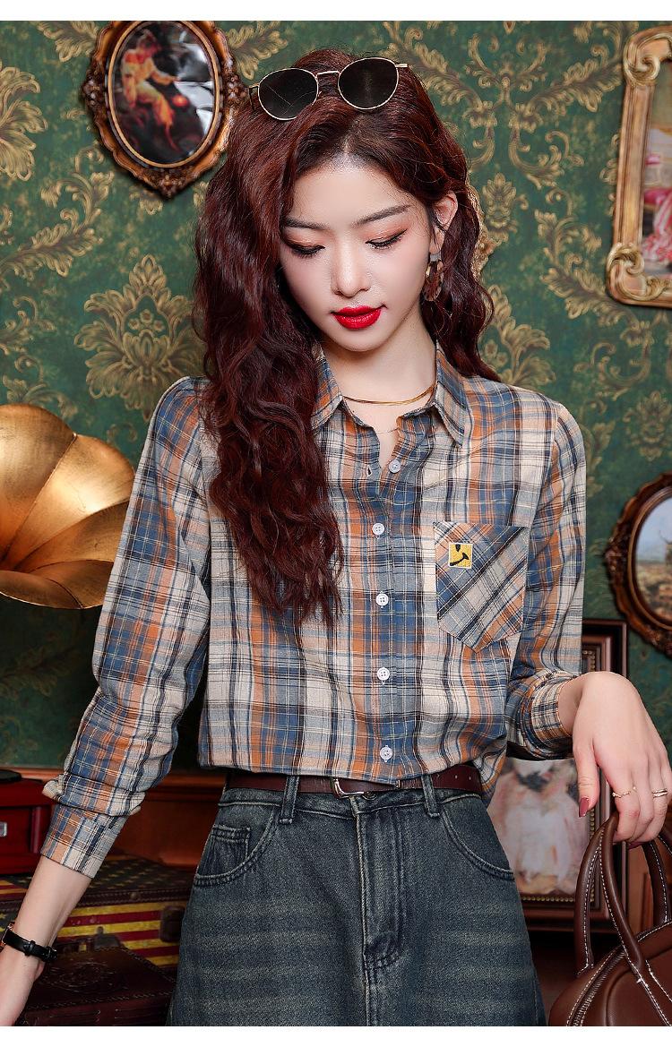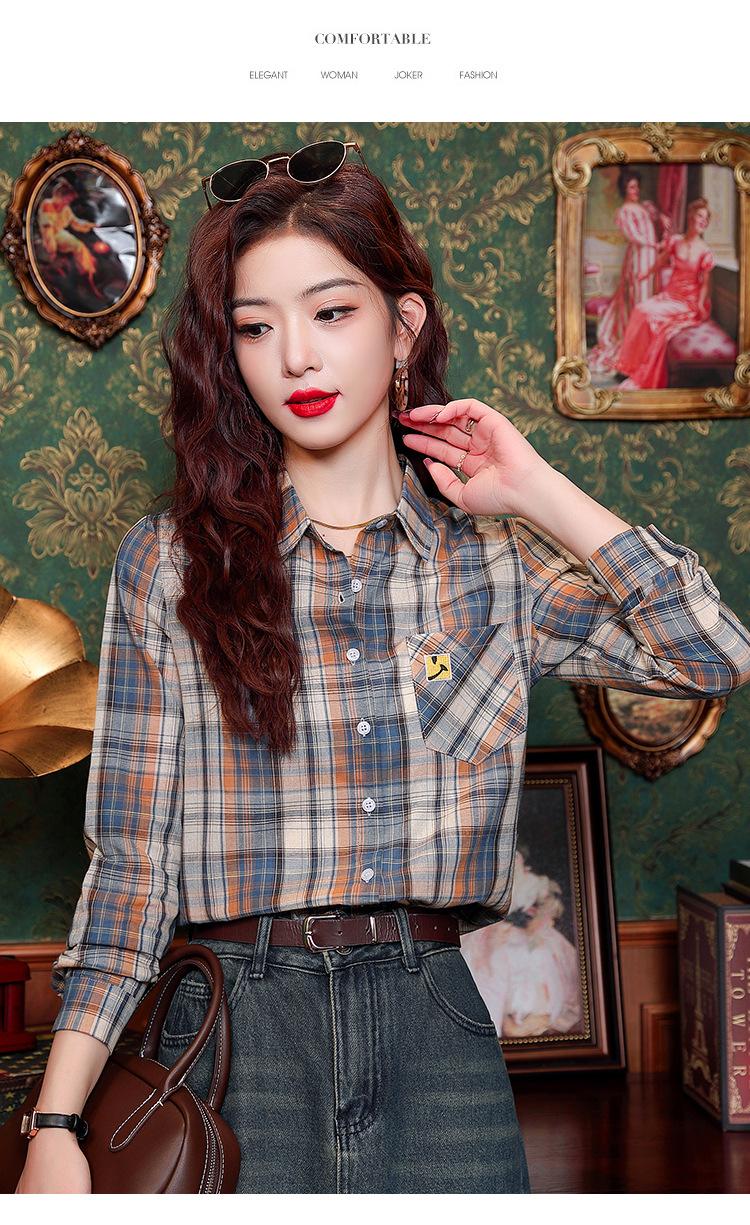 Compre Camisa Xadrez Estilo Moda Hong Kong para Mulheres Primavera & Outono 2025 Nova Camisa Básica Solta e Versátil Camisa de Manga Comprida com Gola Polo no atacado no Joom.pro