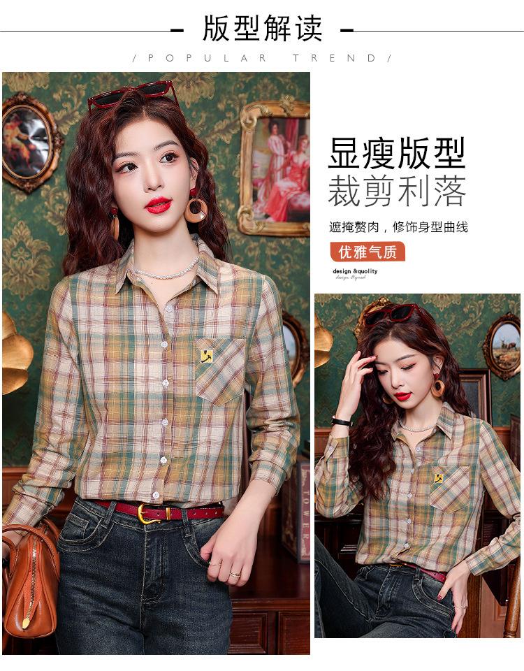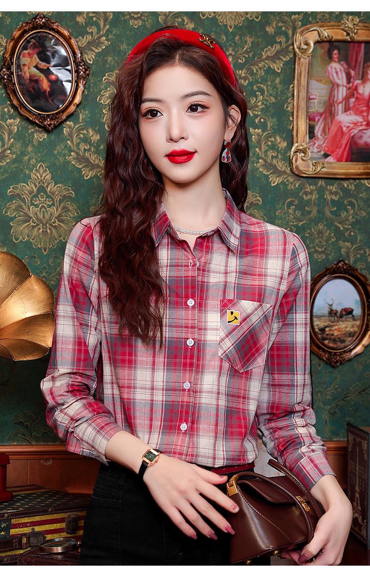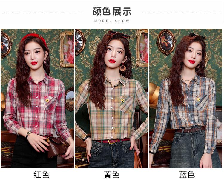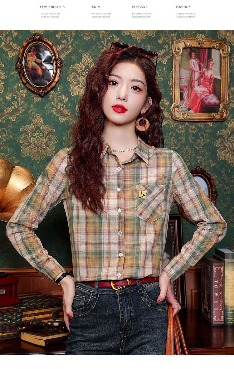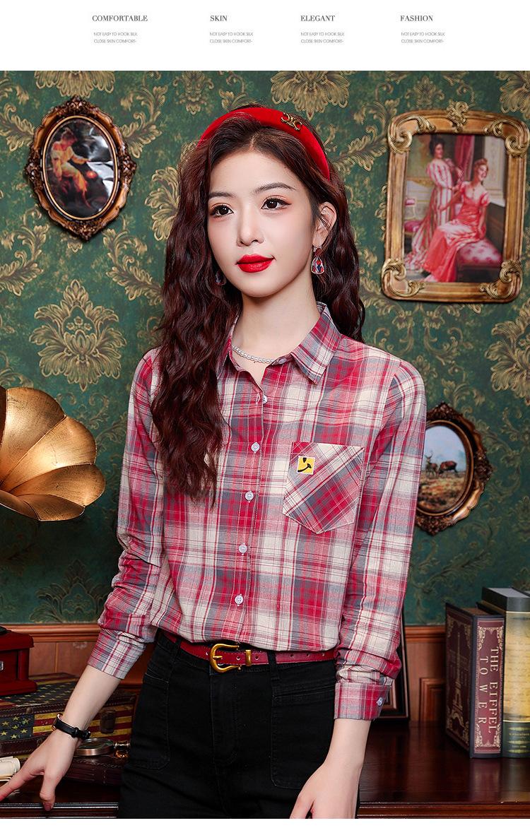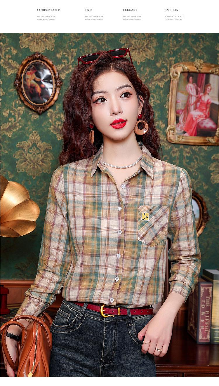 Compre Camisa Xadrez Estilo Moda Hong Kong para Mulheres Primavera & Outono 2025 Nova Camisa Básica Solta e Versátil Camisa de Manga Comprida com Gola Polo no atacado no Joom.pro