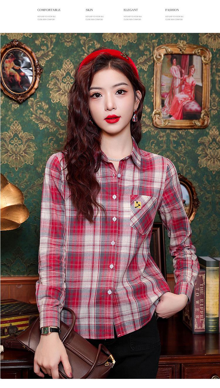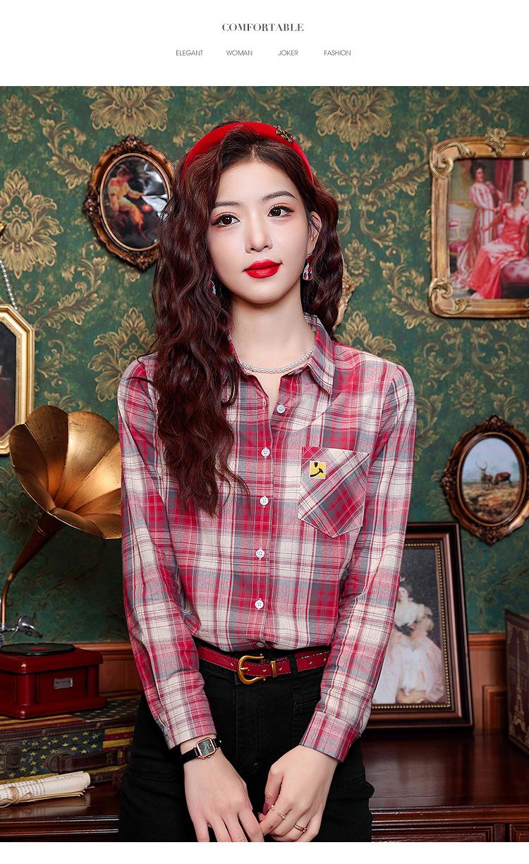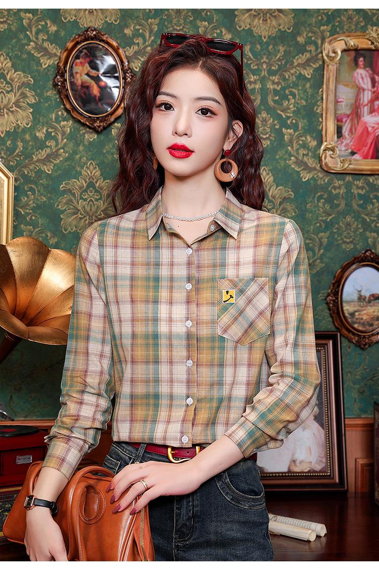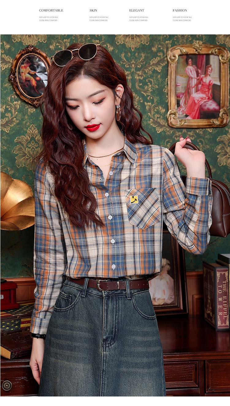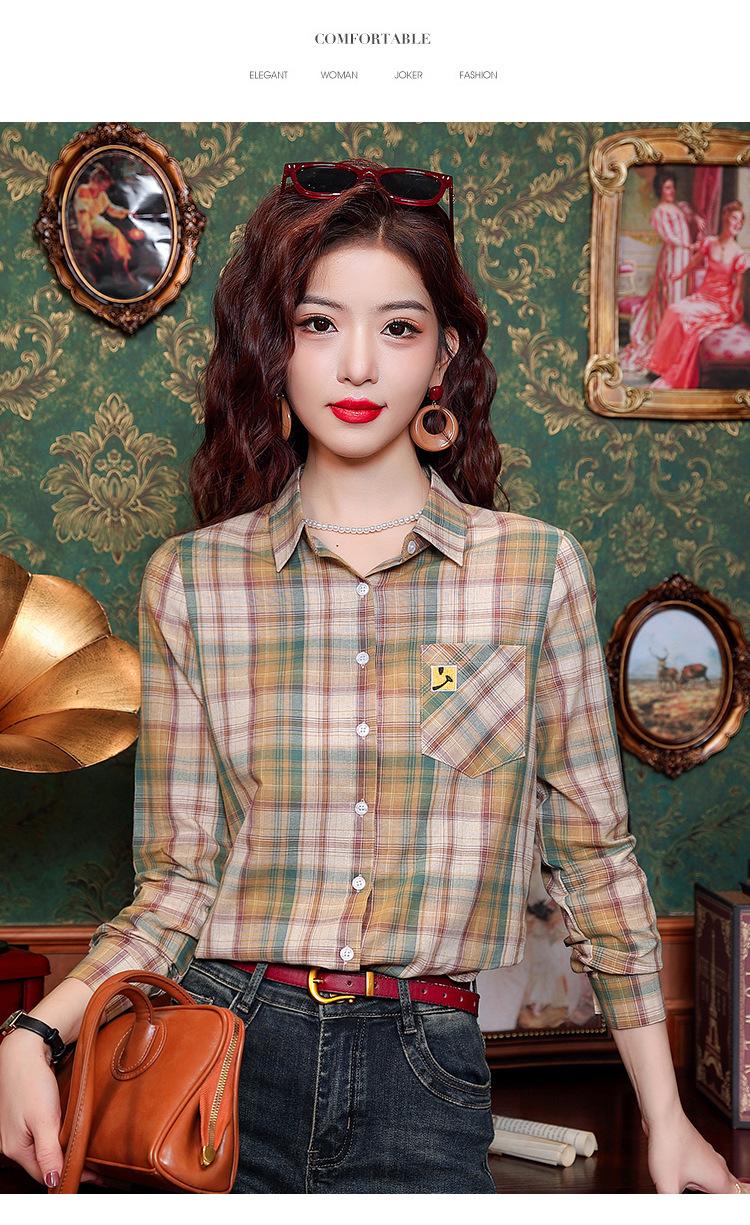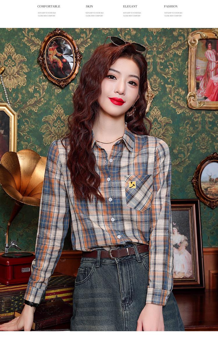 Compre Camisa Xadrez Estilo Moda Hong Kong para Mulheres Primavera & Outono 2025 Nova Camisa Básica Solta e Versátil Camisa de Manga Comprida com Gola Polo no atacado no Joom.pro