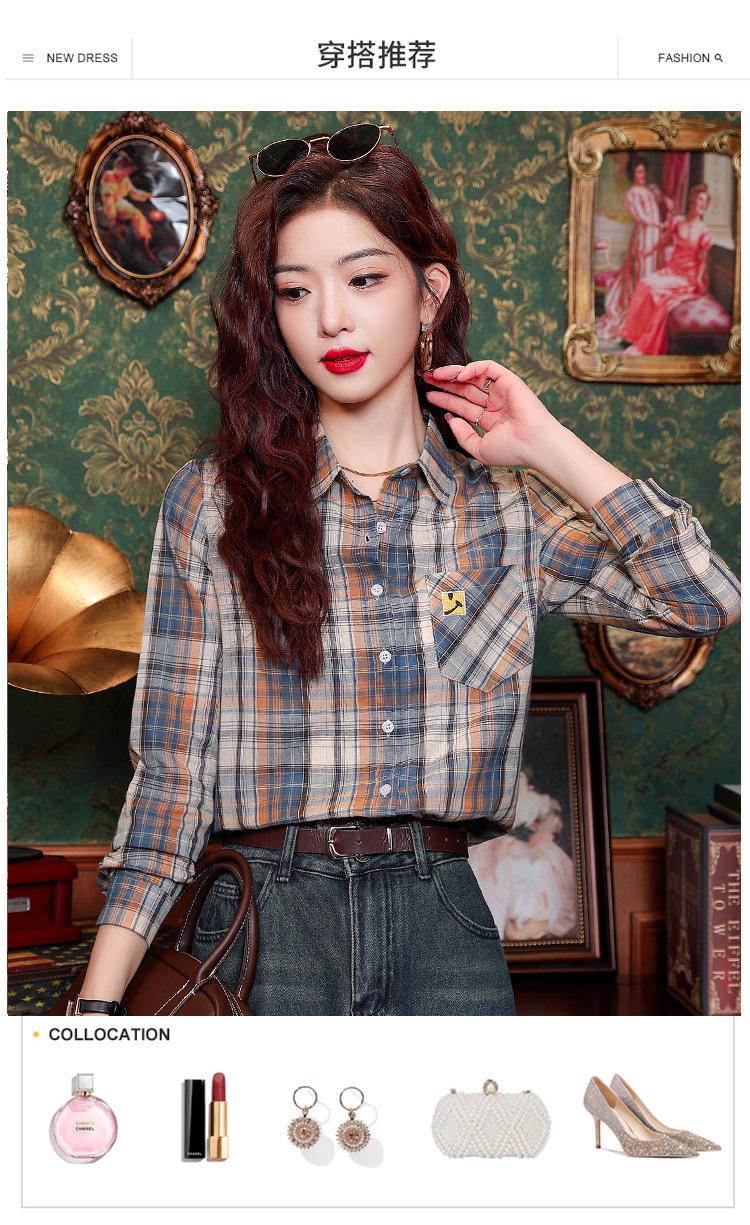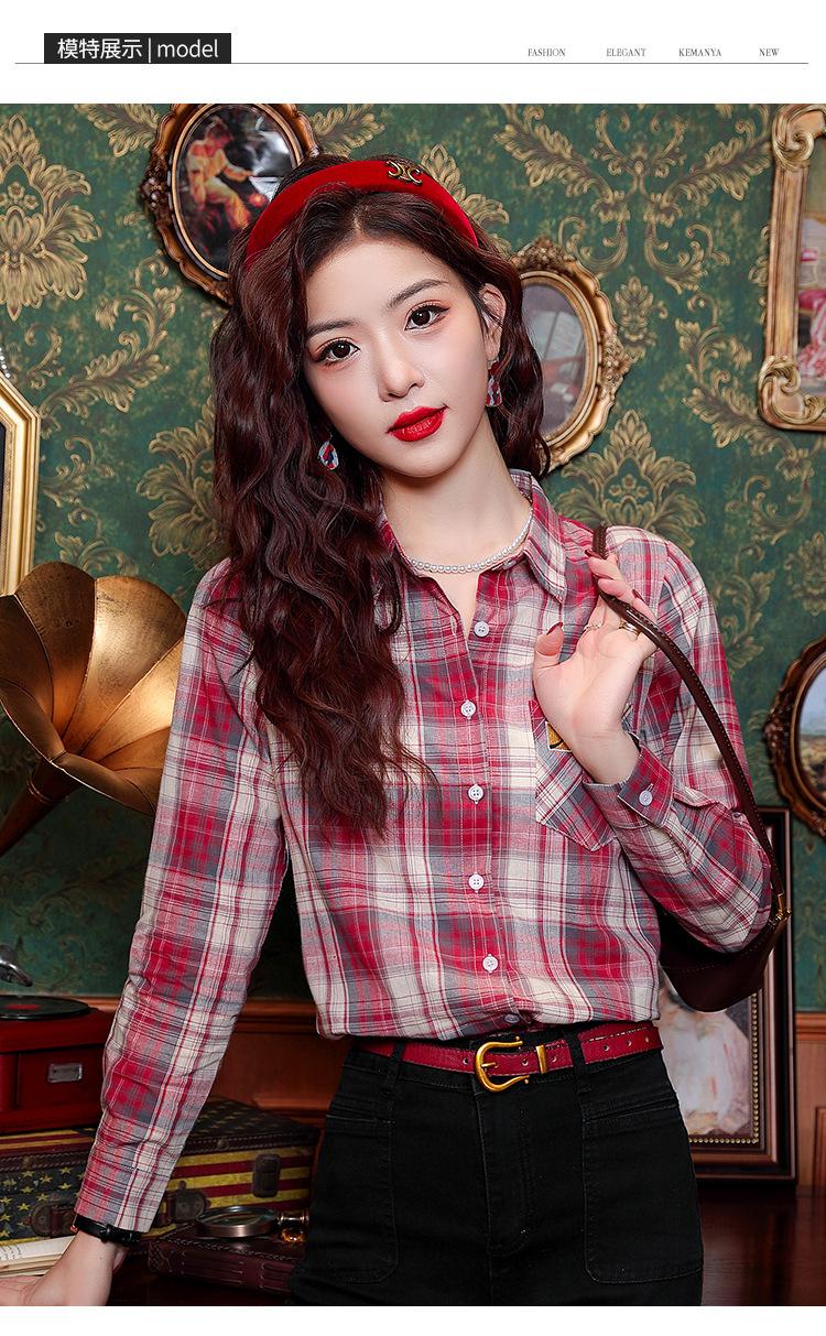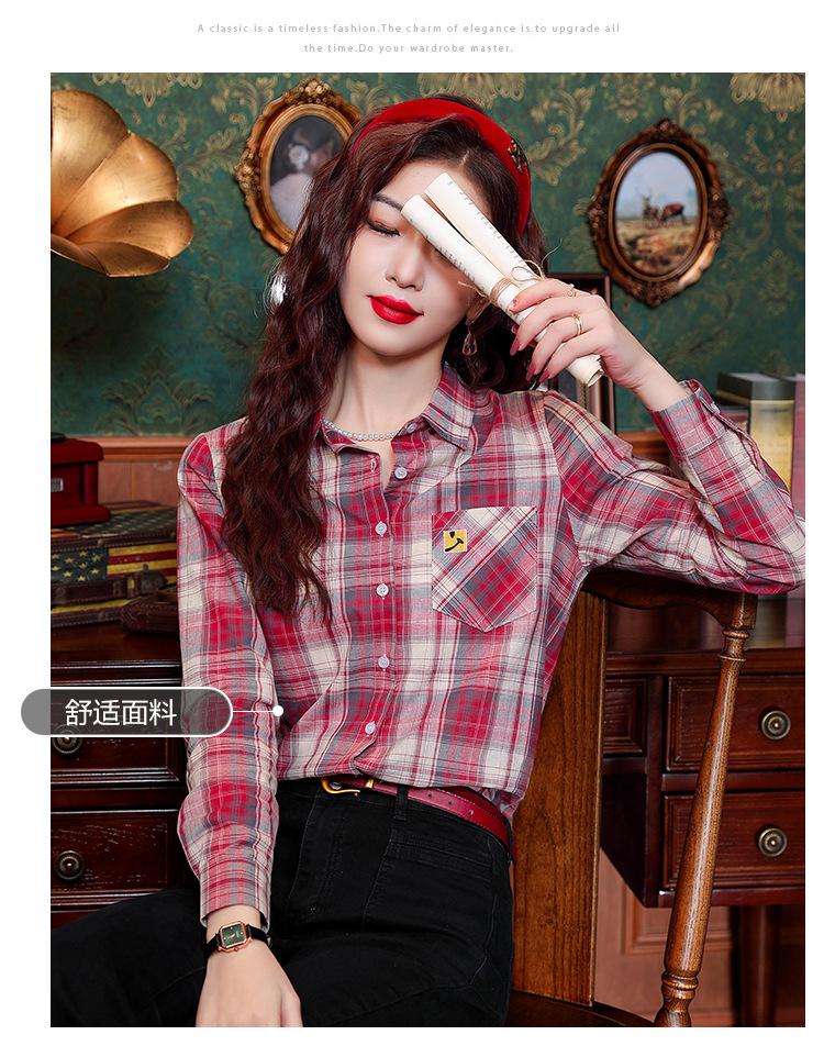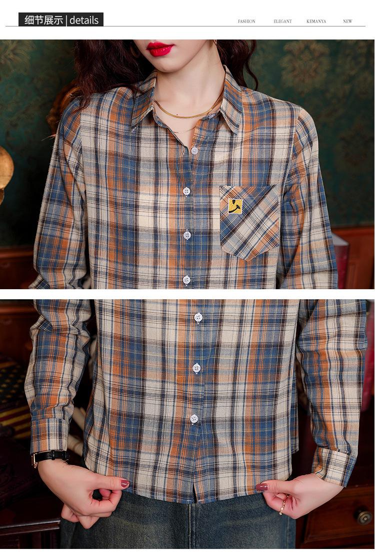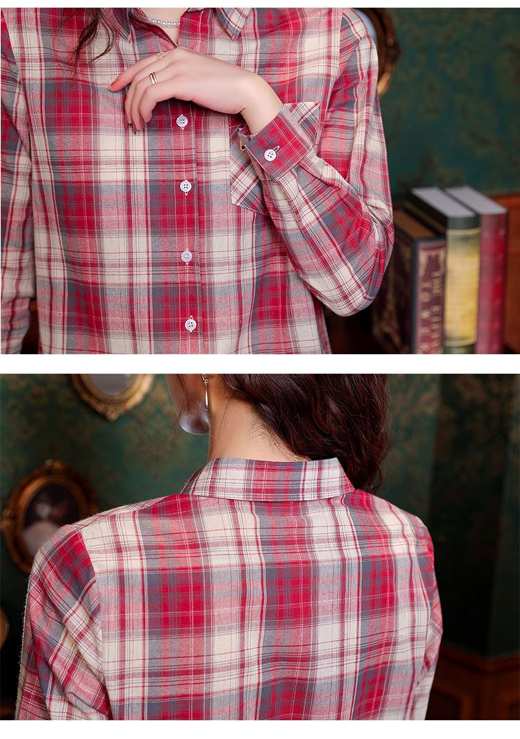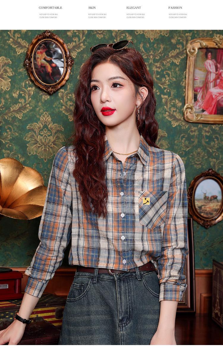 Compre Camisa Xadrez Estilo Moda Hong Kong para Mulheres Primavera & Outono 2025 Nova Camisa Básica Solta e Versátil Camisa de Manga Comprida com Gola Polo no atacado no Joom.pro