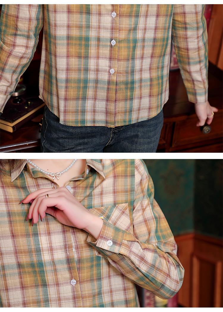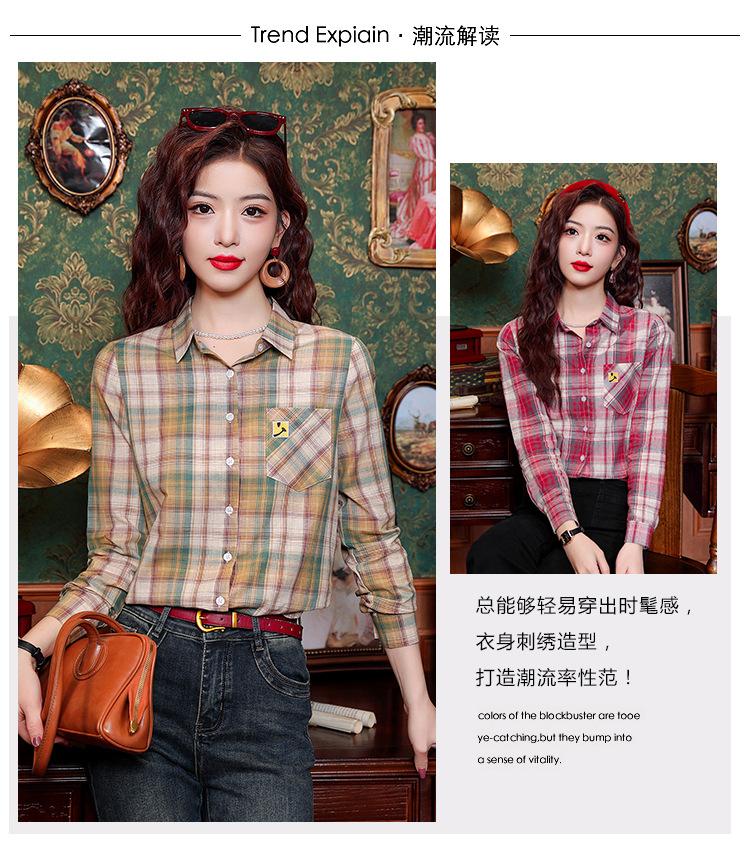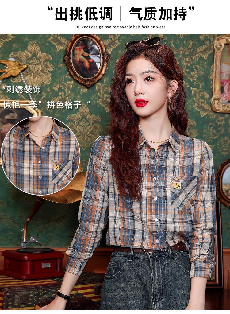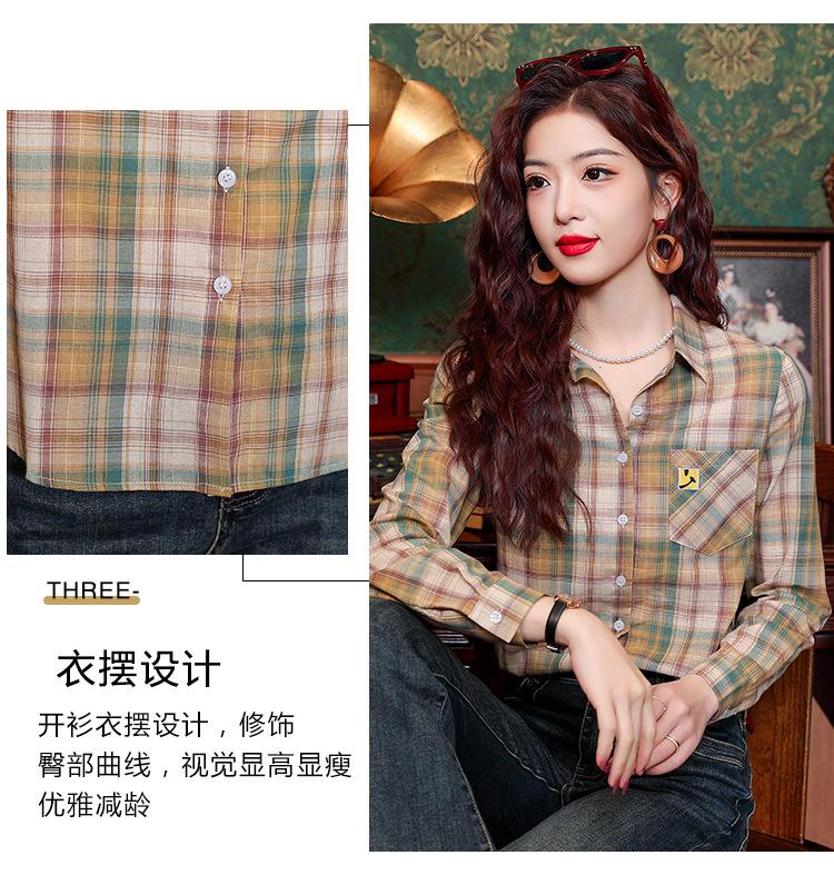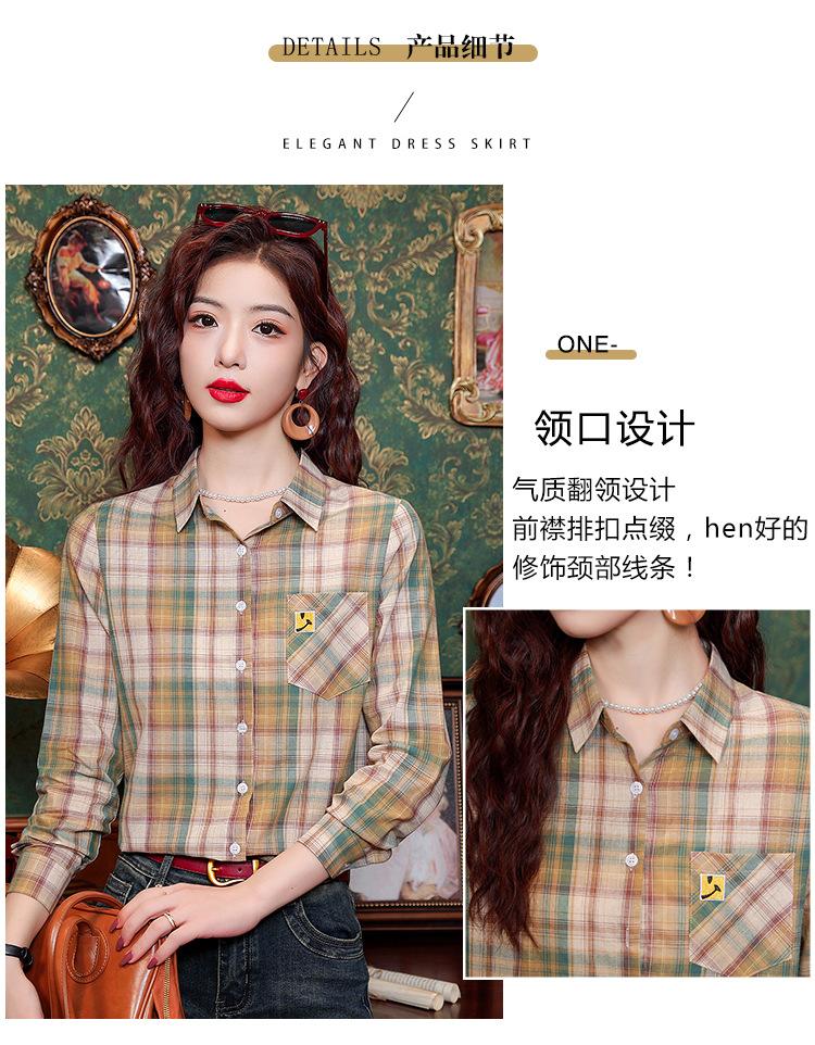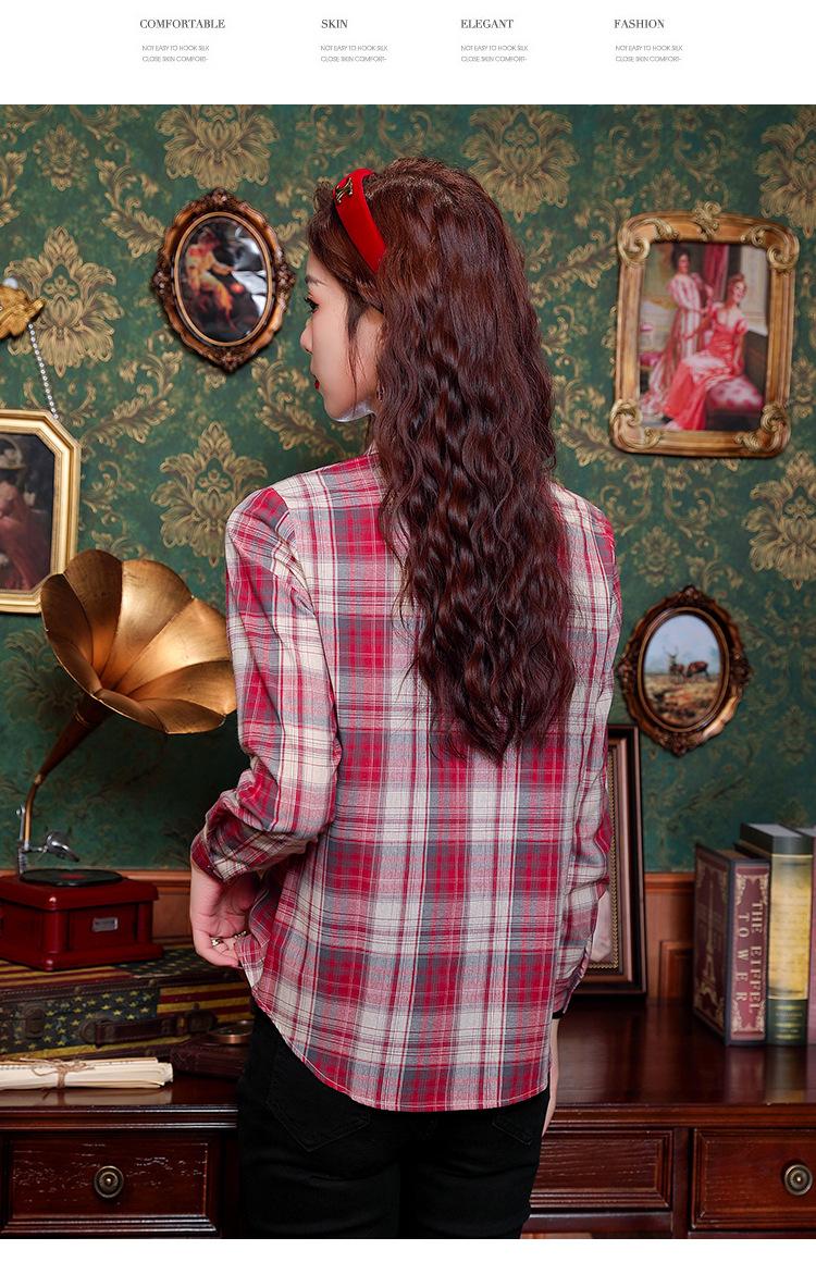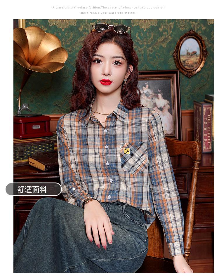 Compre Camisa Xadrez Estilo Moda Hong Kong para Mulheres Primavera & Outono 2025 Nova Camisa Básica Solta e Versátil Camisa de Manga Comprida com Gola Polo no atacado no Joom.pro
