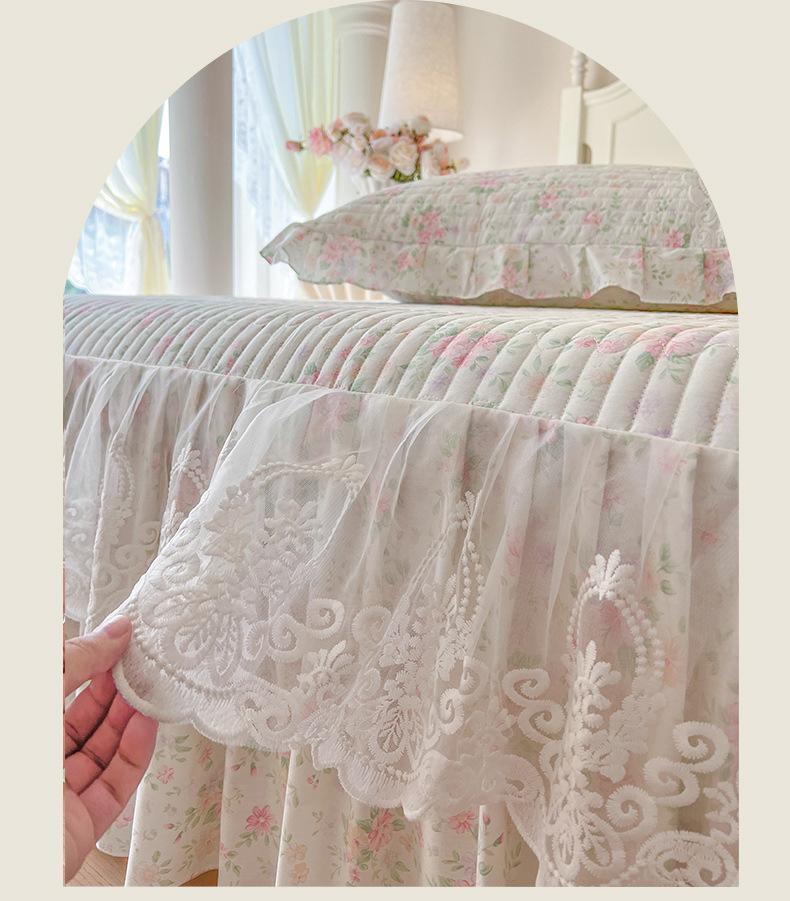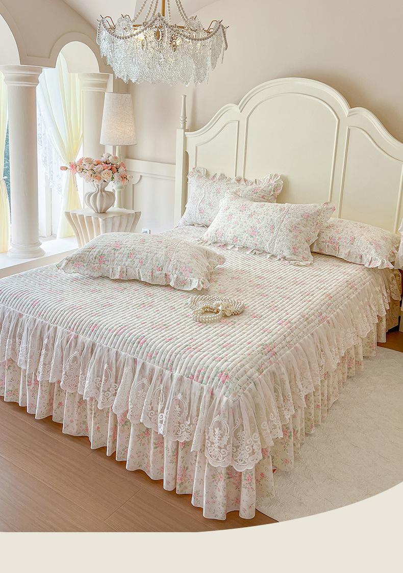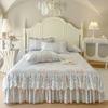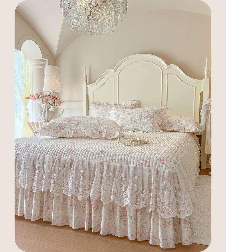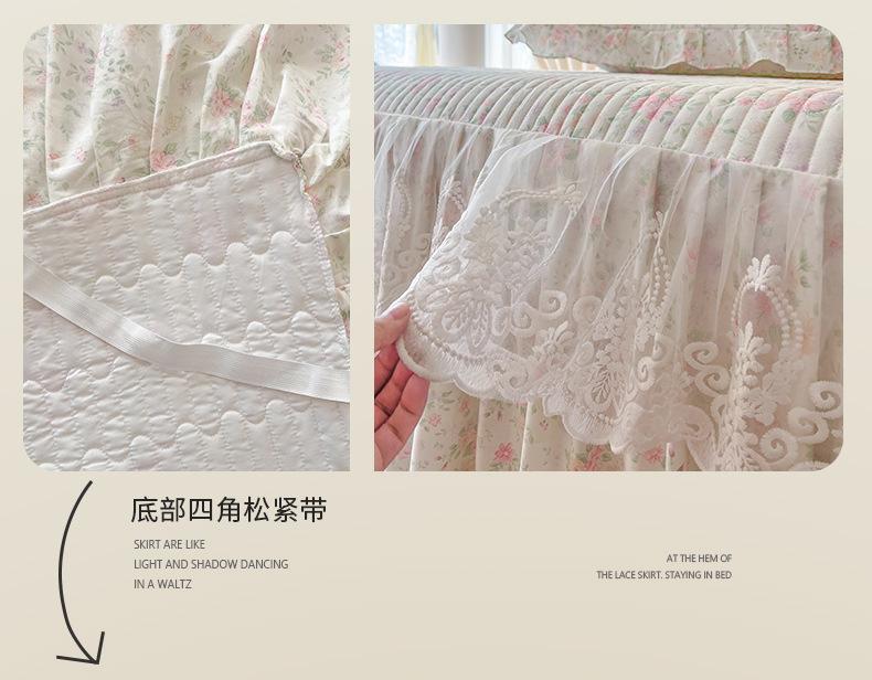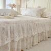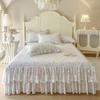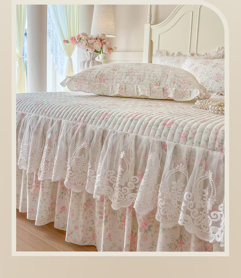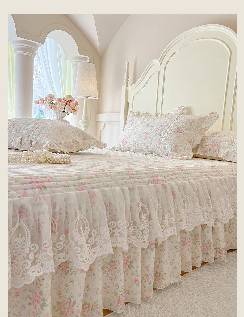 Saia de cama acolchoada em renda de algodão puro com estampa floral estilo princesa, lençol de uma peça com babado, colcha universal para todas as estações.