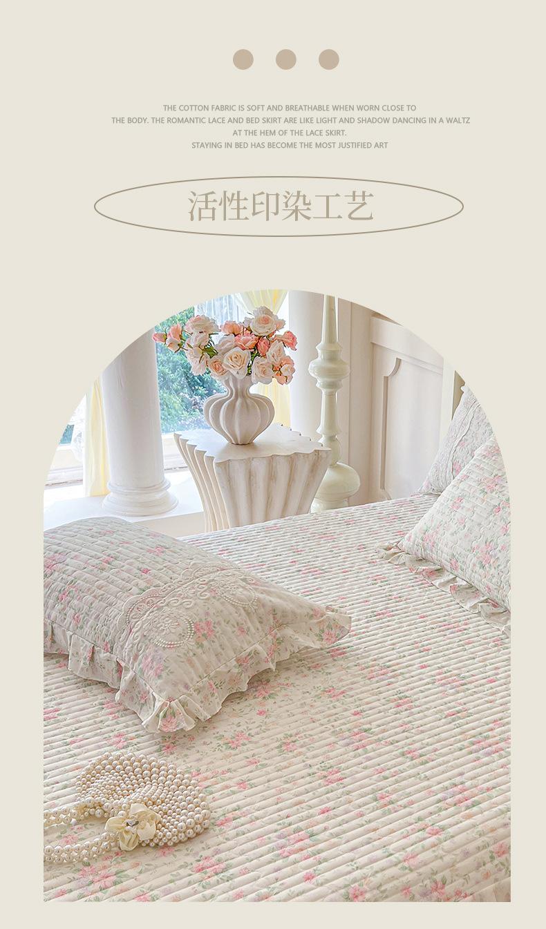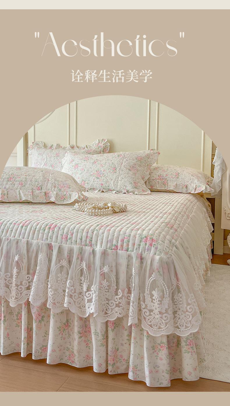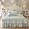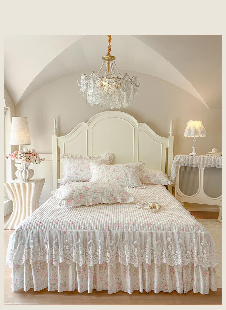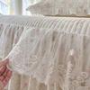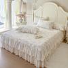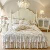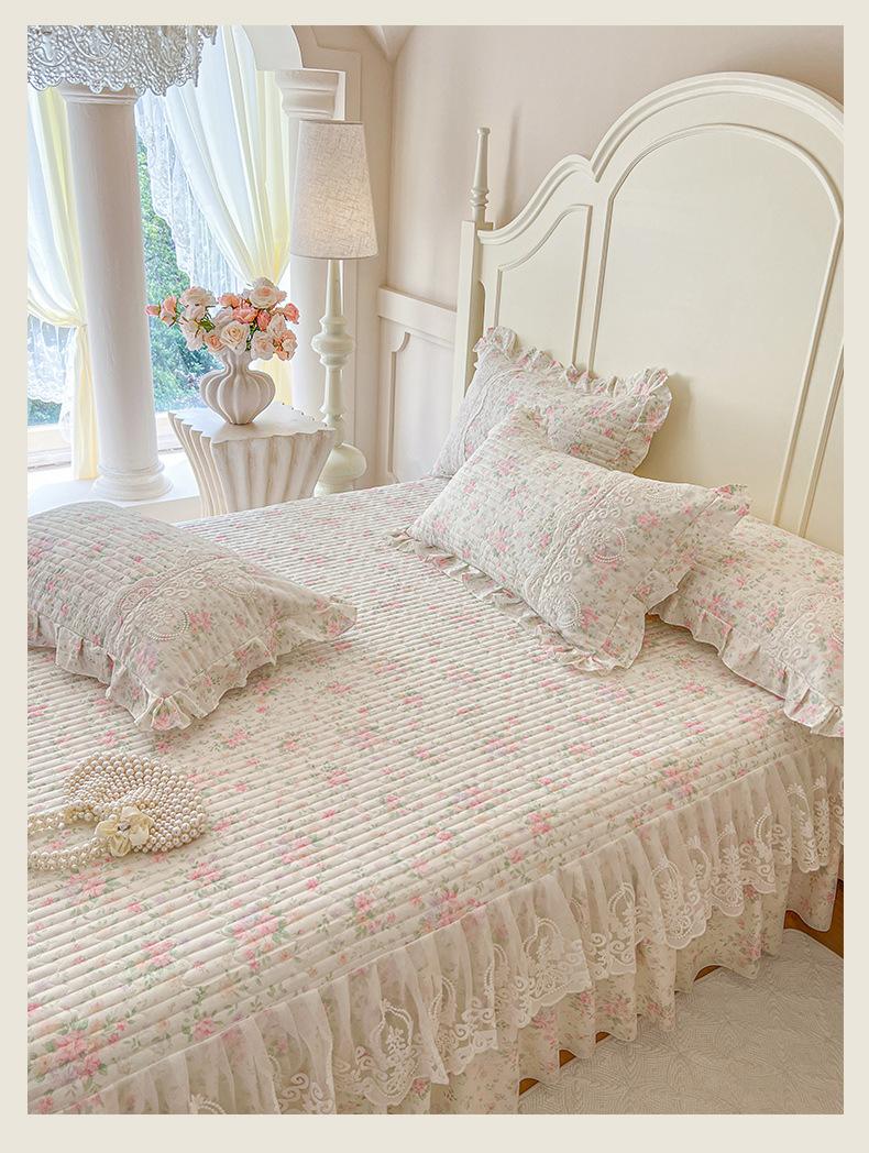 Saia de cama acolchoada em renda de algodão puro com estampa floral estilo princesa, lençol de uma peça com babado, colcha universal para todas as estações.