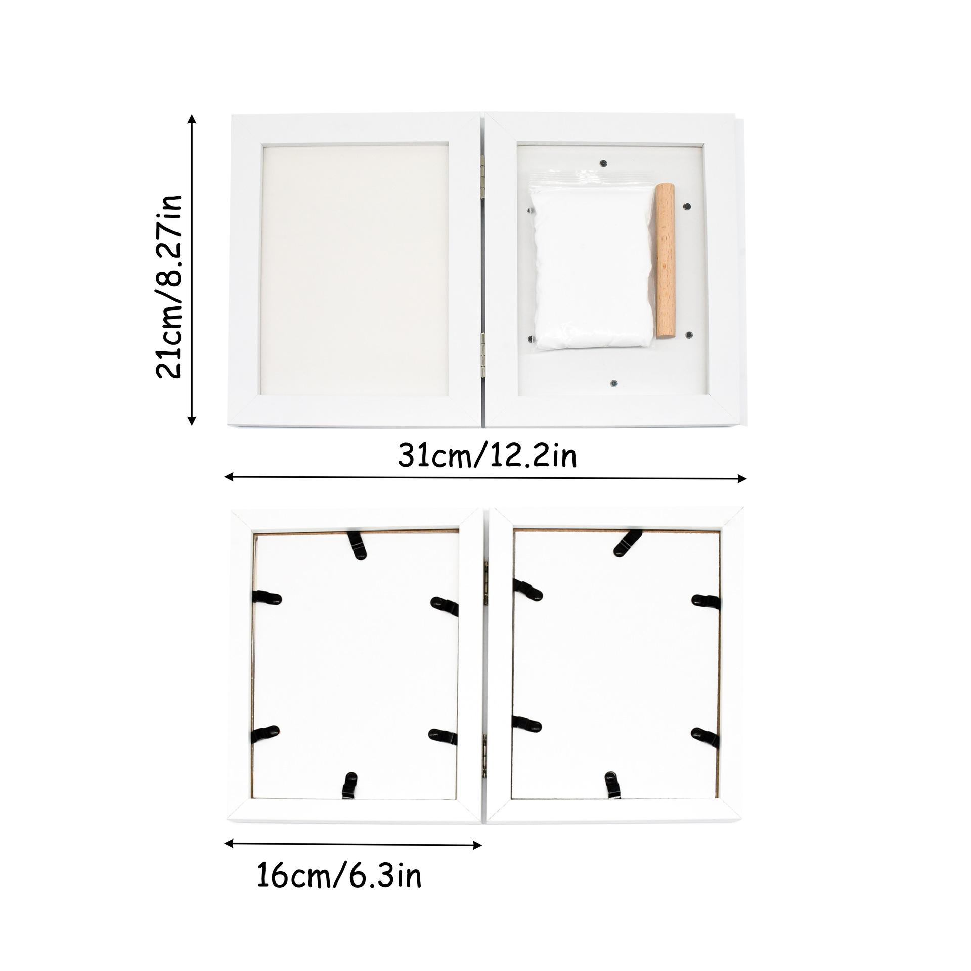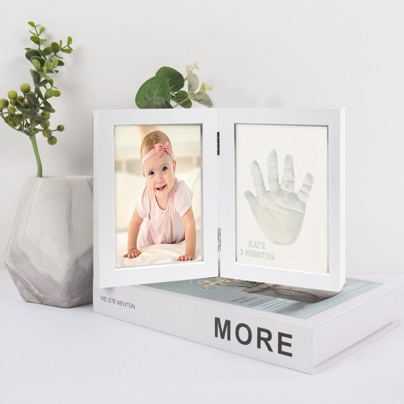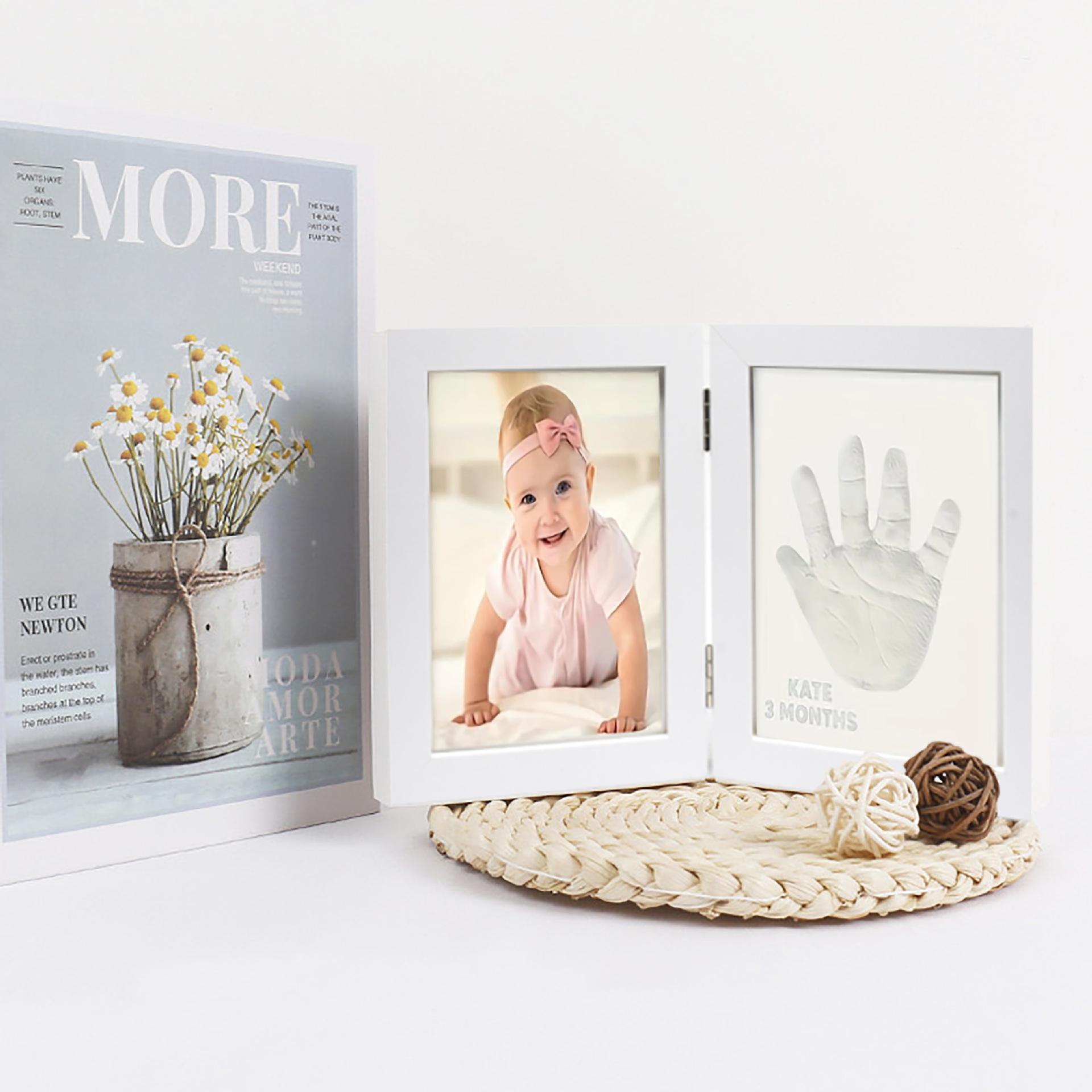 Porta-retrato dobrável com impressão da mão do bebê, almofada de tinta para bebê, impressão da mão e do pé do bebê, porta-retrato DIY, porta-retrato oco com dobradiça para bebê