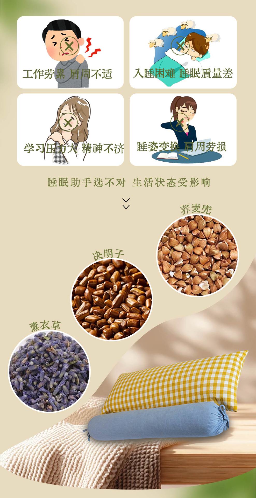 Almofada de Trigo Sarraceno Estilo Grade Casca de Trigo Sarraceno Peça Única Almofada Cervical Lavável Algodão Removível e Lavável Proteção para o Pescoço Coluna Cervical Almofada Floral Herbal Atacado
