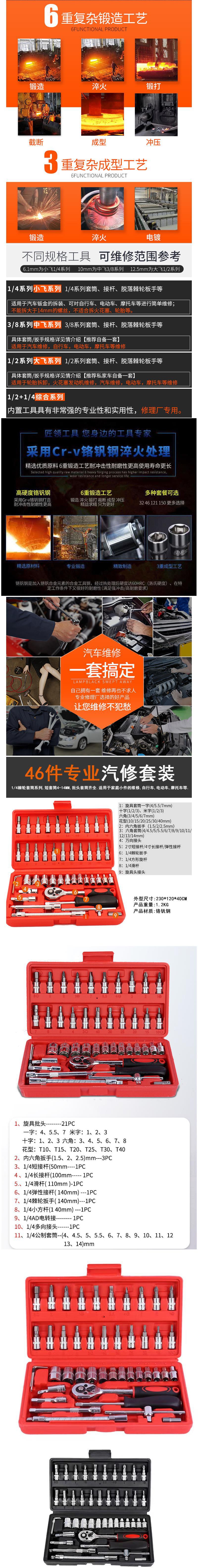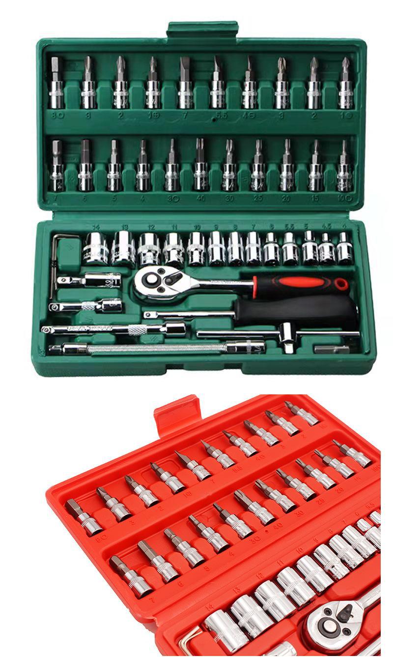 46-piece sleeve red classic style, 46-piece sleeve green universal style, 46-piece sleeve black foreign trade ...