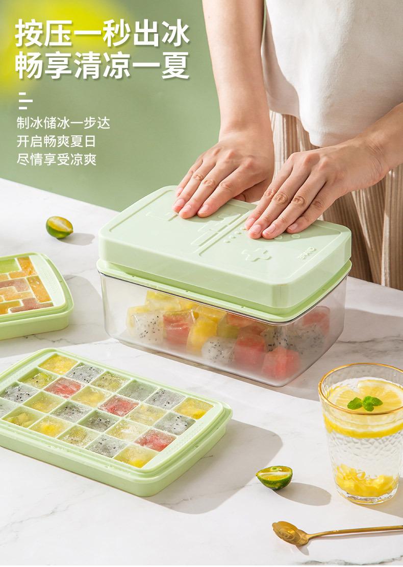 Forma de Gelo Grande Capacidade Plástico Macio Bandeja de Gelo Armazenamento de Gelo Doméstico Caixa de Gelo com Tampa Geladeira Artefato de Cubo de Gelo Congelado Caseiro