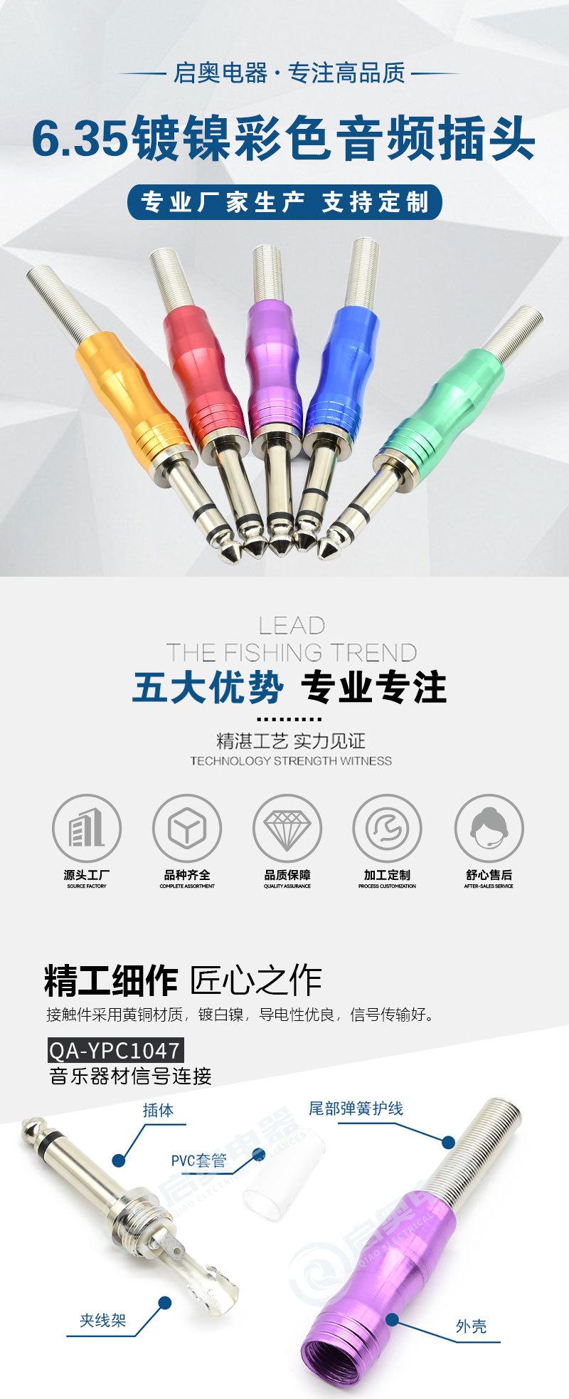 [Vendas diretas da fábrica] Conector de áudio e vídeo mono de canal duplo plugue de microfone 6,35