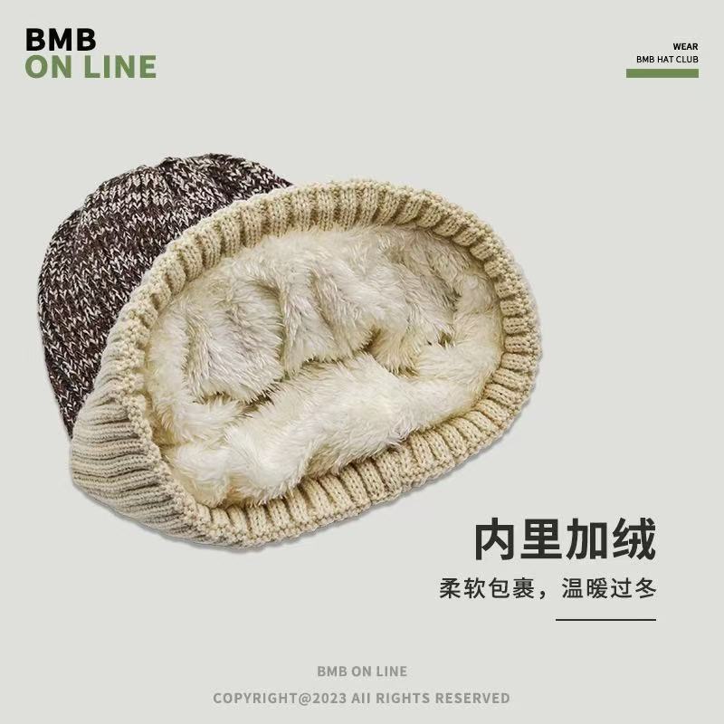 Novo Estilo Inverno 2025 Transfronteiriço Deixa o Rosto Menor Gorro de Tricô Masculino Estilo Coreano Forrado com Lã Espessado Proteção para as Orelhas Pulôver Quente Chapéu de Lã