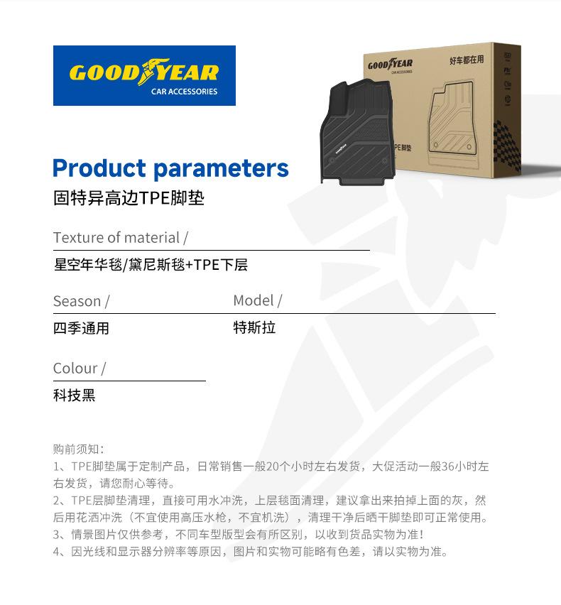 Tapetes de Chão para Carro Goodyear Modelo 2025 Modely Tpe Completo 360 Bolsa Macia de Aviação Porta-Malas Proteção Lateral Alta