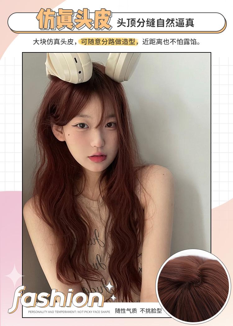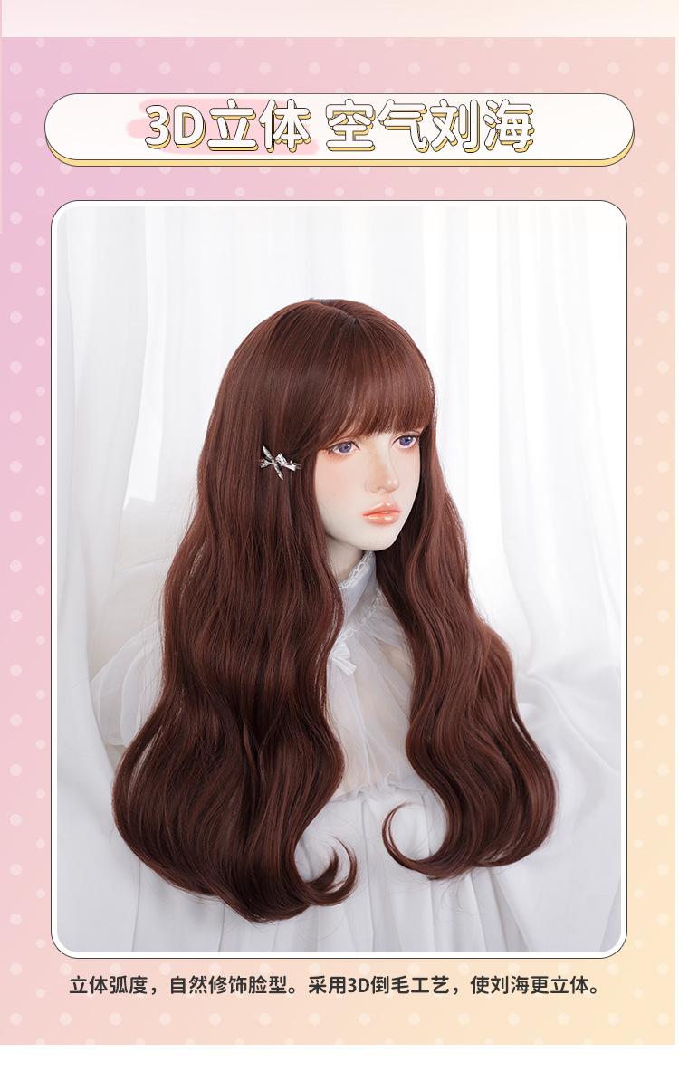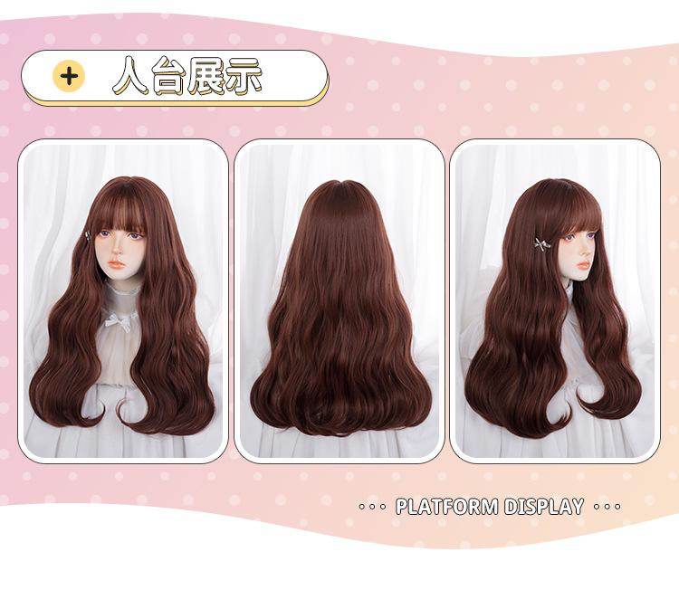 Peruca transfronteiriça feminina cabelo longo natural fofo onda grande cabelo longo cacheado Lolita cobertura total cabeça peruca da moda