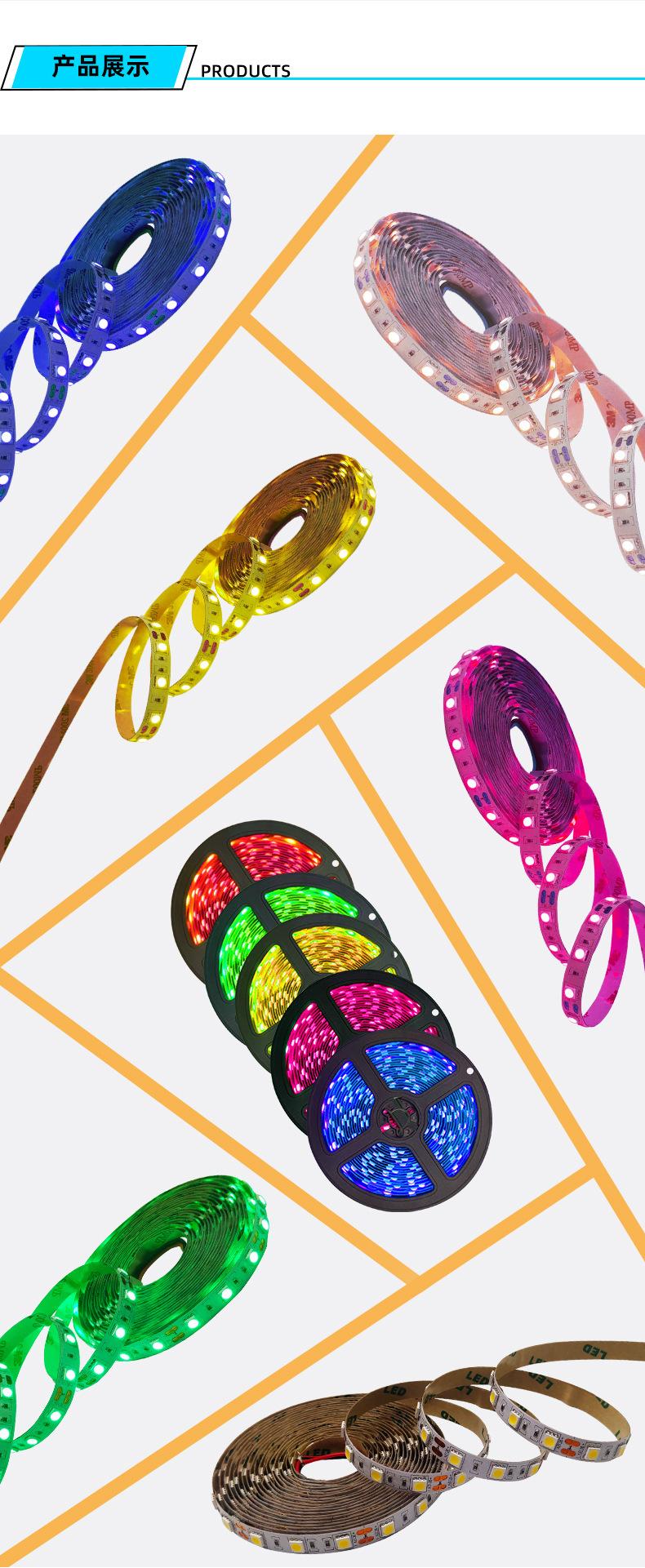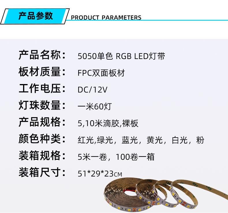 Fita LED 5050RGB 12V baixa tensão alto brilho monocromática à prova d'água gotejamento de cola placa nua fita de luz decorativa interna e externa