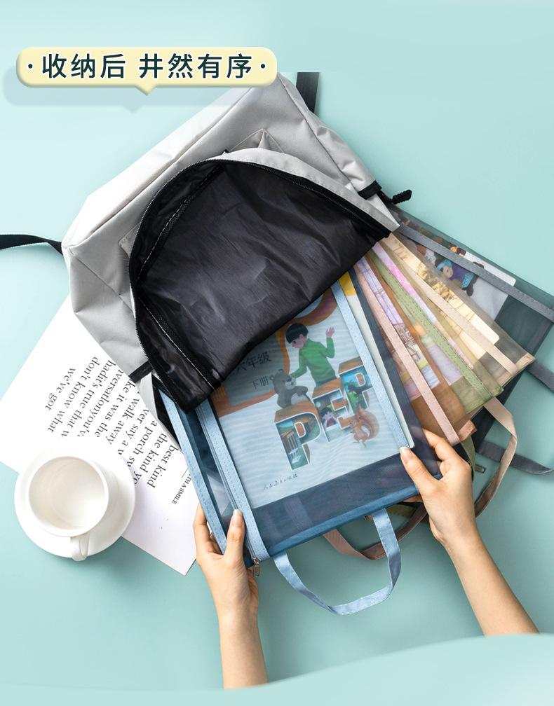 Pasta Dupla Camada A4 Morandi Bolsa de Mão para Papel de Teste A5A6 Estojo de Lápis de Estudante Bolsa de Documentos de Malha Transparente Bolsa de Armazenamento