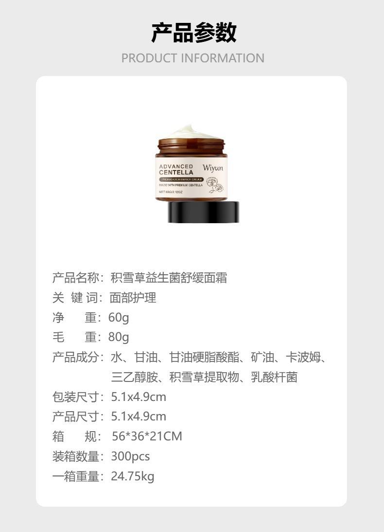 Wiyun Centella Asiatica Probiotic Creme Calmante Alivia a Vermelhidão, Melhora a Pele Seca, Hidrata, Firma e Ilumina
