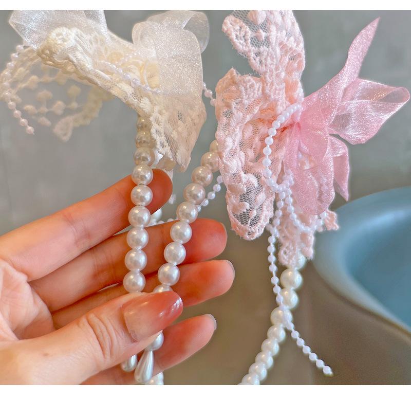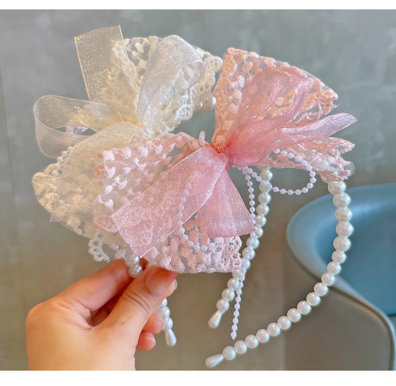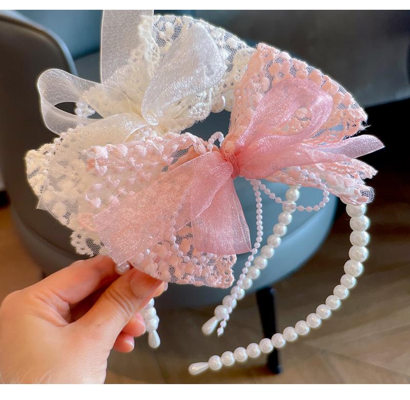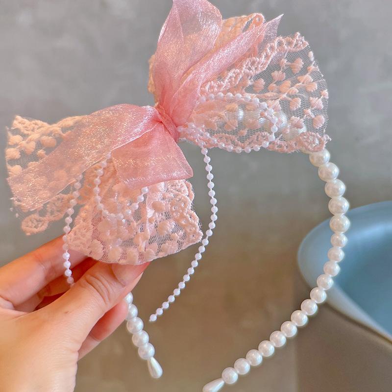 Primavera 24 novo estilo coreano fada renda fivela de cabeça laço Pérola Princesa infantil tiara cocar acessórios de cabelo