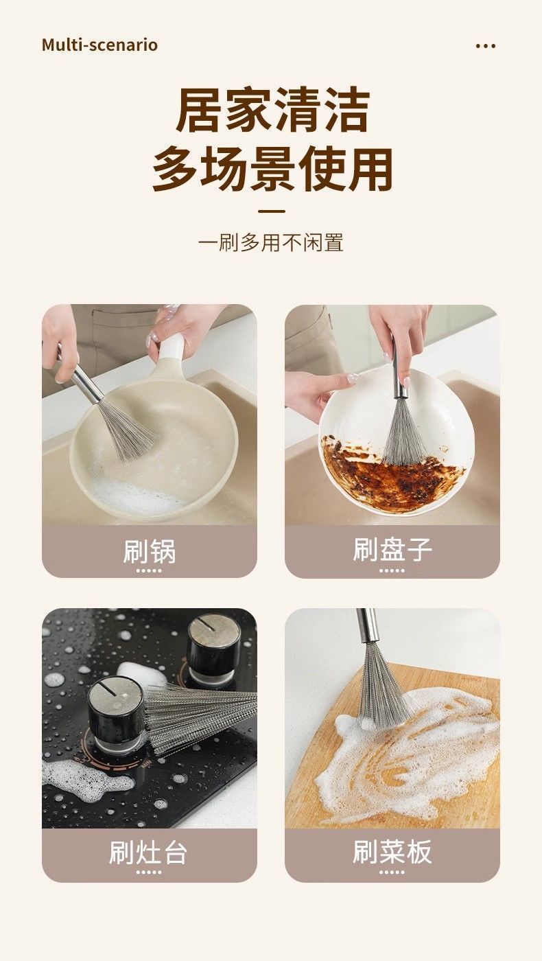 Escova de Lavar Louça de Cabo Longo para Cozinha, Escova de Limpeza de Louça, Tamanho Grande Doméstico para Lavar Panelas, Palha de Aço Inoxidável Especial, Durável
