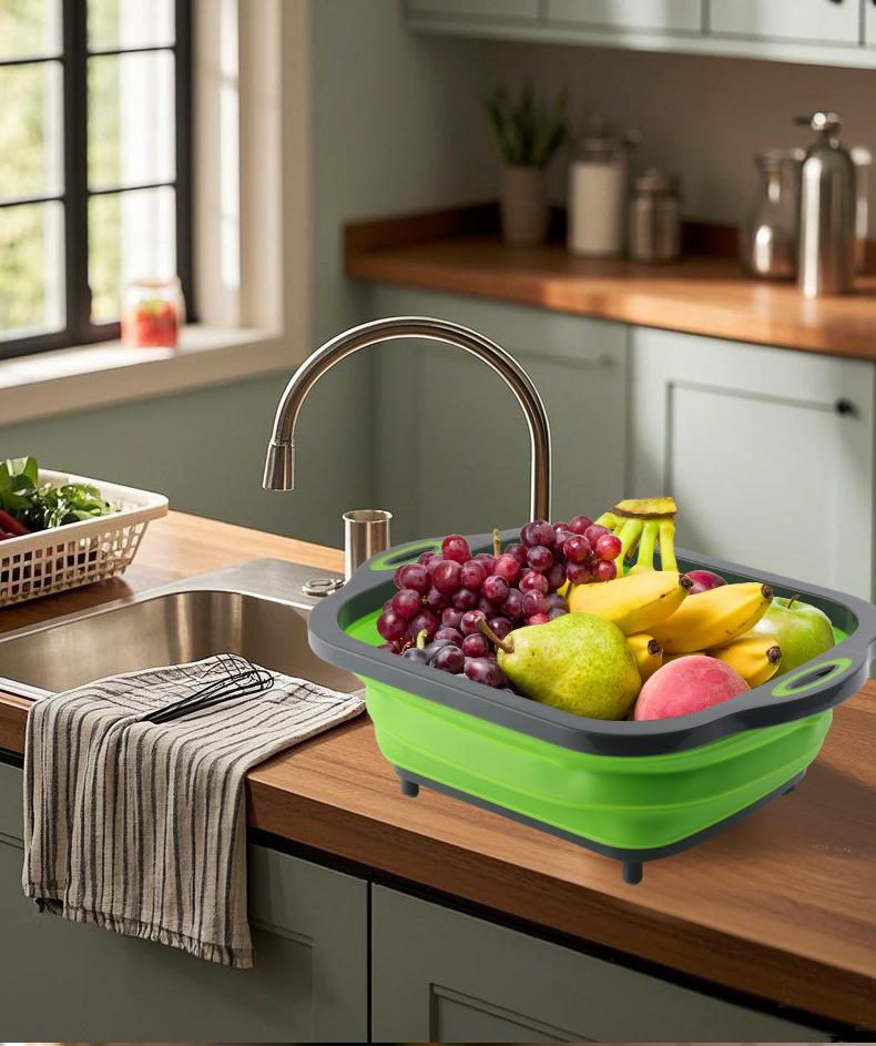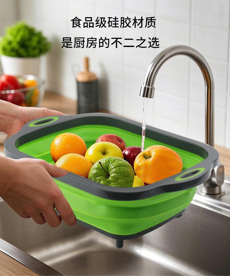 Conjunto de Bacia Dobrável Cesto de Escorredor de Cozinha Cesto de Armazenamento de Plástico Retrátil Cesto de Frutas Doméstico Ferramenta de Camping Transfronteiriço
