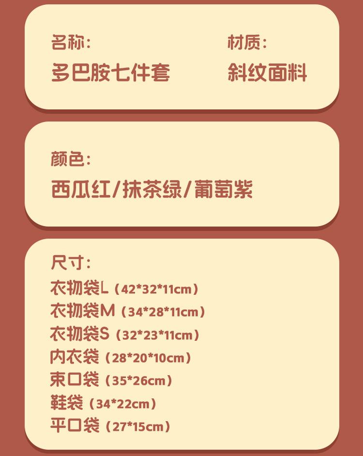 Dopamina Viagem Armazenamento Saco de Armazenamento Sarja Espessa Multifuncional Portátil Mala Saco de Armazenamento Sete Peças Impermeável