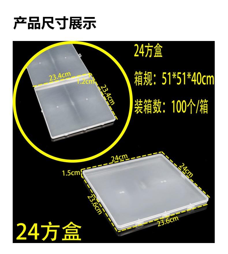 Caixa plana quadrada vazia de PP de 24cm transfronteiriça caixa de armazenamento de joias de mesa para gravatas caixa de plástico transparente caixa para pontas de unhas caixa para cartões