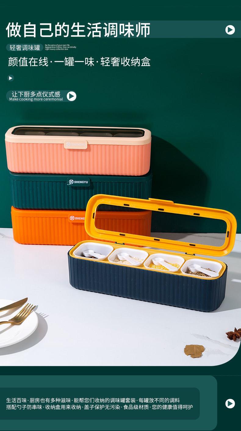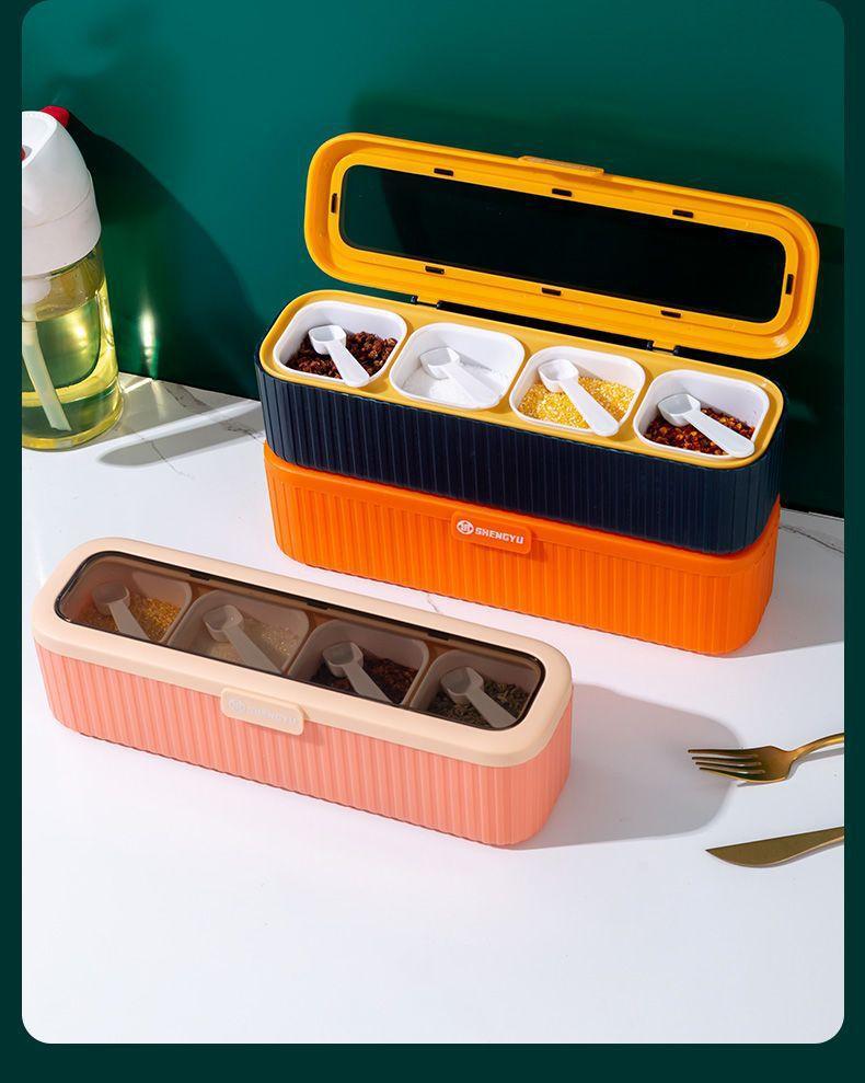 Vendas Diretas da Fábrica Caixa de Temperos de Cozinha Monobloco com Vários Compartimentos Caixa de Condimentos de Combinação de Quatro Compartimentos Pote de Armazenamento Transparente para Casa