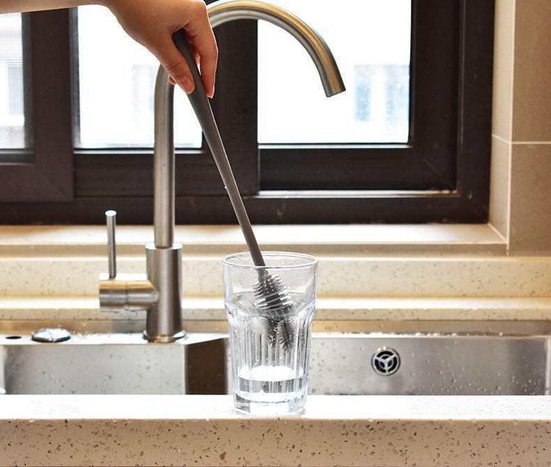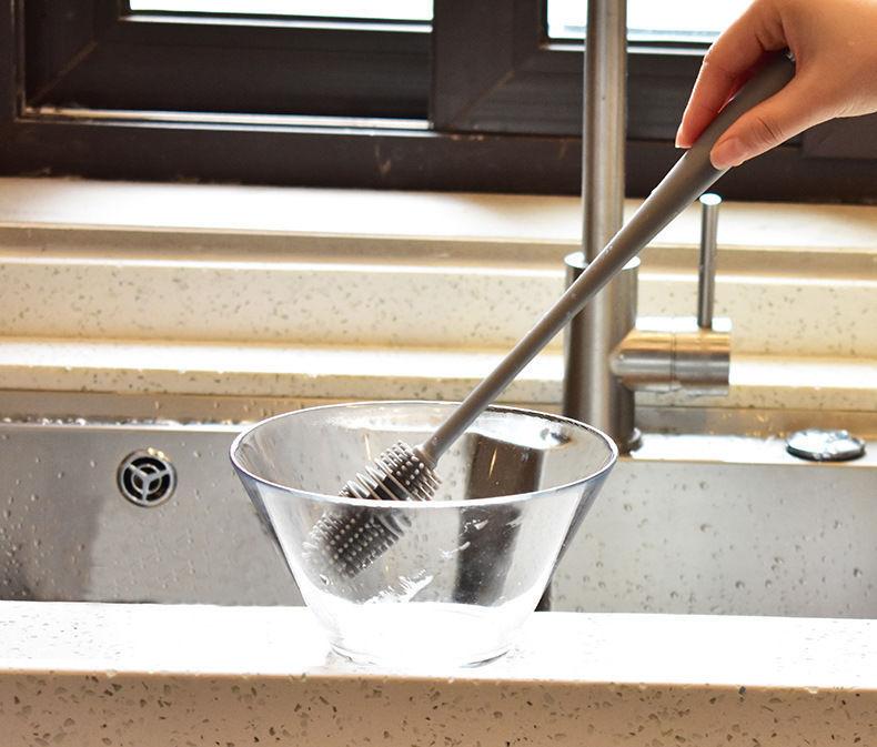 Escova de copo de artefato de copo de lavagem sem ângulo morto escova de silicone para garrafa de leite doméstica com cabo longo escova de copo de artefato de chá