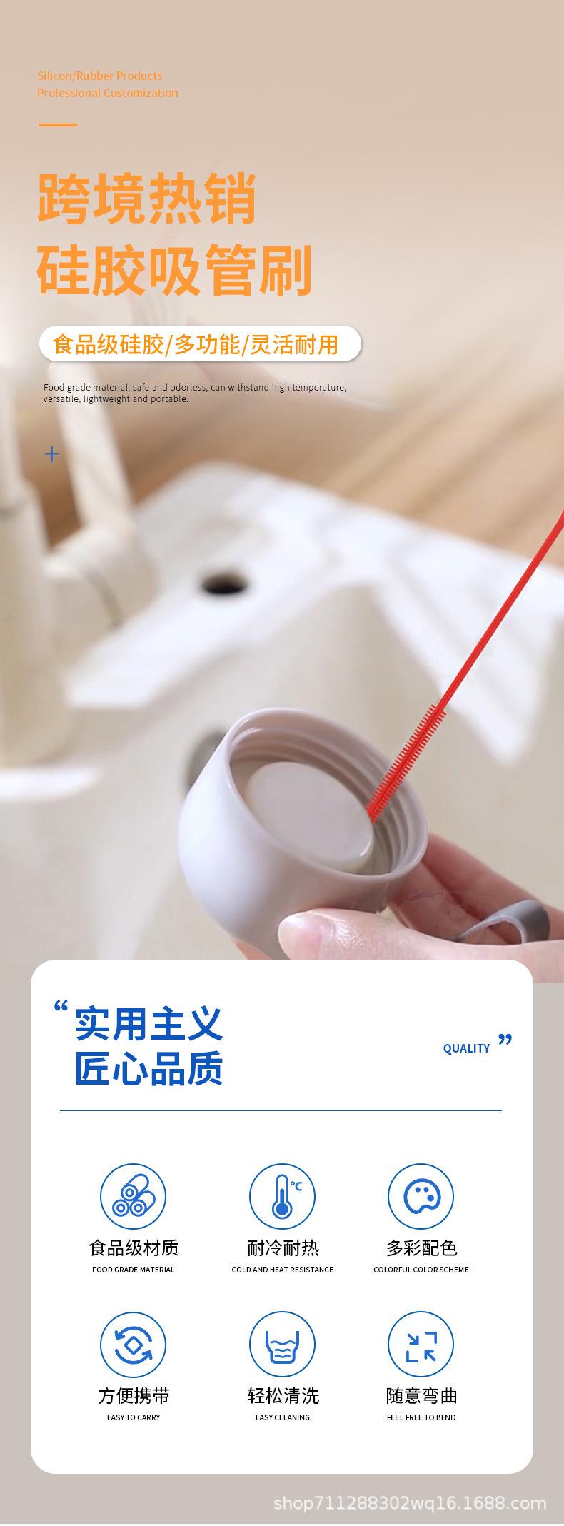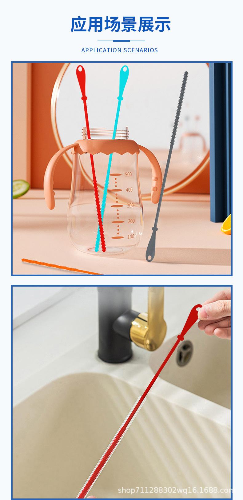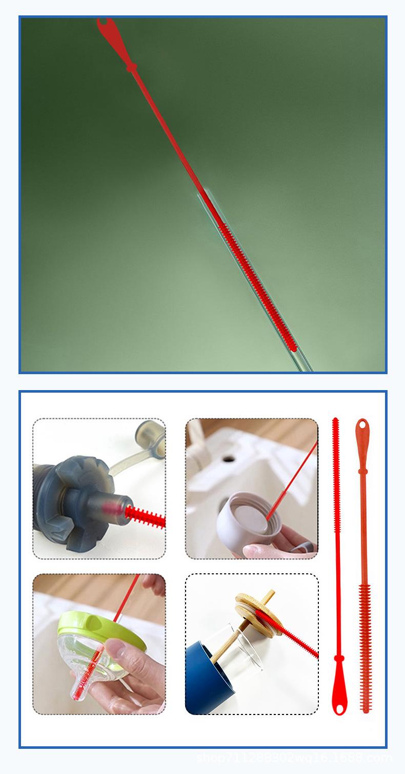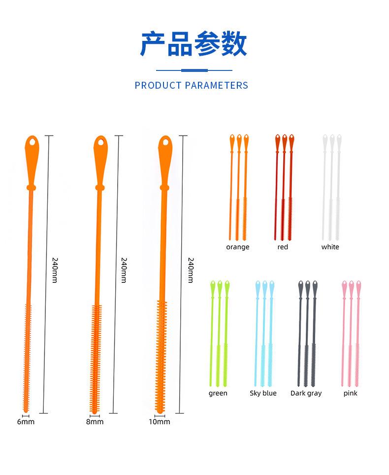 Escova de Limpeza de Garrafa de Silicone de Grau Alimentício 8mm Copo de Água Escova para Bico de Bebê Transfronteiriça em estoque Escova para Tubo de Sucção de Silicone terno
