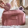 Bolsa de armazenamento de maquiagem de poliéster-algodão de alto valor ins transfronteiriça, bolsa de armazenamento portátil de grande capacidade para viagem, bolsa de maquiagem respirável