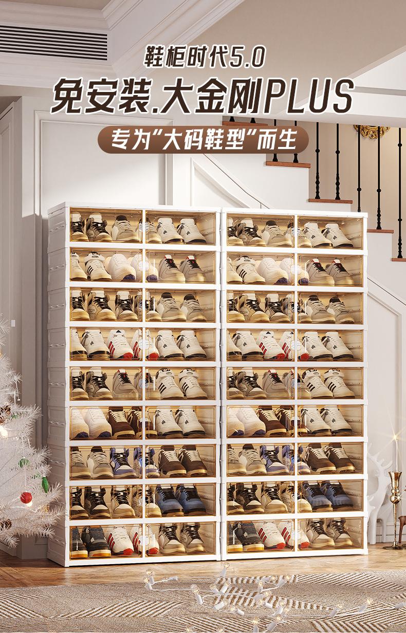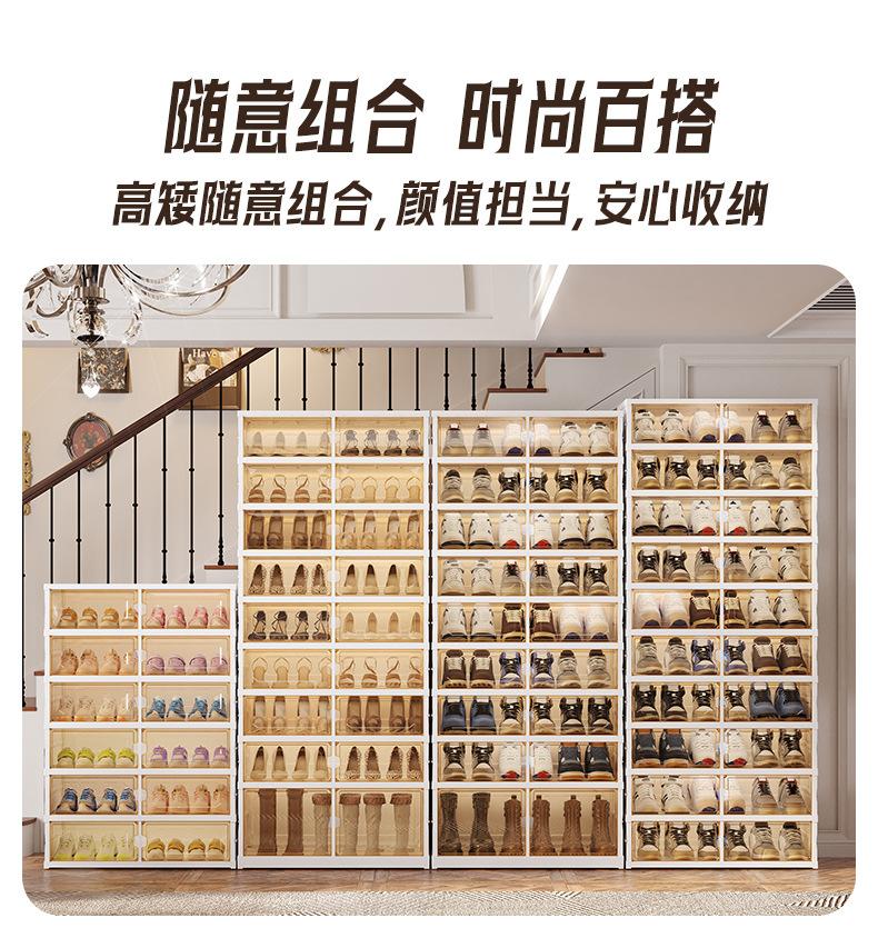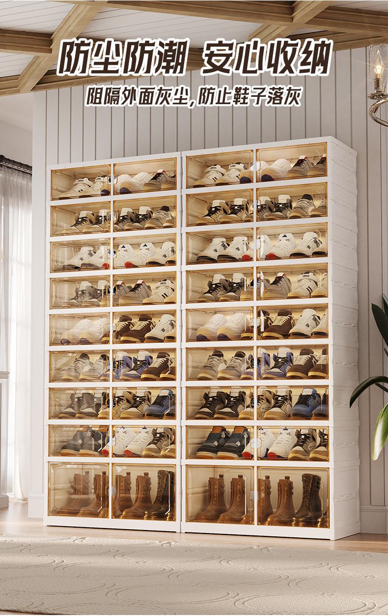 Armário de Sapatos Dobrável Transparente Espessado Prateleira de Sapatos Livre de Instalação Tudo-Em-Um Multicamadas Caixa de Sapatos para Casa e Sala de Estar Caixa de Armazenamento de Sapatos