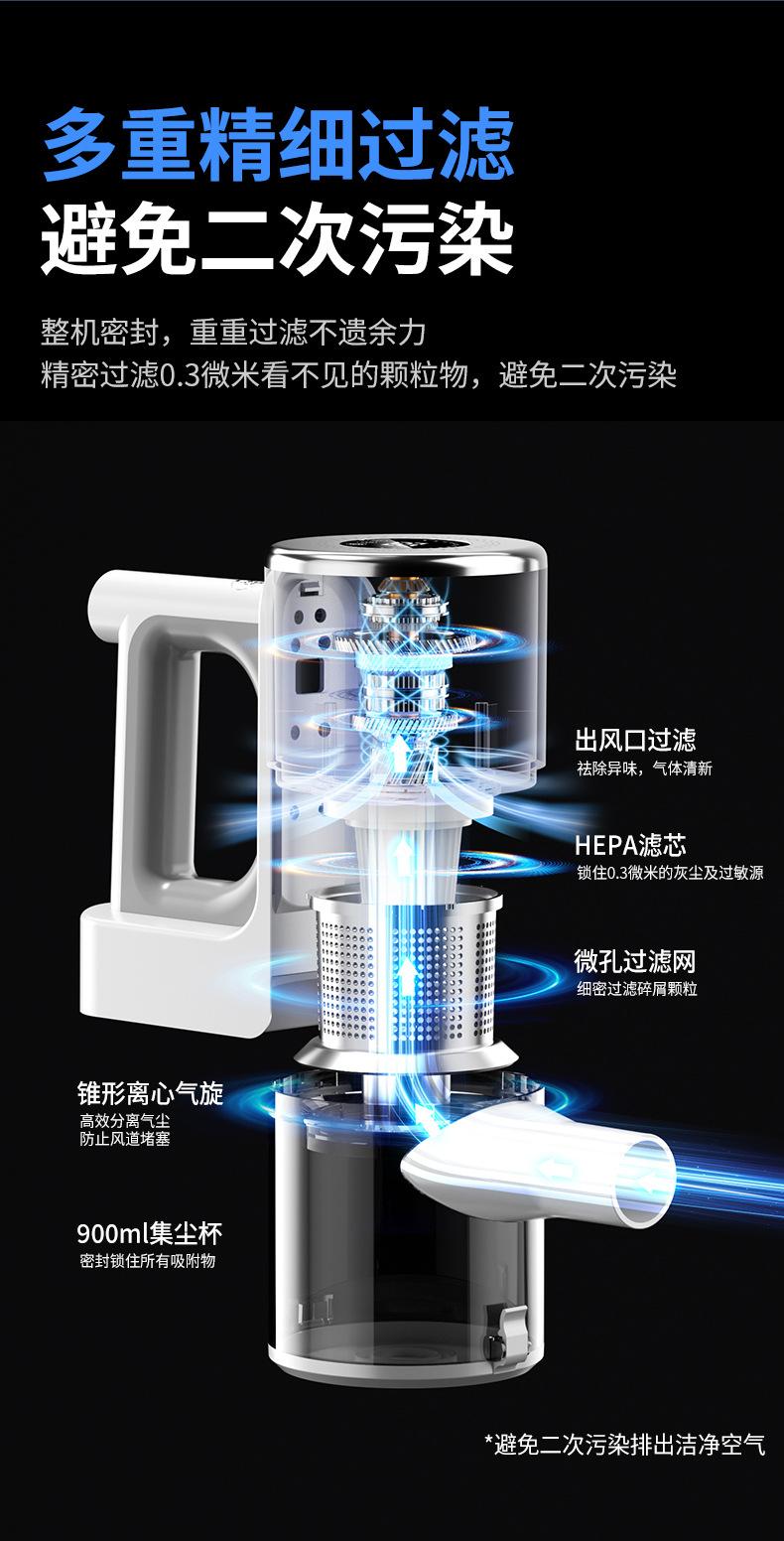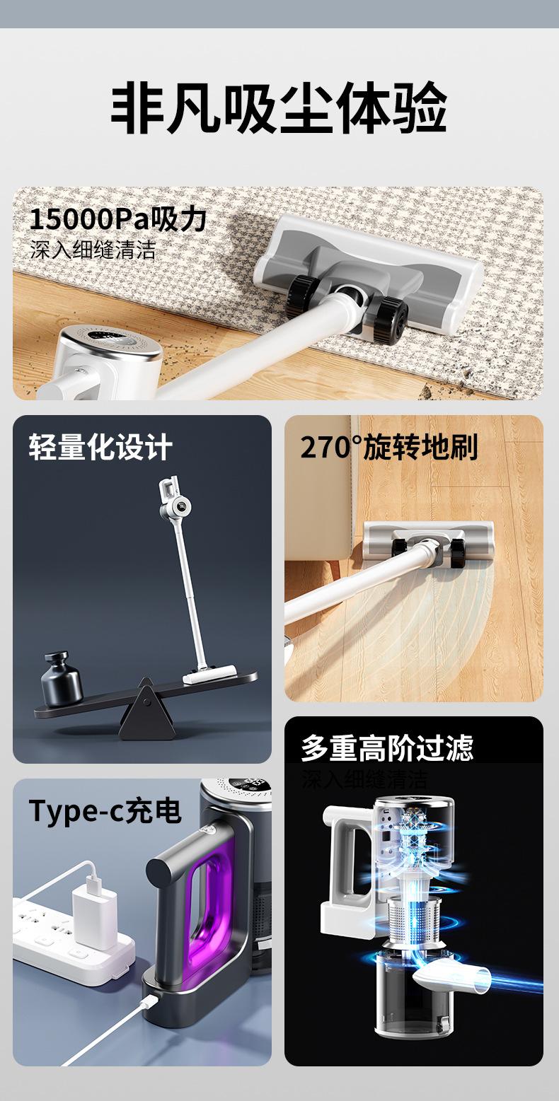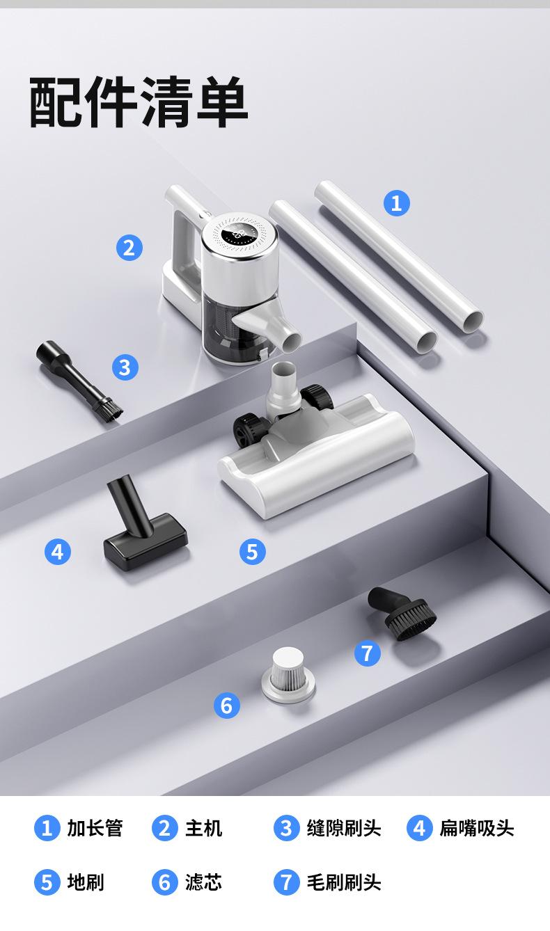 10、Acessórios do produto: Unidade principal*1, Tubo de conexão da escova de chão*2, Escova de chão*1, Ferramenta para fendas 2 em 1*1, Elemento filtrante*1