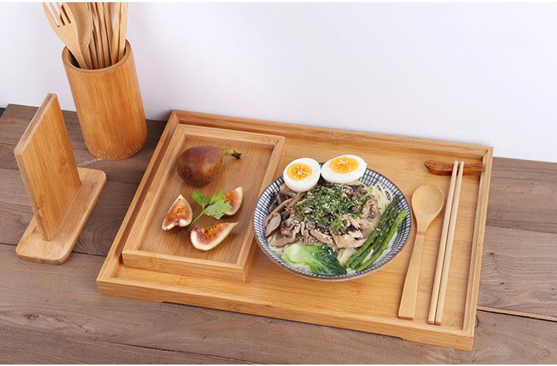 Bandeja de Madeira de Bambu Retangular Xícara de Chá com Alça Bandeja Hotel Restaurante Bandeja de Madeira Binaural para Pastelaria Pão