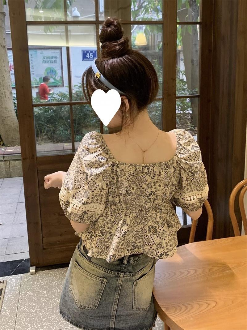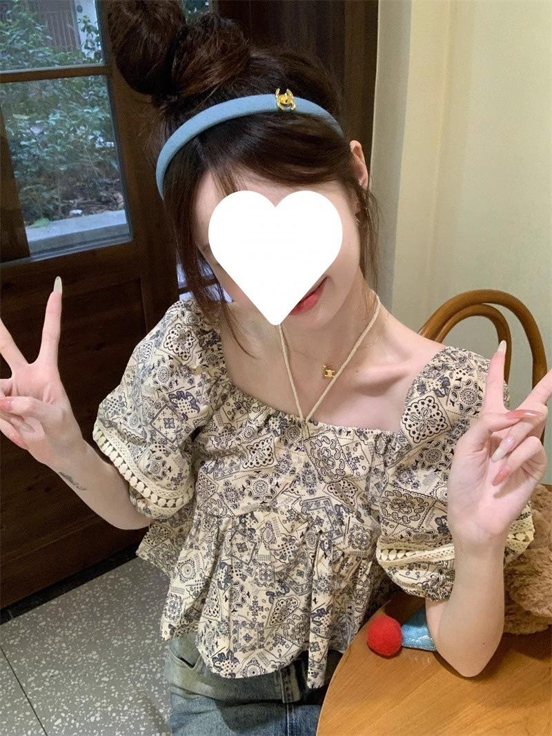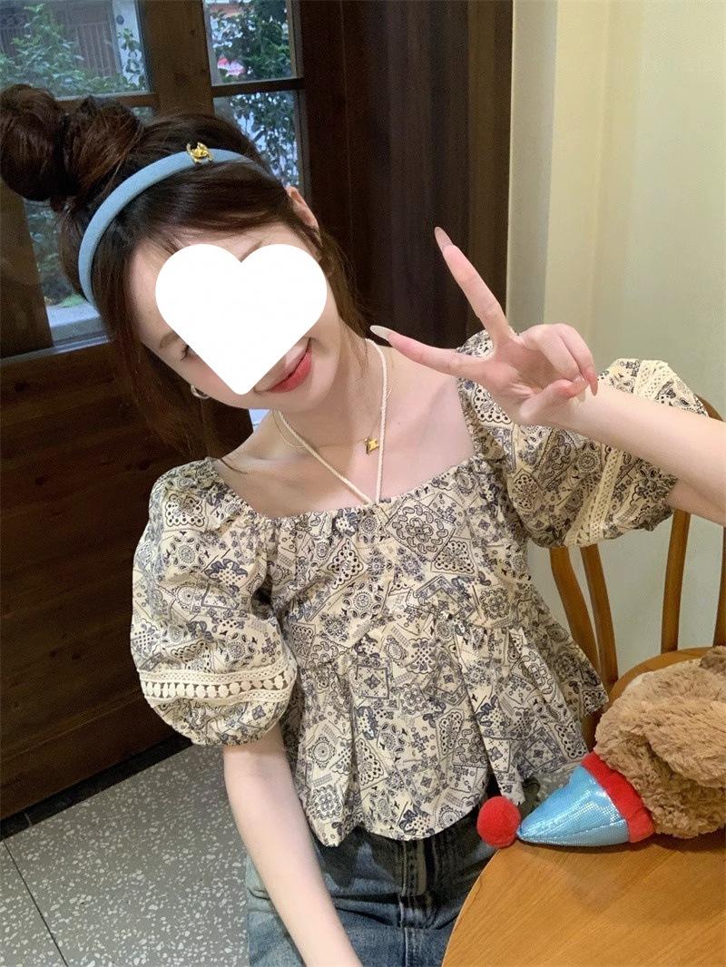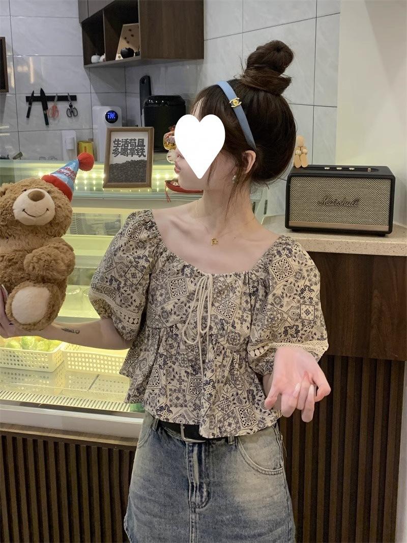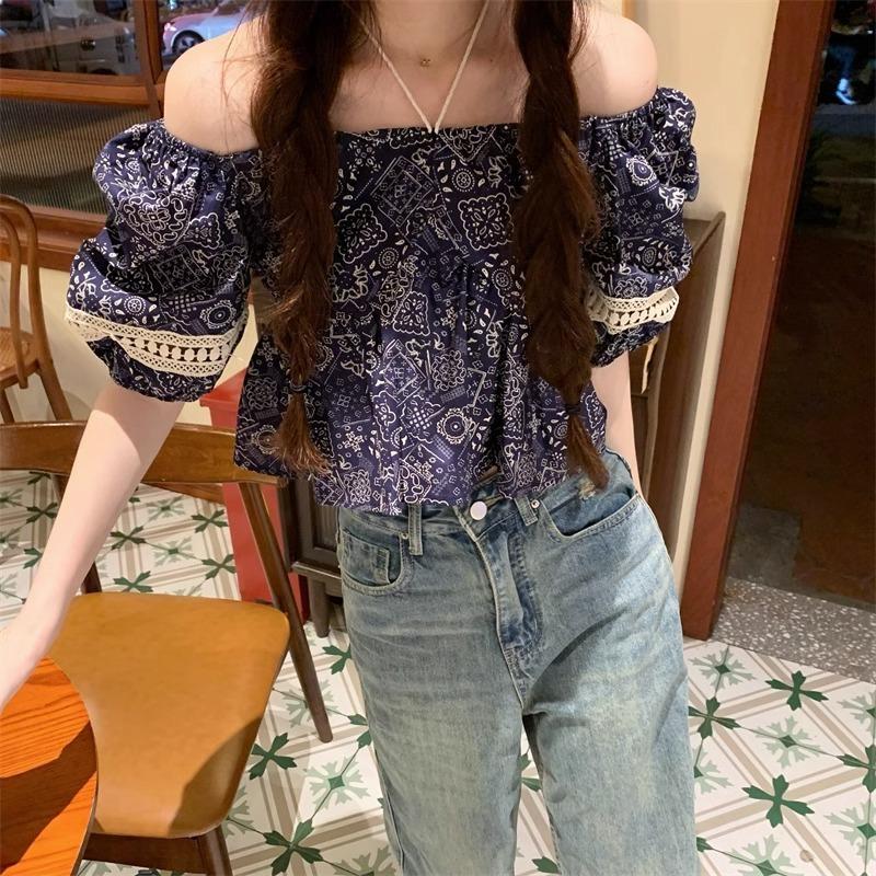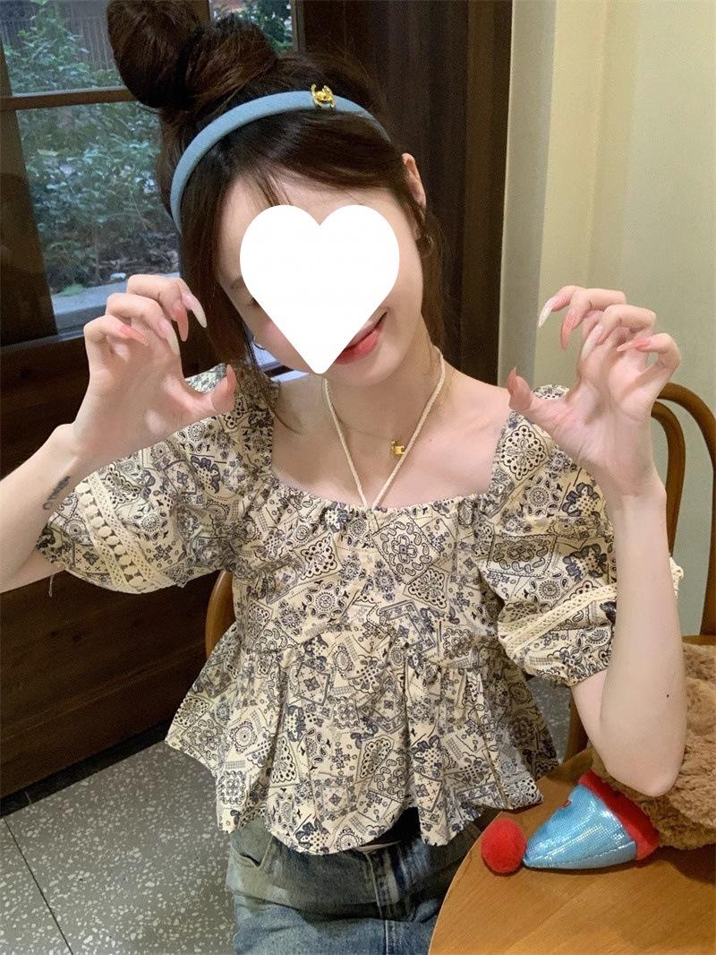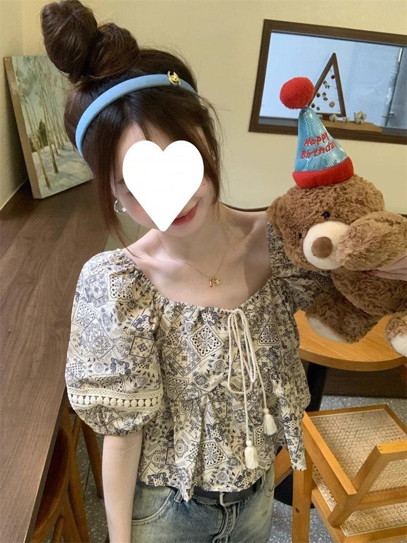Compre Estilo étnico tamanho pequeno estampado camisa feminina verão novo vintage tassel costurando renda camisa de manga curta no atacado no Joom.pro